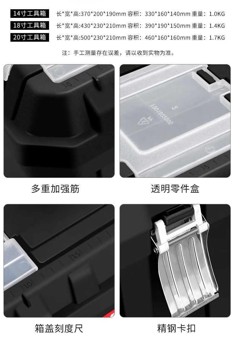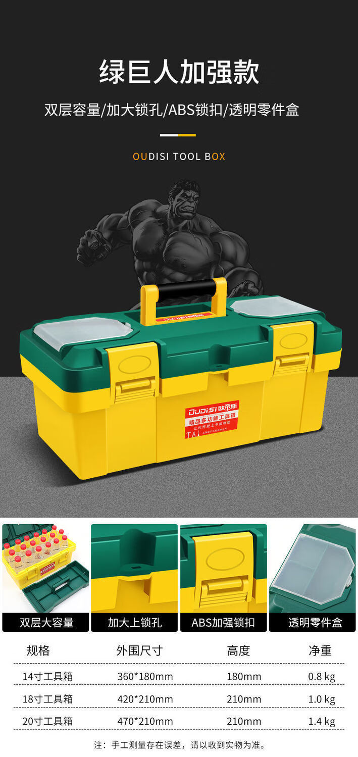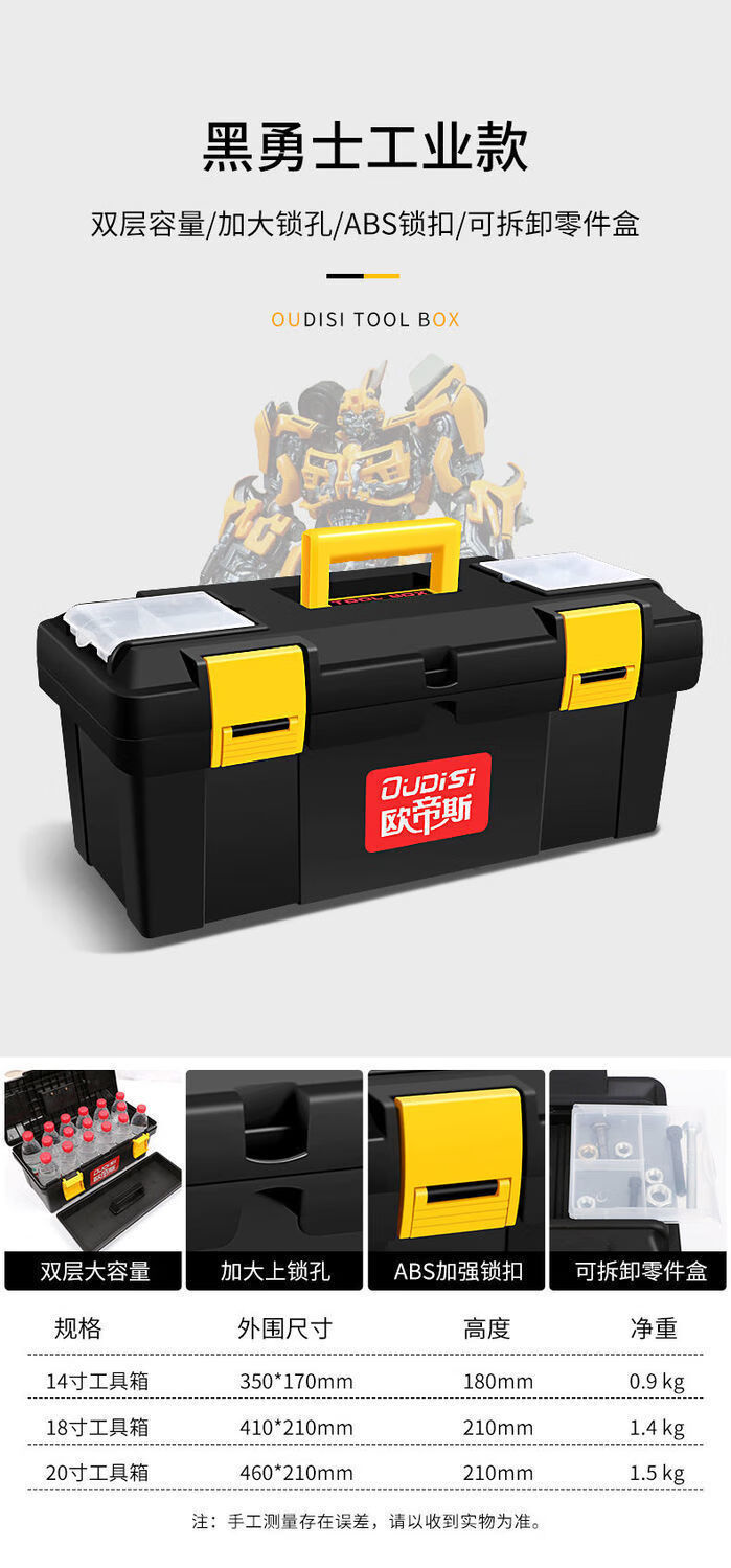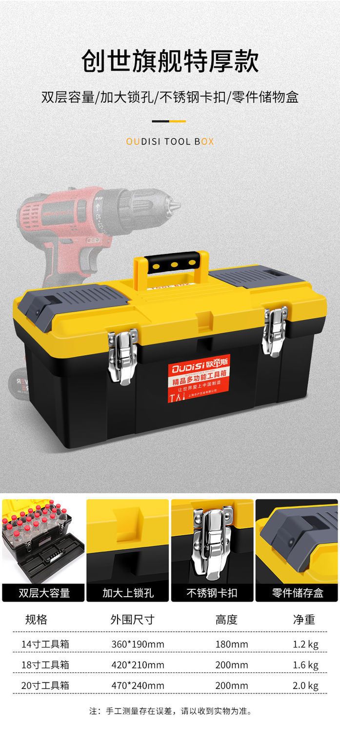 Otis multifunctional tool box for household use, thickened large portable hardware tool box, car repair tool box, 13-inch single-layer tool box, no specifications