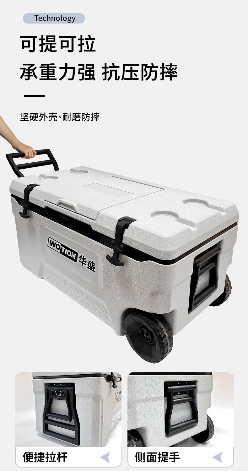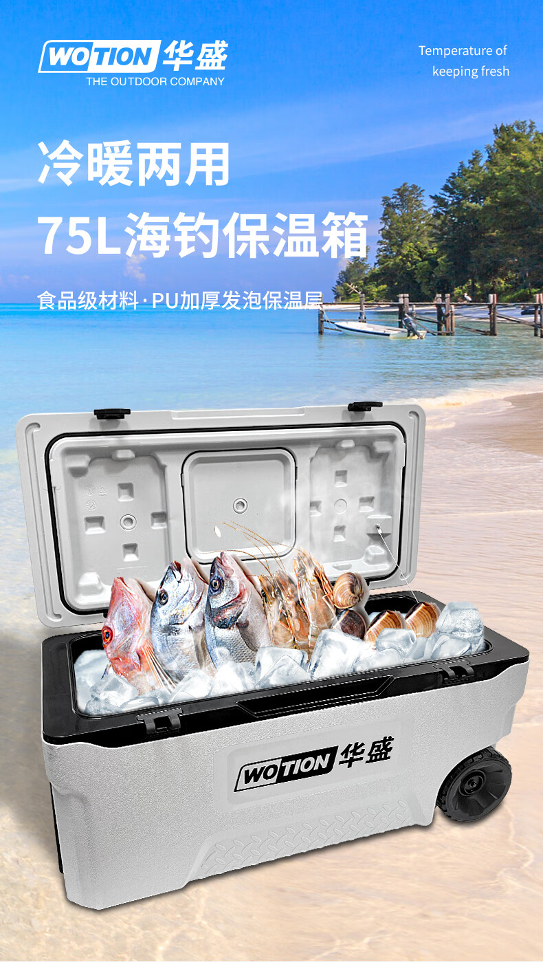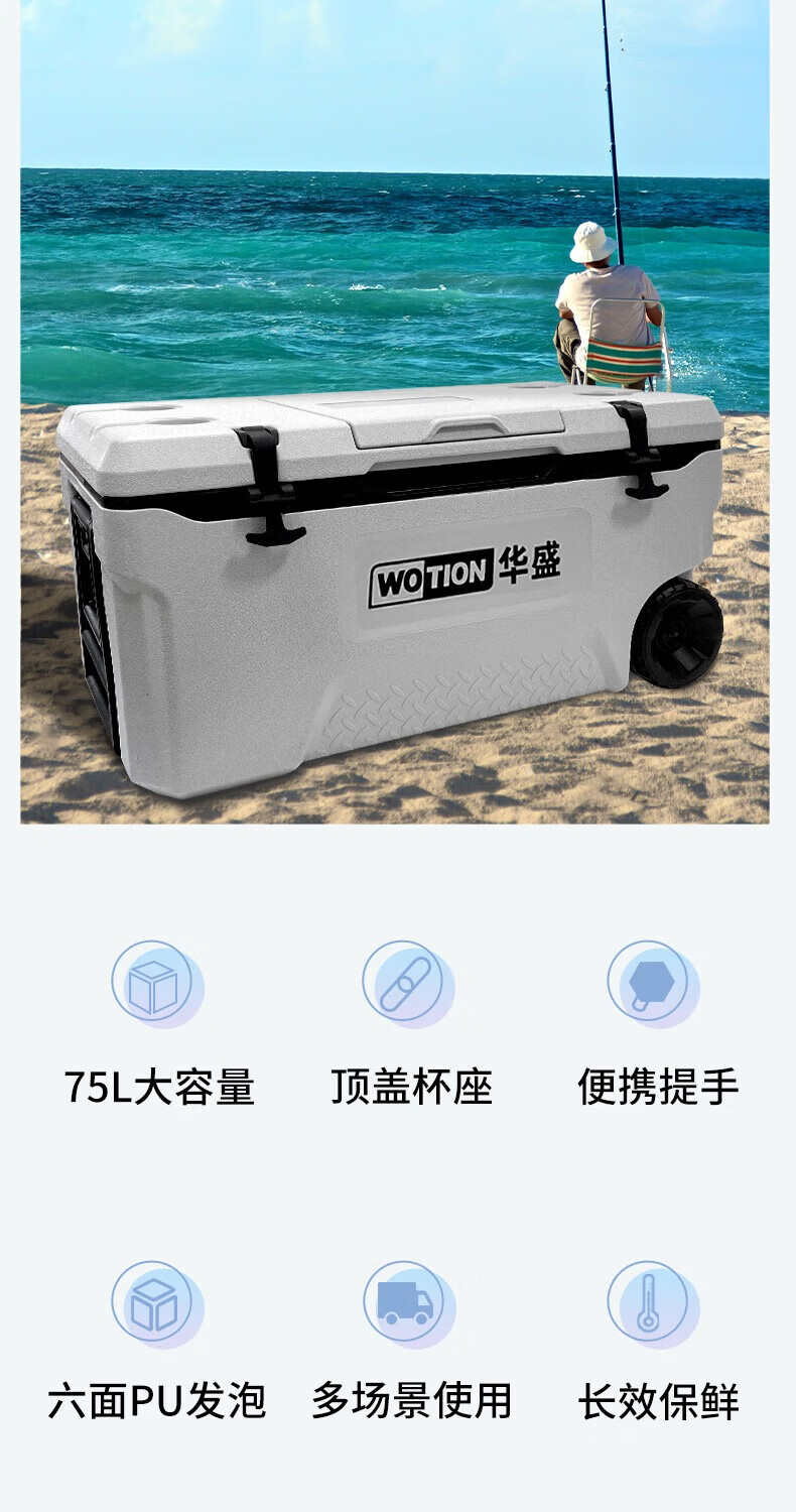 Huasheng Insulated Box Professional Grade Full PU Outdoor Home Commercial Sea Fishing Refrigerator Vehicle Mounted Wild Camping Ice Bucket Cooler 75L Standard + 2 Original Ice Boards