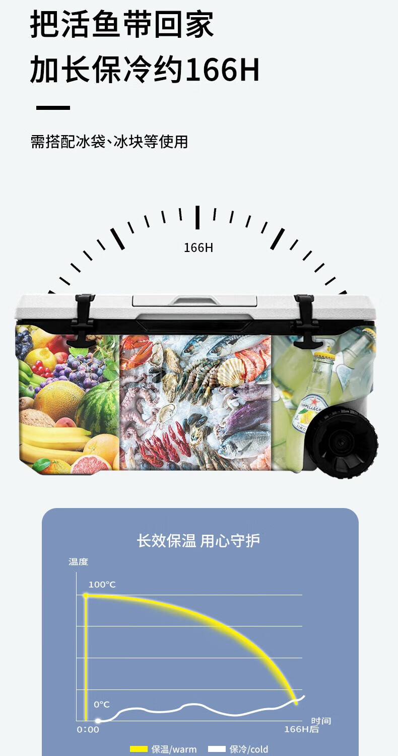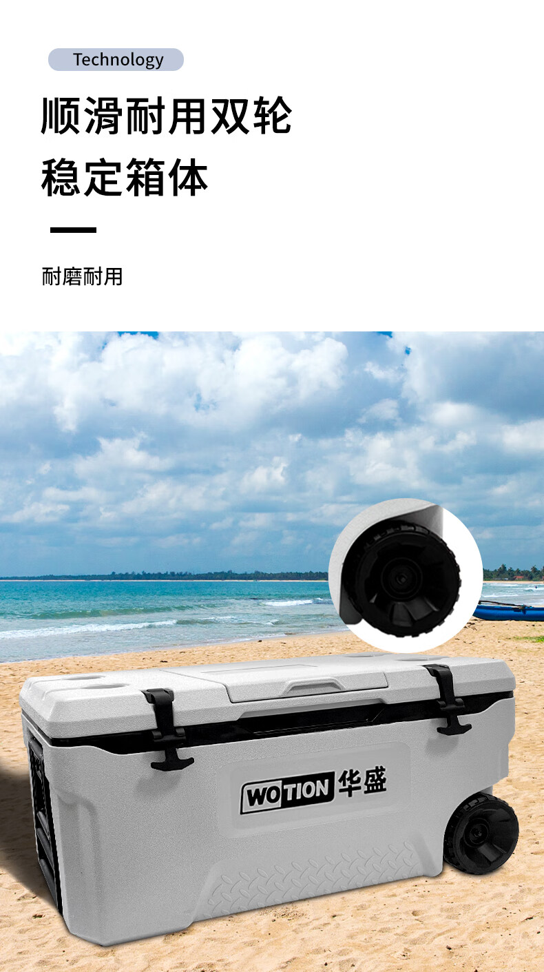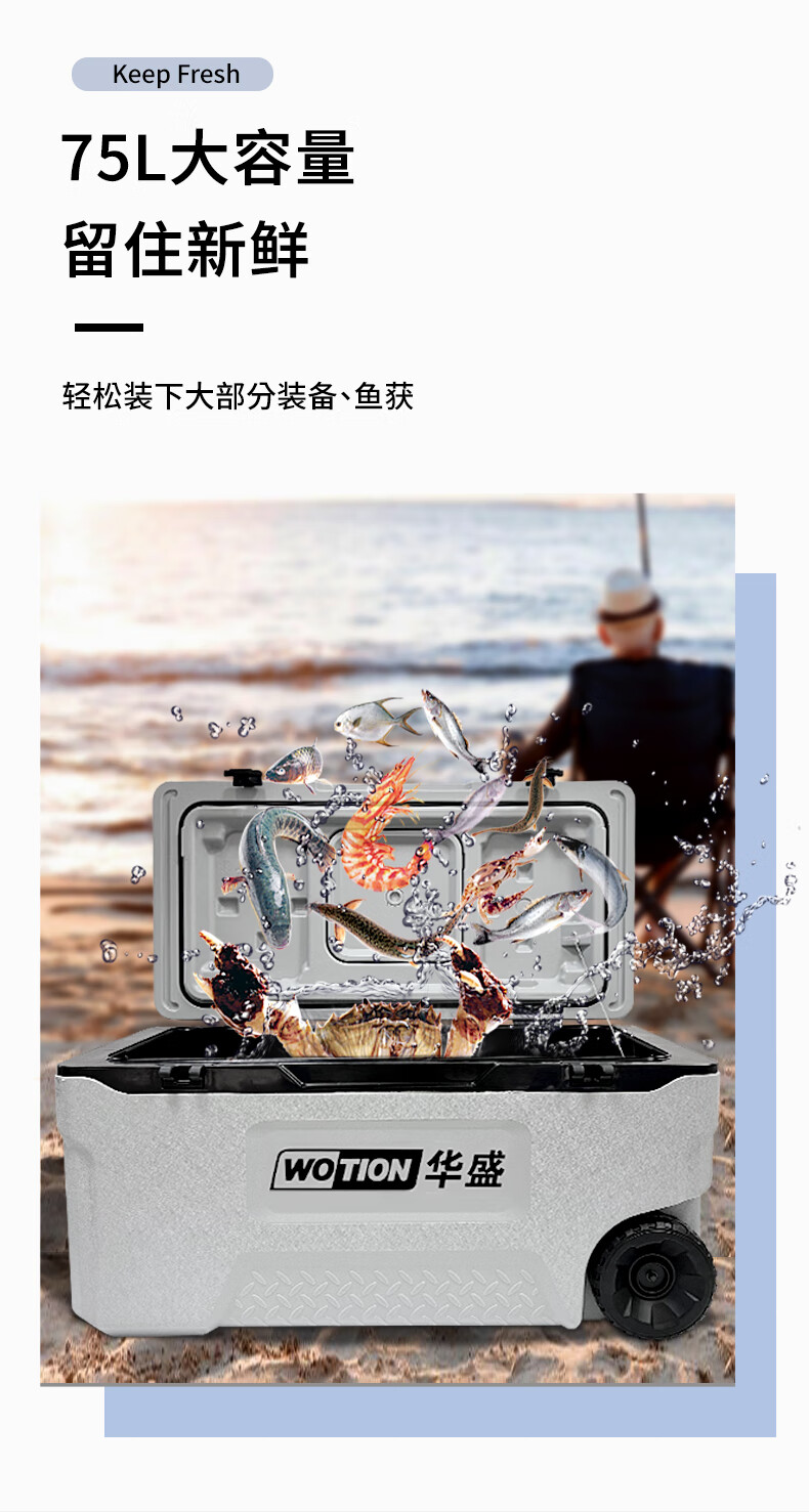 Huasheng Insulated Box Professional Grade Full PU Outdoor Home Commercial Sea Fishing Refrigerator Vehicle Mounted Wild Camping Ice Bucket Cooler 75L Standard + 2 Original Ice Boards