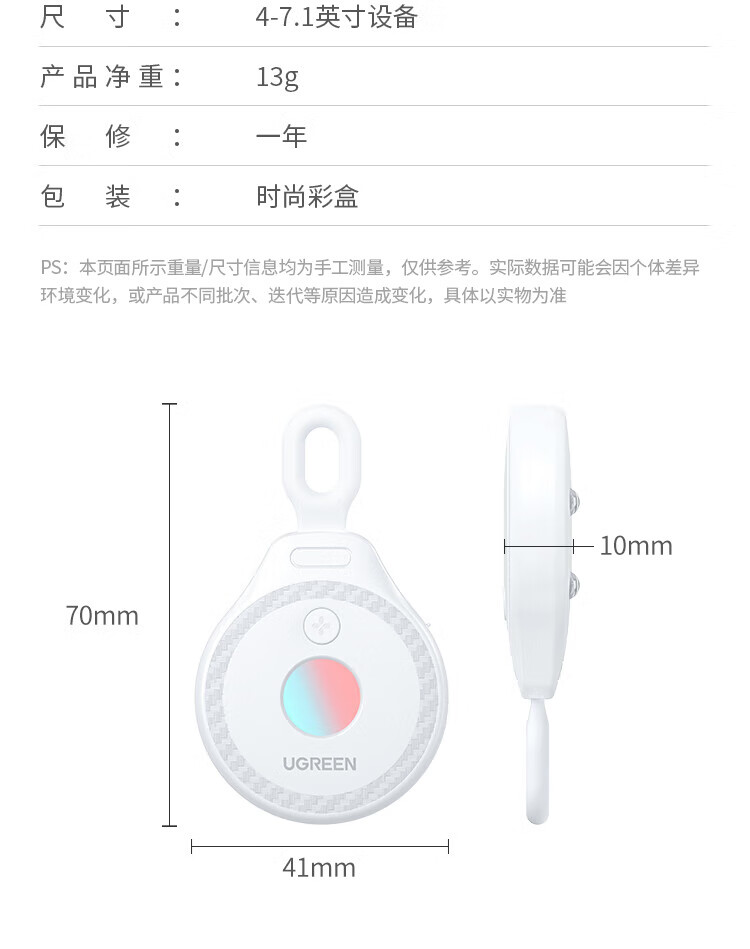 UGREEN hotel detector, smart anti-peep camera, signal detector, rechargeable anti-monitoring, anti-photography, portable, suitable for hotels and B&Bs, cool black, 5m detection + 4 infrared beads/with type cable