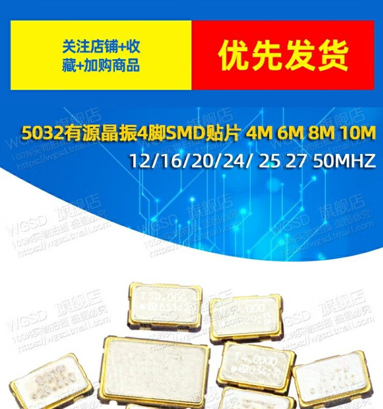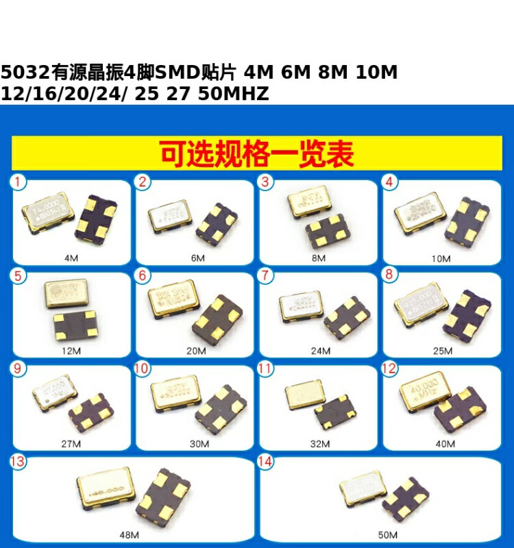 Dafuri 5032 active crystal oscillator 4-pin SMD patch 4M 6M 8M 10M 12/16/20/24/ 25 40M (1 piece)