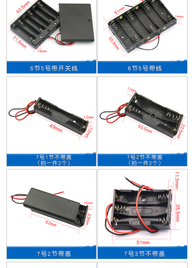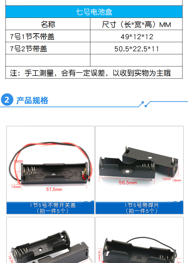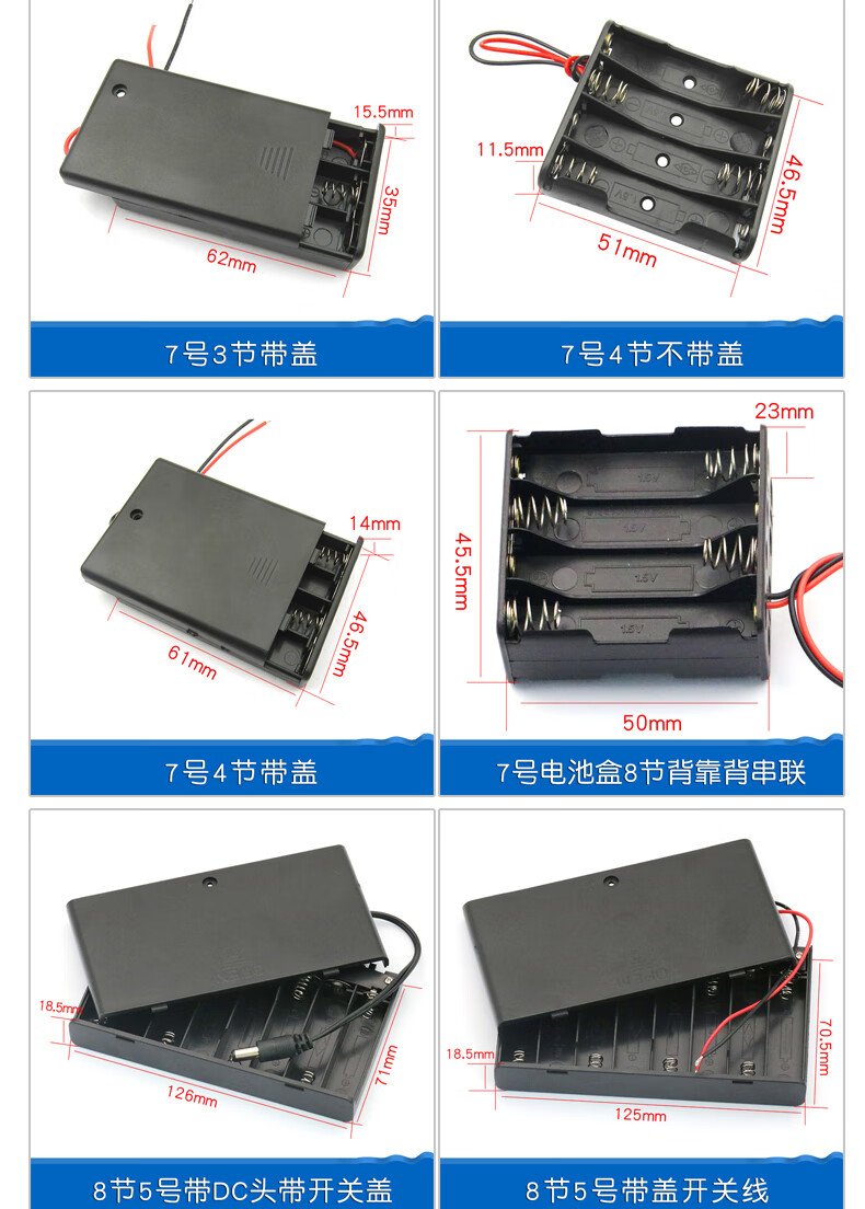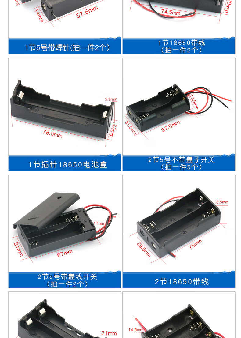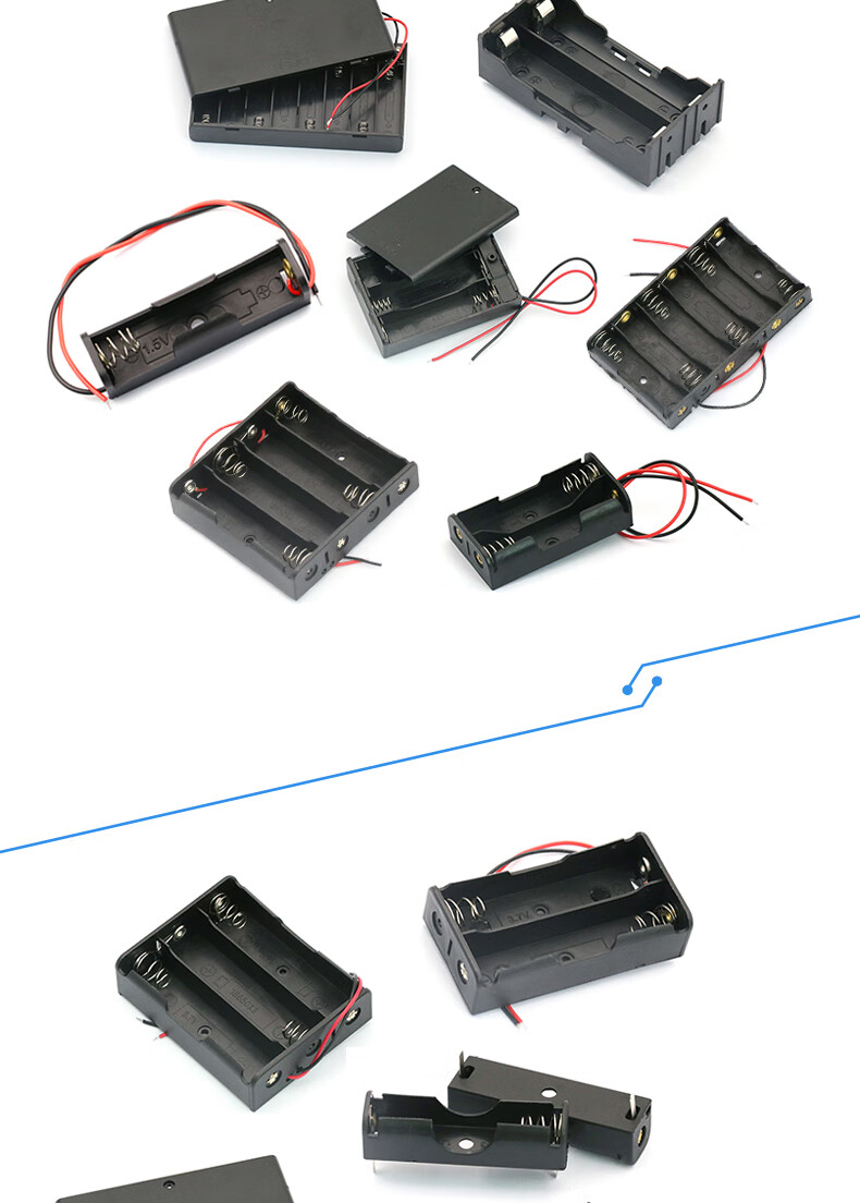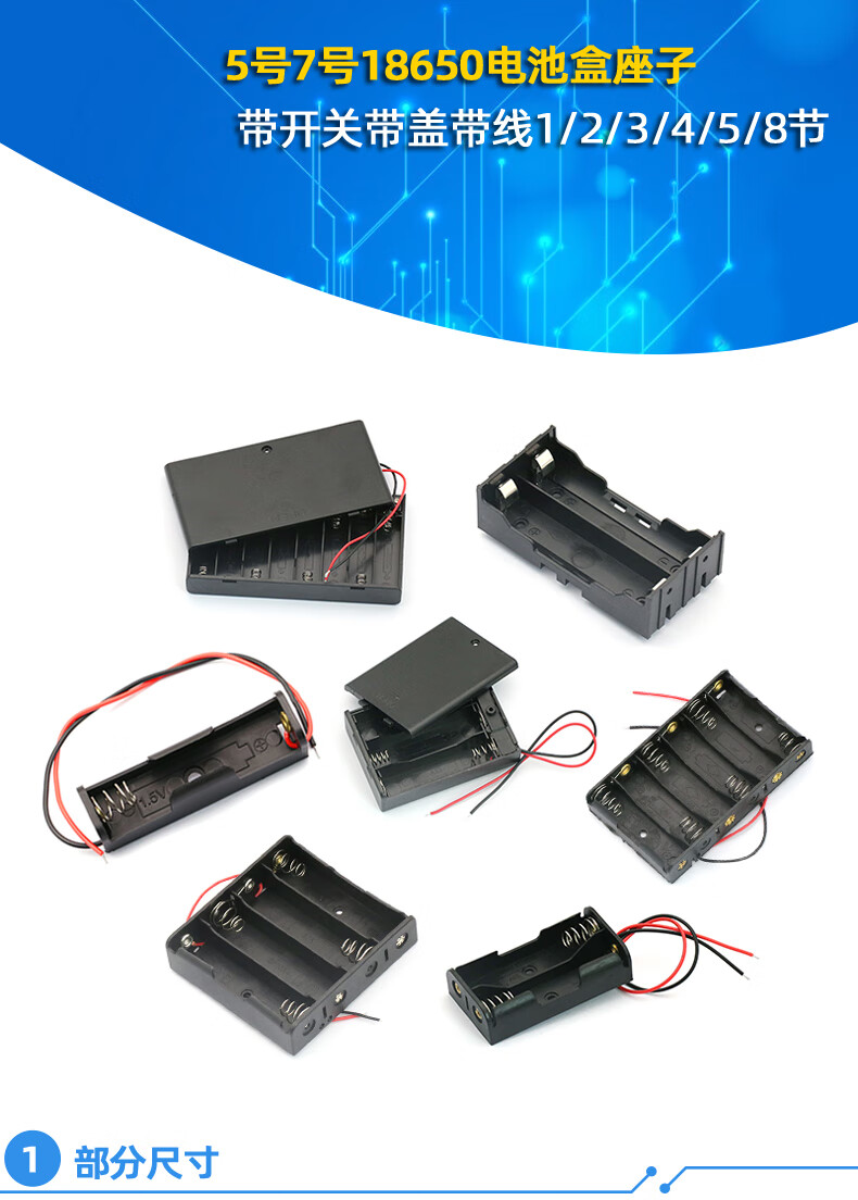 Dafurui battery box No. 5 No. 7 18650 lithium battery holder with cover, no welding required for series charging 2 cells 4/8 cells 9V12V battery box 1 cell 18650 with cable (2 pcs)