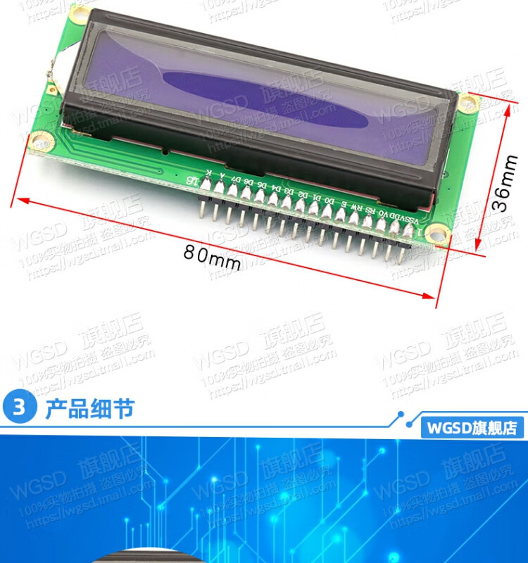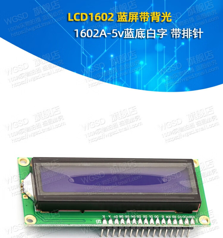 Dafuri LCD1602 blue screen with backlight 1602A-5v blue background white character display with pin header LCD display default