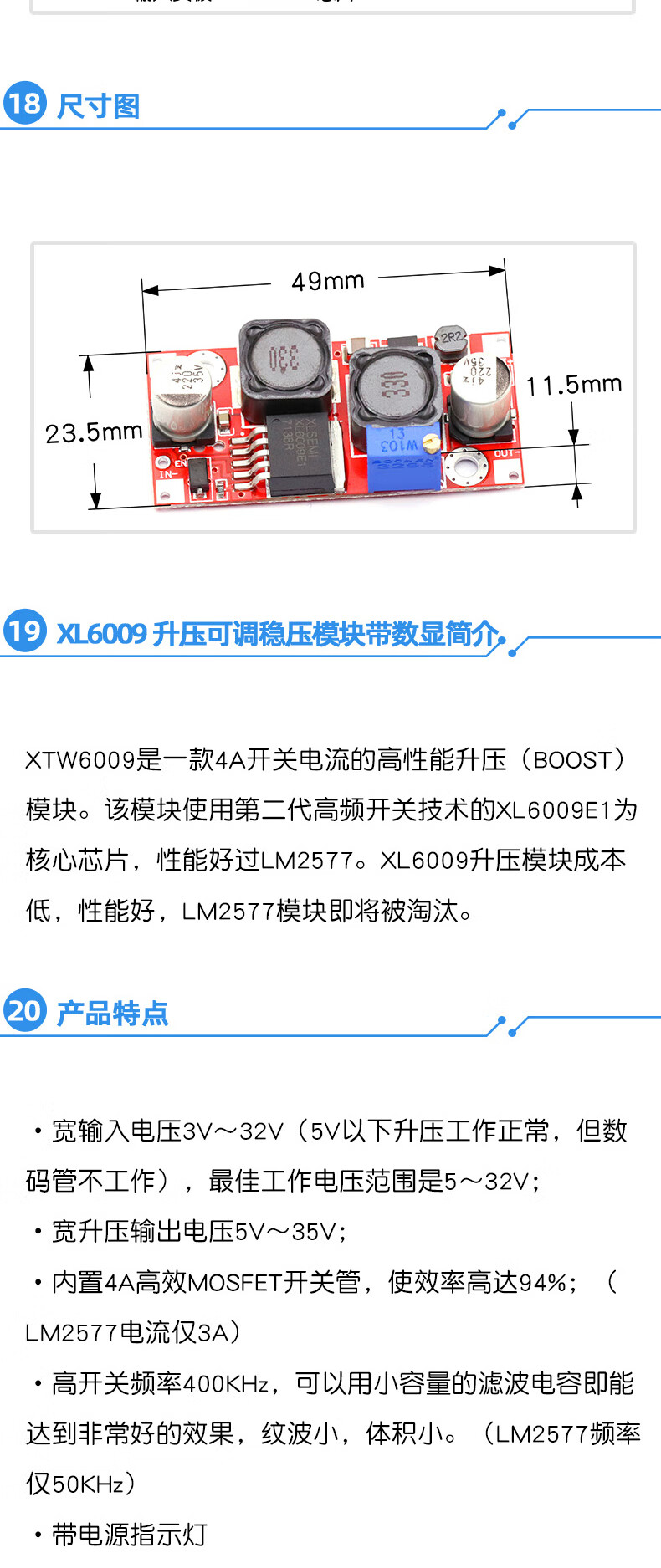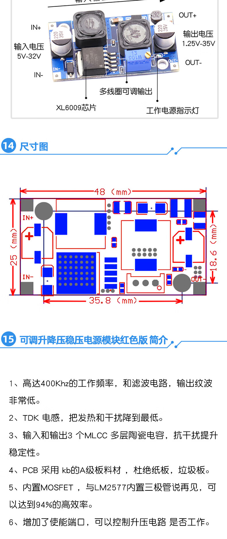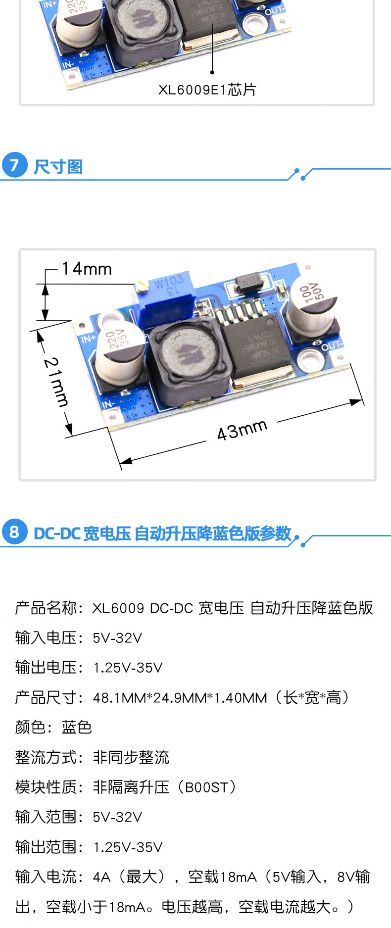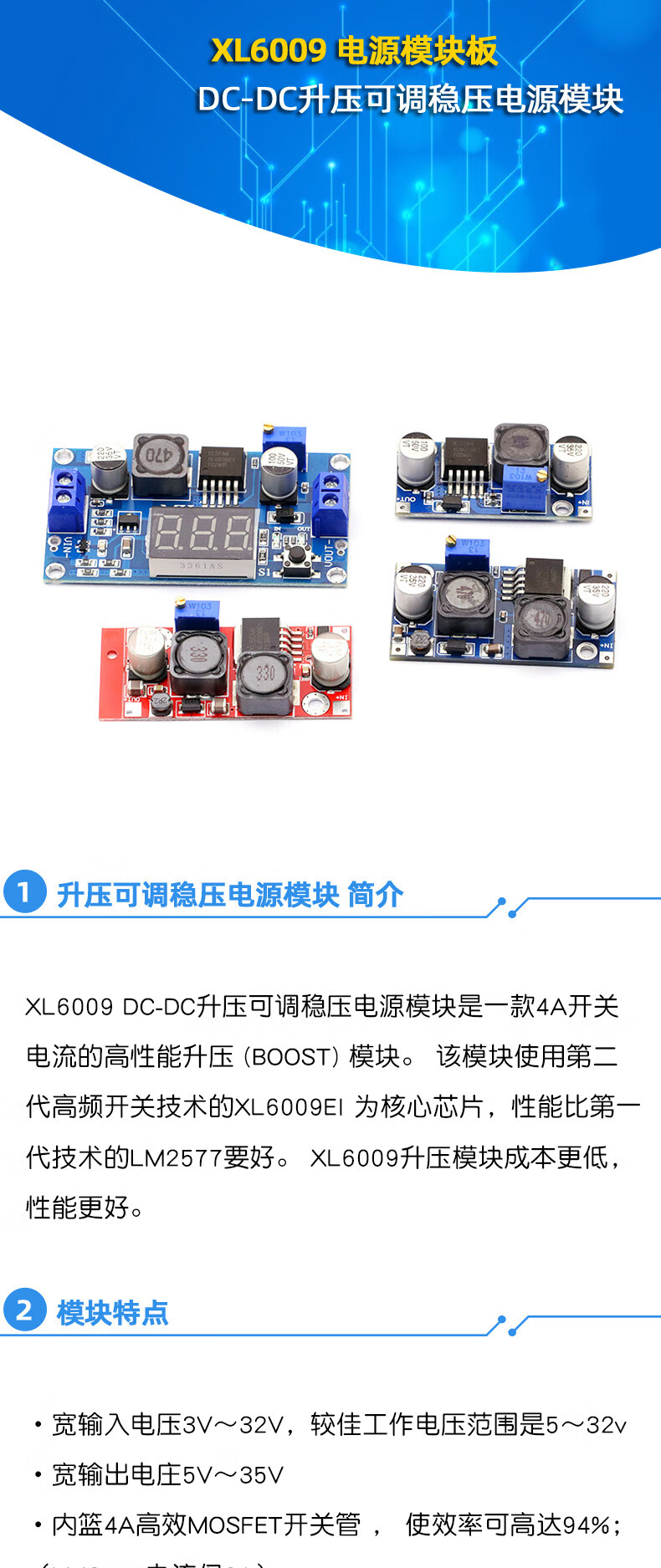 Dafuri XL6009 DC-DC step-up adjustable voltage-stabilized power supply module board outputs 4A current wide voltage 5V12v to 24V