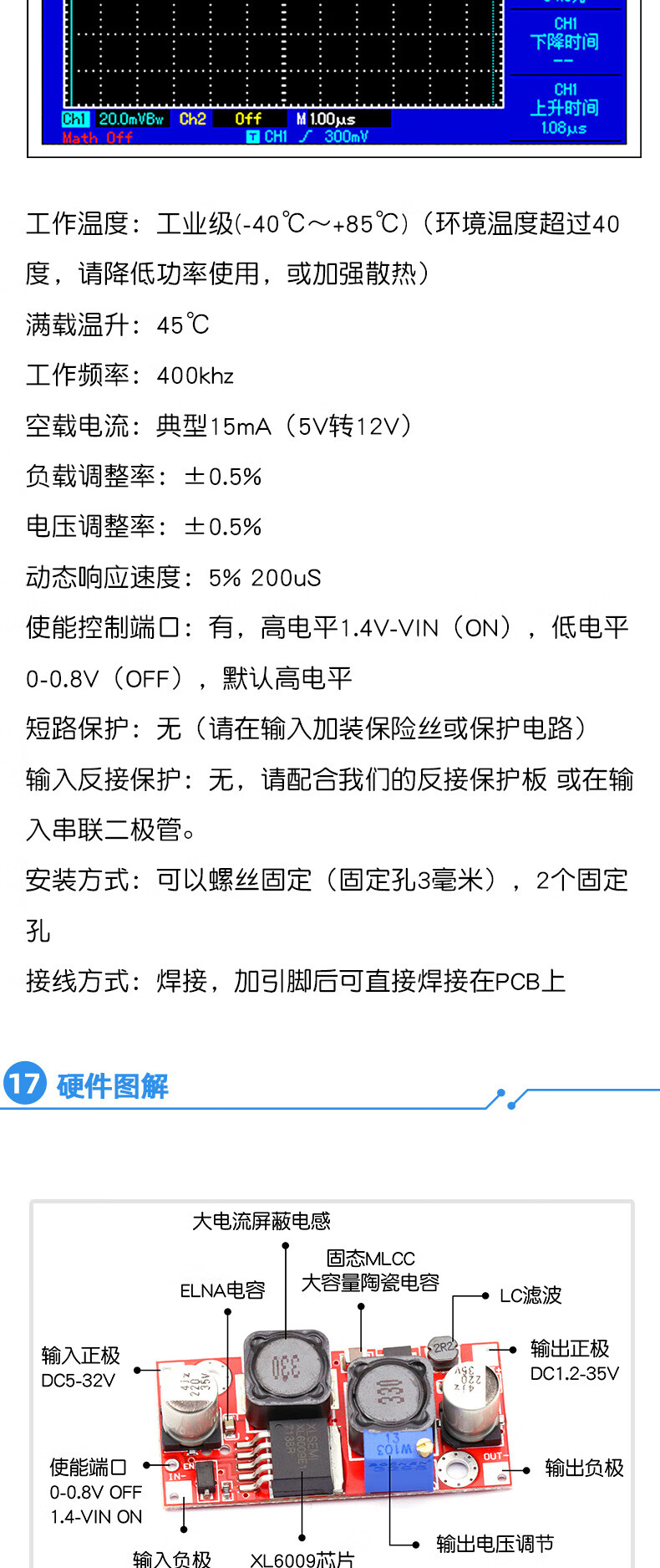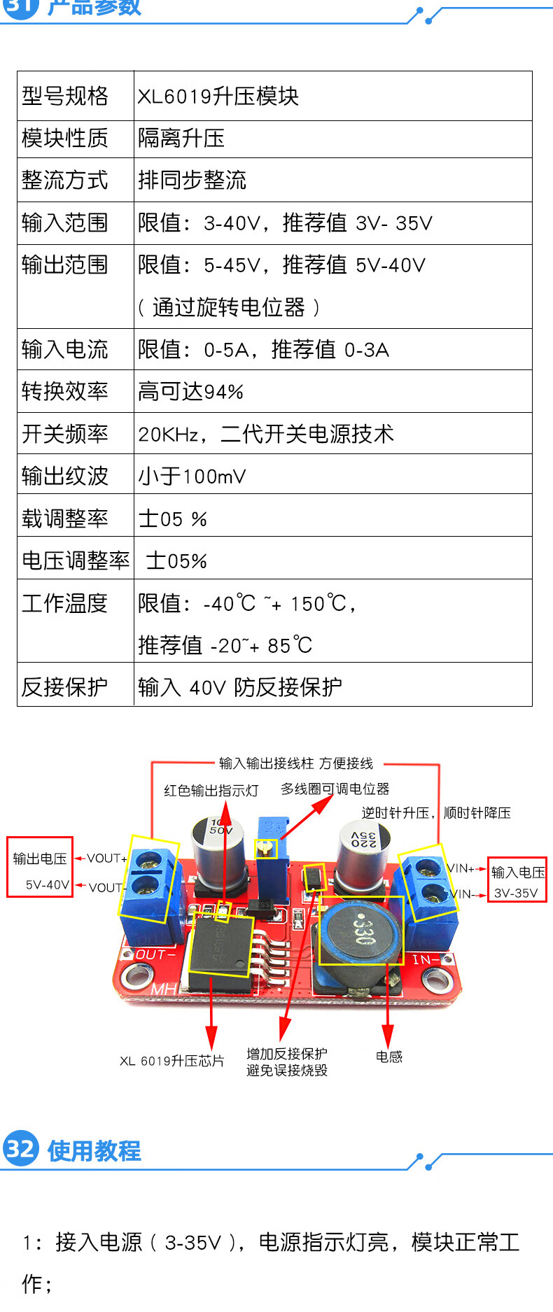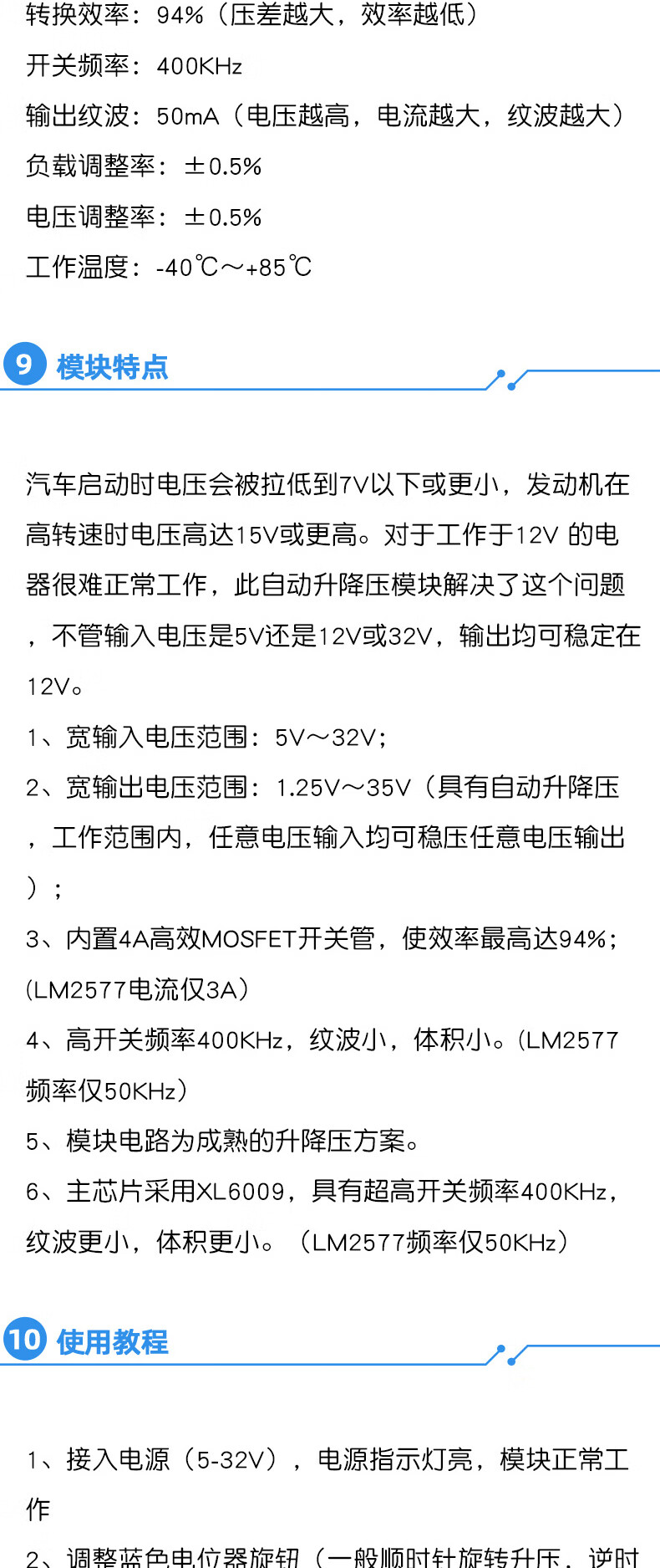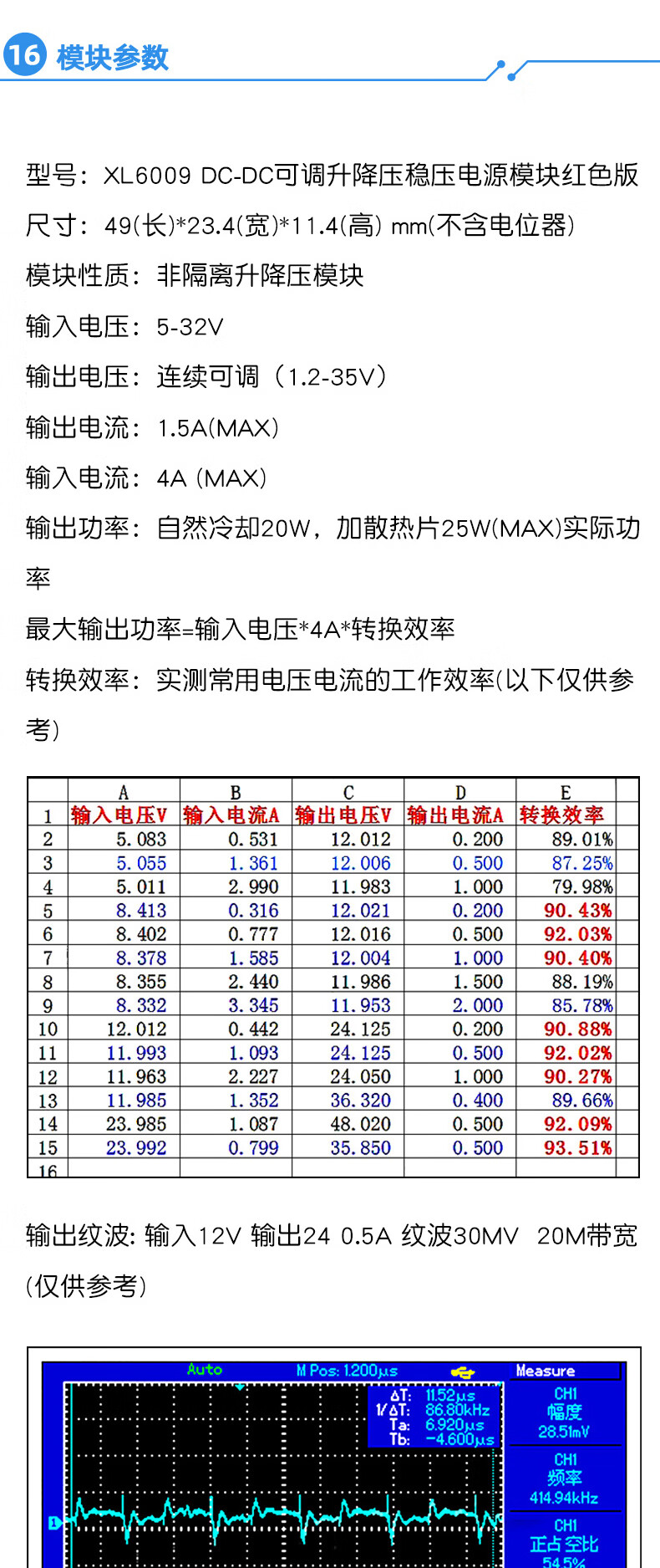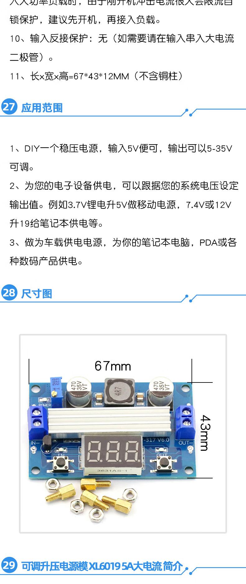 Dafuri XL6009 DC-DC step-up adjustable voltage-stabilized power supply module board outputs 4A current wide voltage 5V12v to 24V