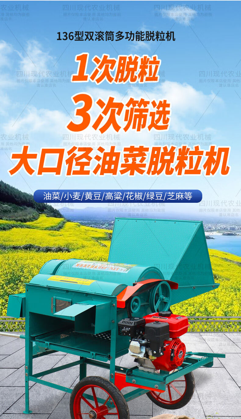 Wen Yijia double drum rapeseed thresher 136 new artifact soybean sorghum rapeseed multifunctional household harvesting large diameter double drum steel plate screen + truck delivery