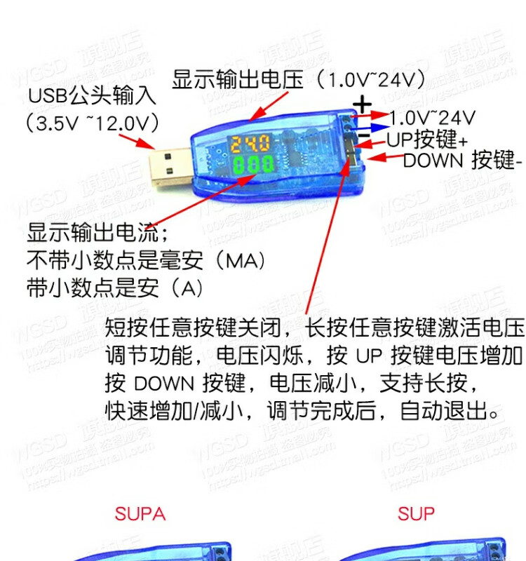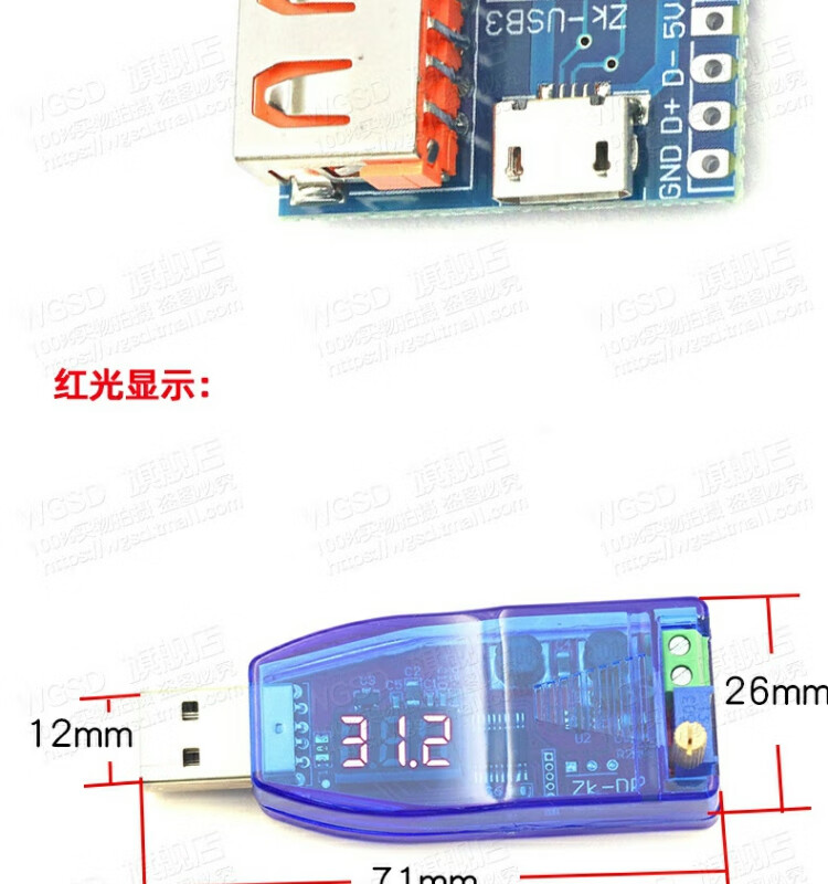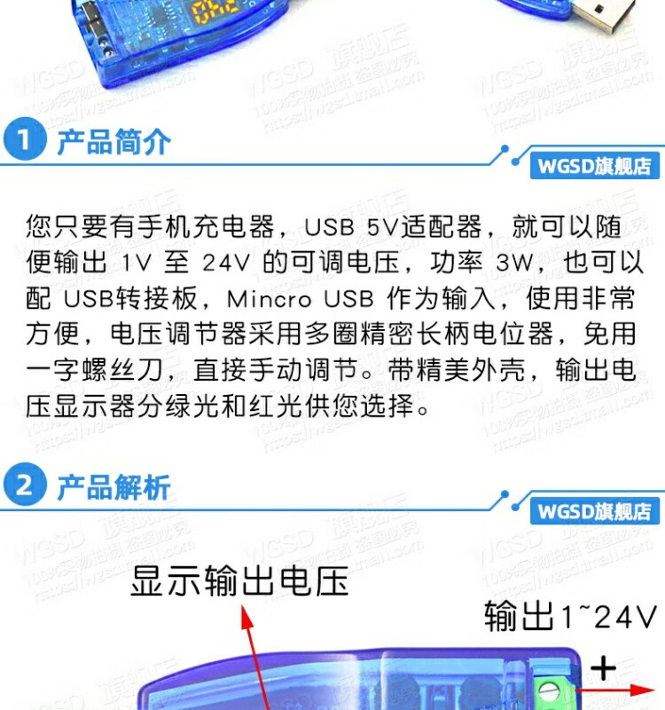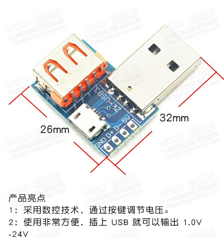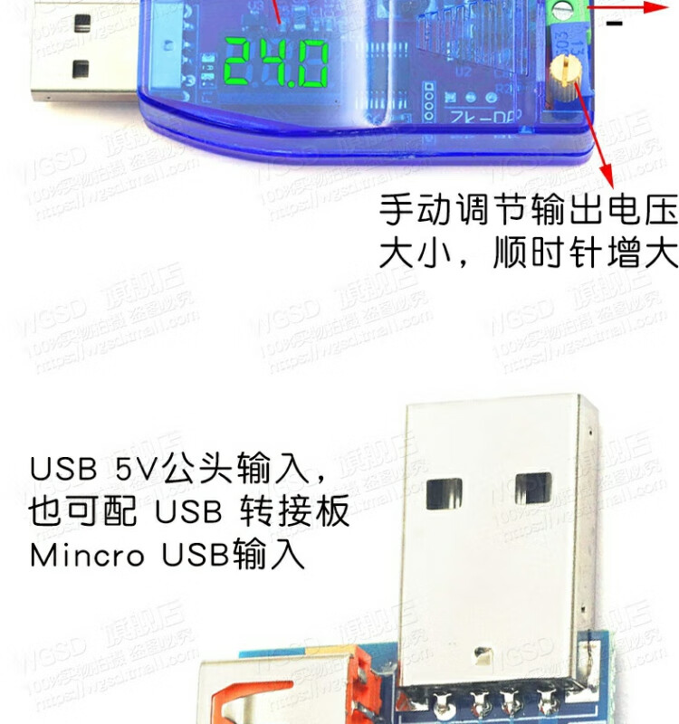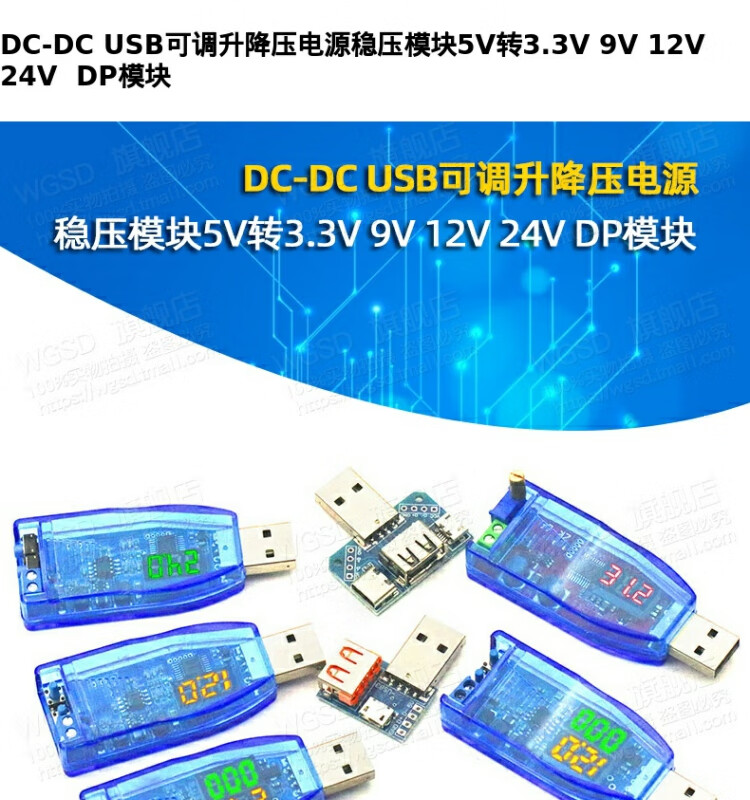 Dafuri DC-DC USB adjustable buck-boost power supply voltage stabilizing module 5V DP module to 3.3V 9V 12V 24V USB male adapter board microUSB Ty (1 piece)