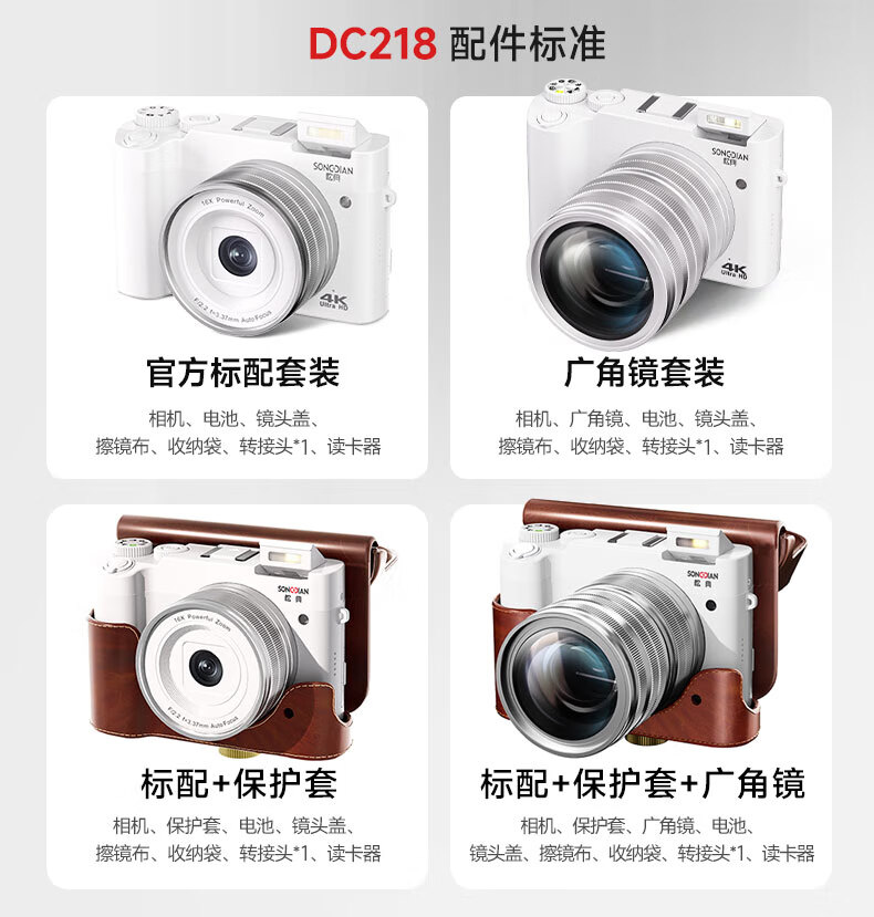 Songdian DC218 entry-level front and rear dual-camera high-definition digital camera for students to take selfies and vlog, which can be transferred to mobile phone CCD flat for high school students to travel with a dedicated micro-single 4K domestic camera, white, official standard configuration + 64G memory, approximately 6,000 photos can be stored