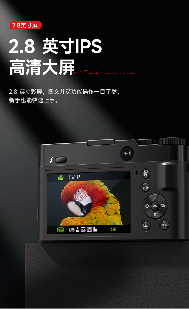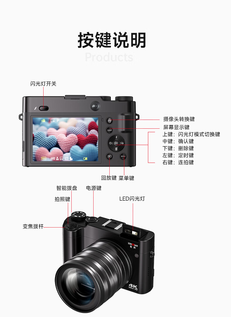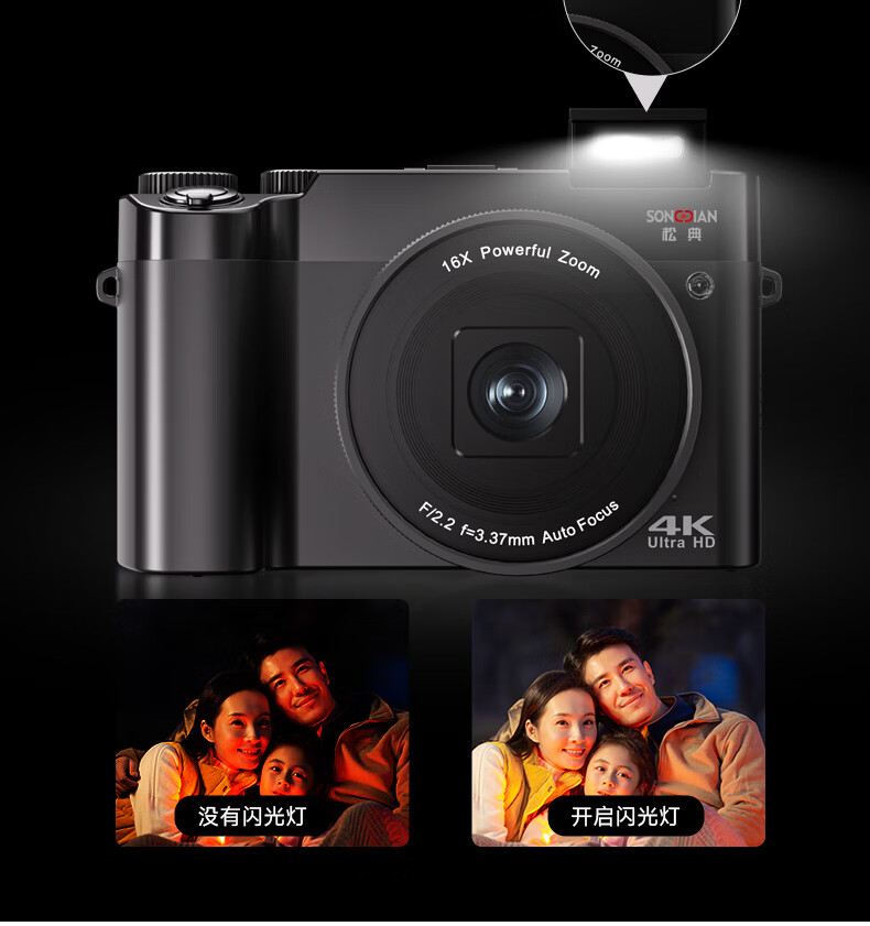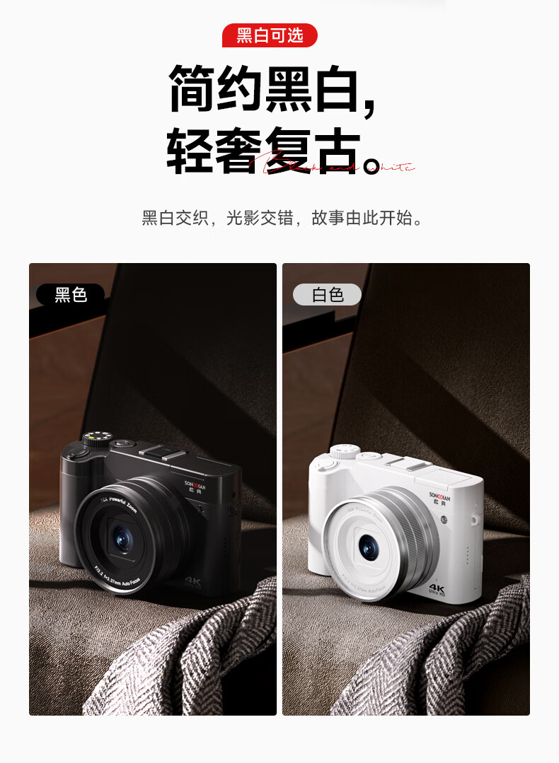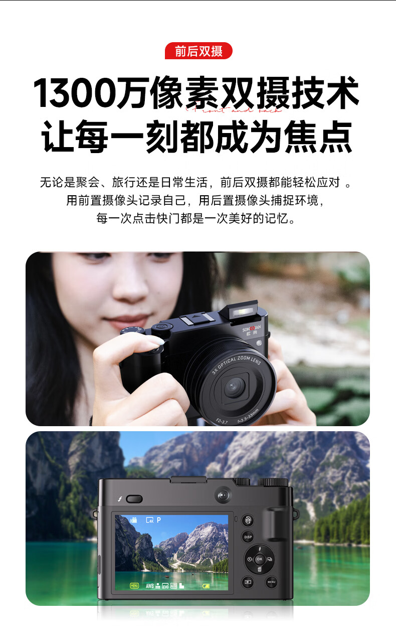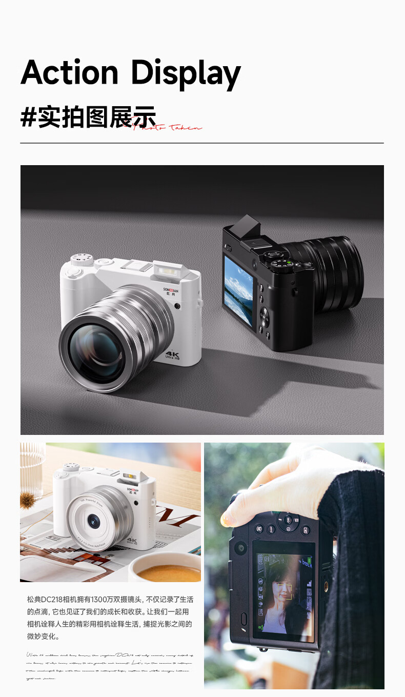Songdian DC218 entry-level front and rear dual-camera high-definition digital camera for students to take selfies and vlog, which can be transferred to mobile phone CCD flat for high school students to travel with a micro-single 4K domestic camera, white + wide-angle lens, official standard + 128G memory, approximately 12,000 photos stored