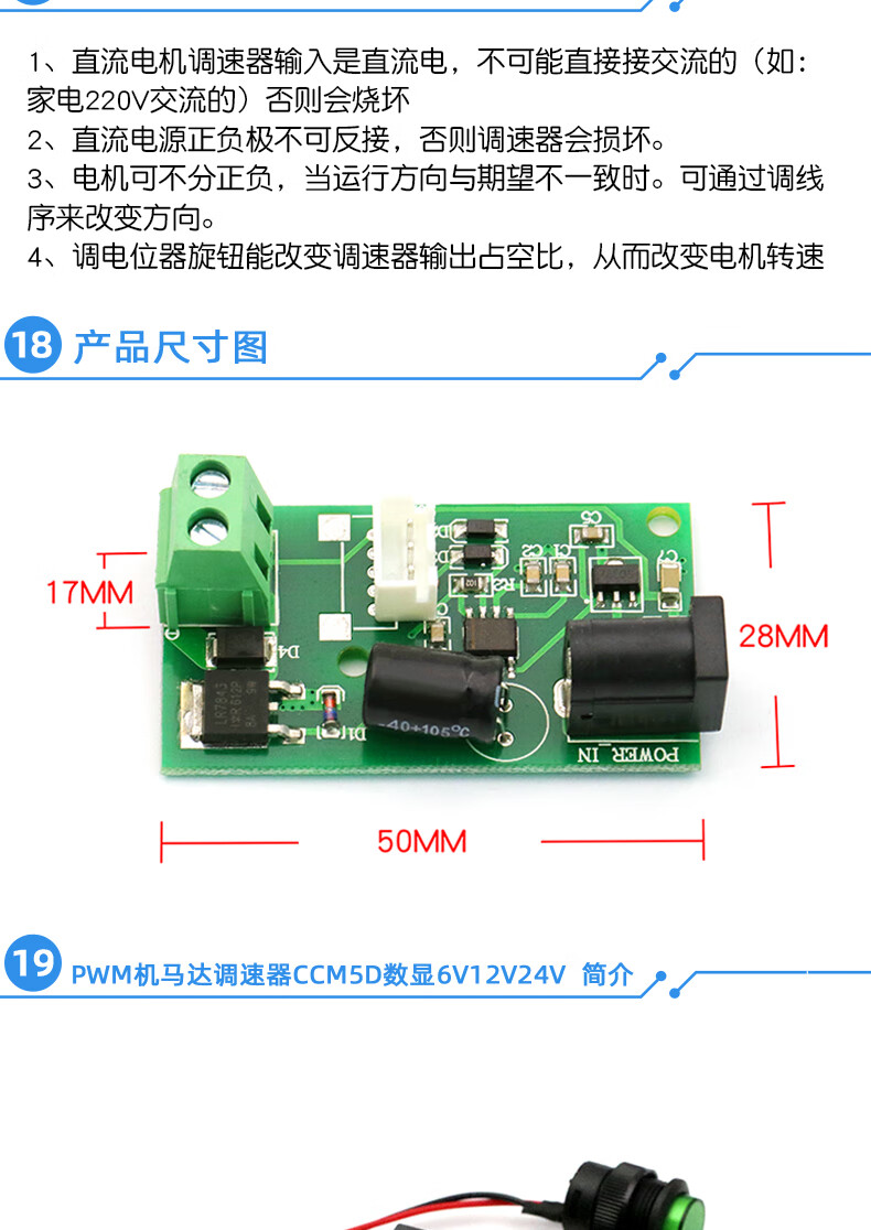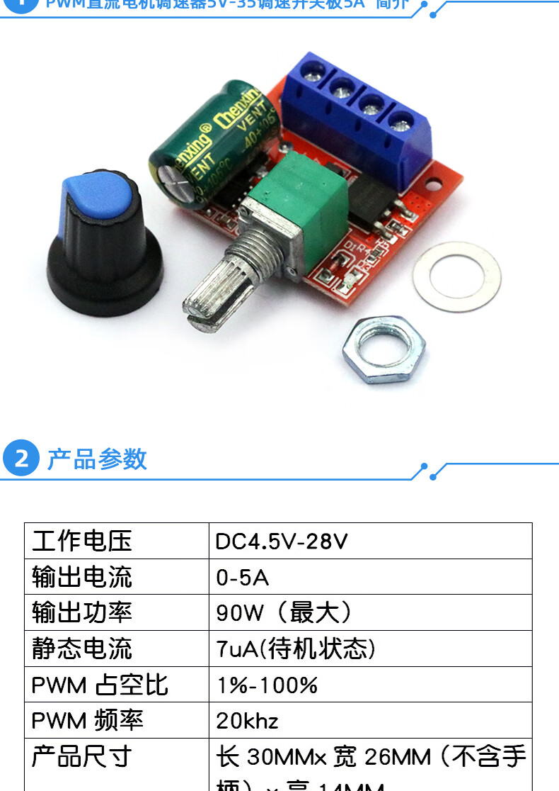 Dafuri PWM DC motor speed regulator 5V-35 speed control switch speed control module LED dimming 2A/3A/5A/15A PWM DC motor speed regulator 1.8-12V adjustable switch 2A