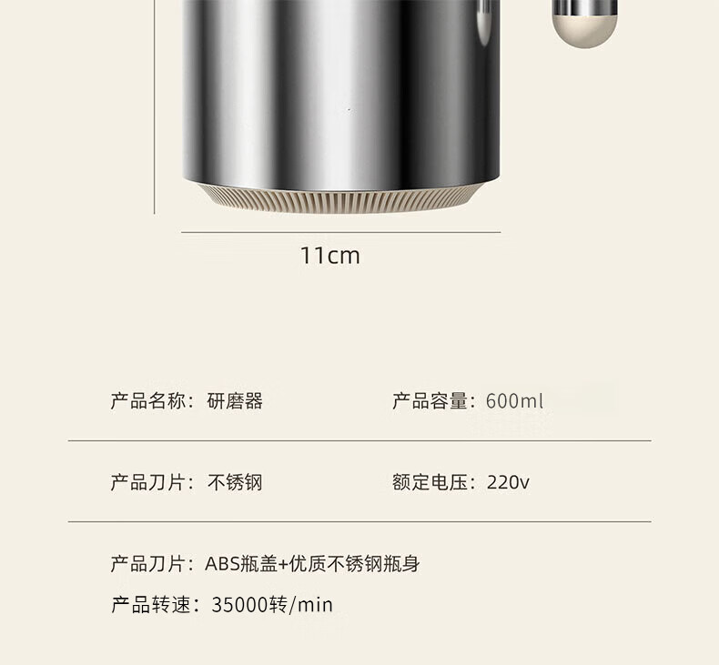 Jingyan pulverizer grinder household small grinder ultra-fine multi-functional grinder Chinese medicine grain breaking machine flagship model 600ml 430 stainless steel model 600W high power stainless steel body | 15s fast powder output | fine grinding