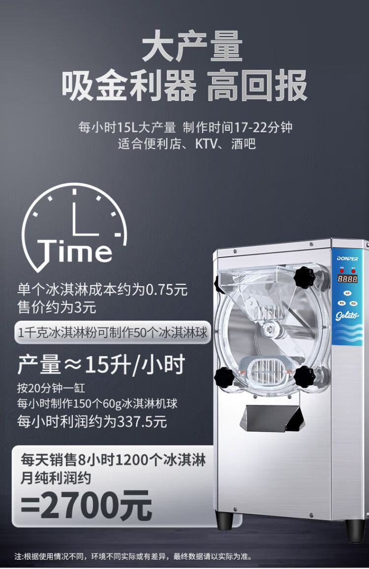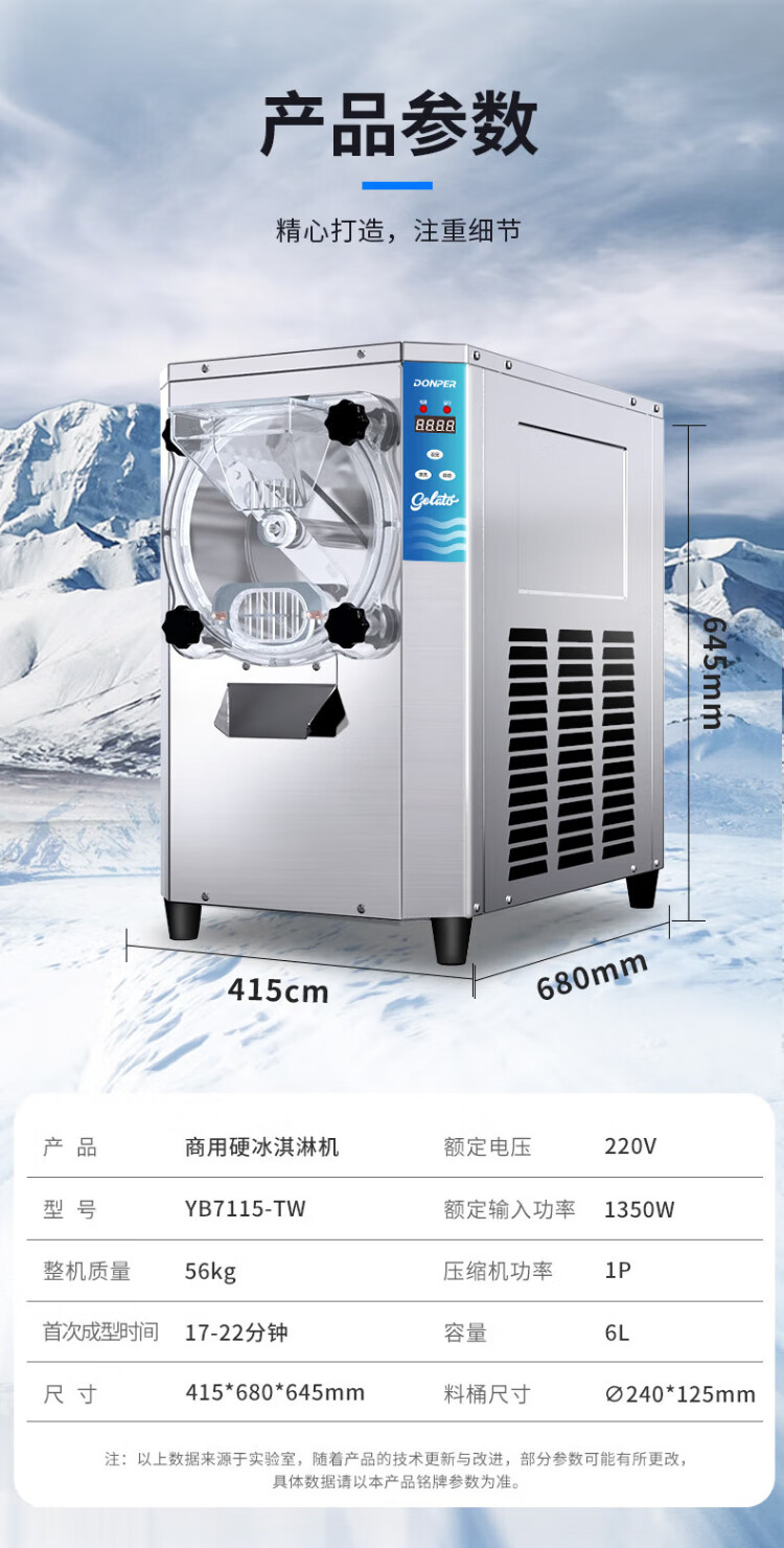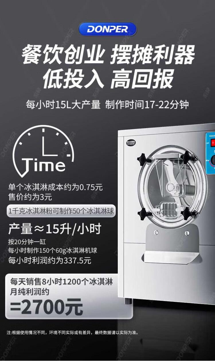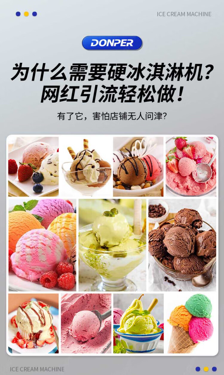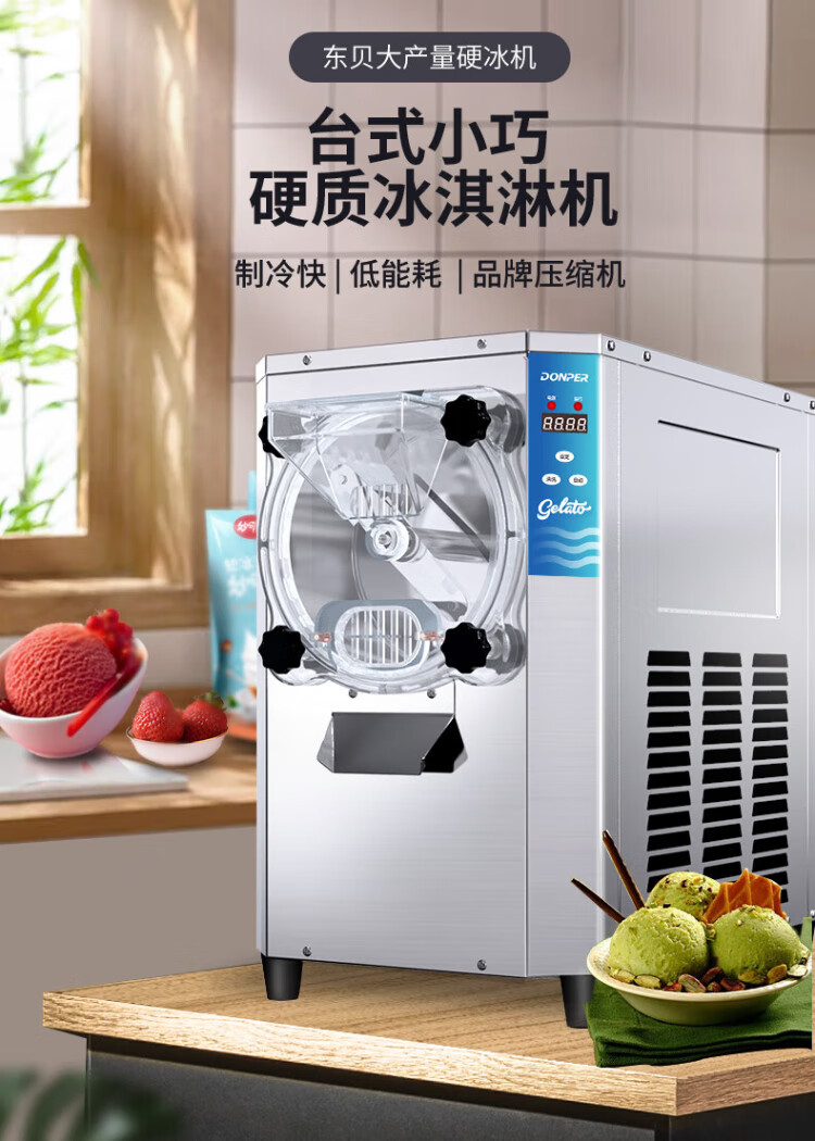 Donper hard ice cream machine commercial Gelato Italian ice cream machine desktop large-capacity ice cream machine stall dessert shop cold drink shop ice cream-shaped ice cream balls 15 liters/hour | single cylinder 5 liters | desktop high-end no freezing (takes 7 days)