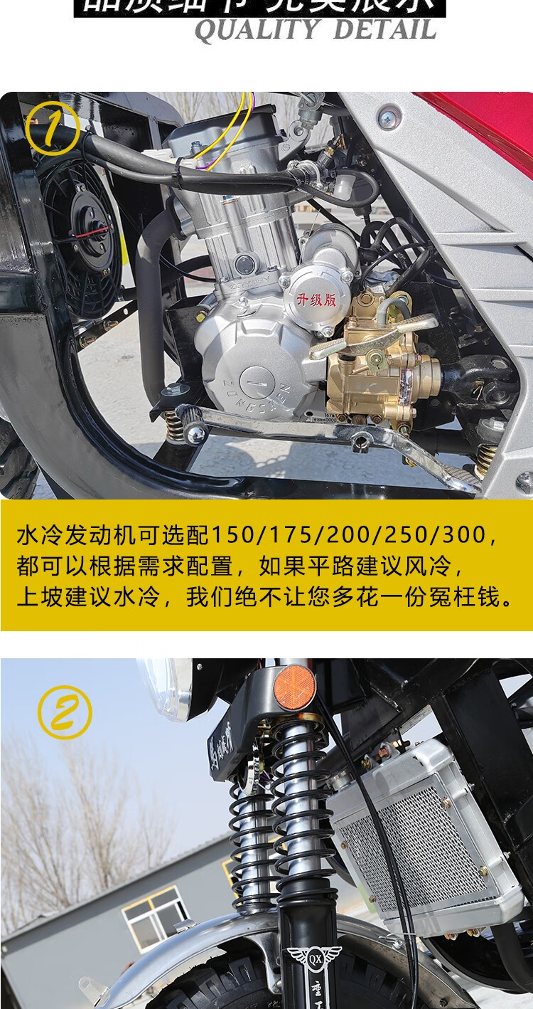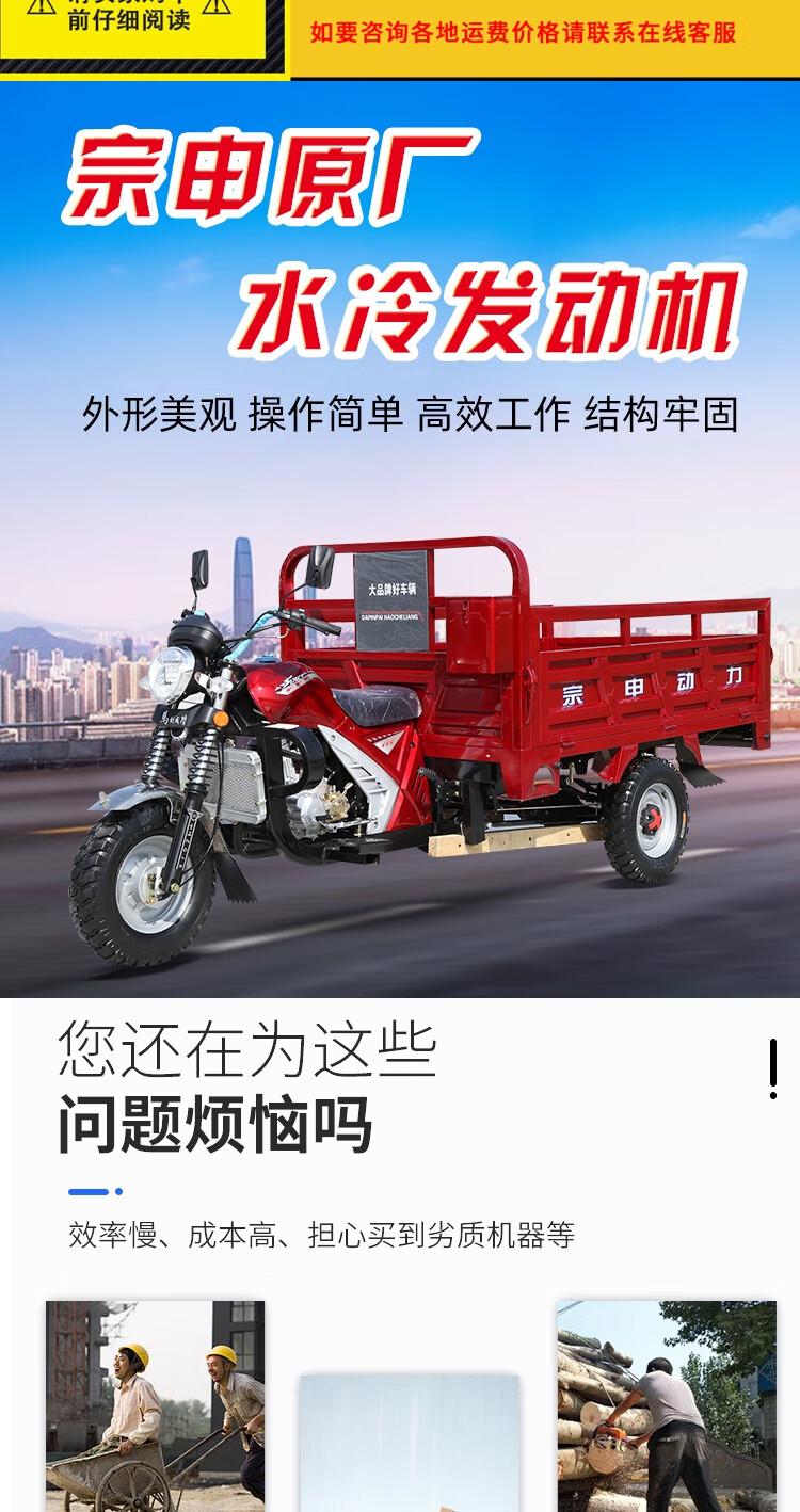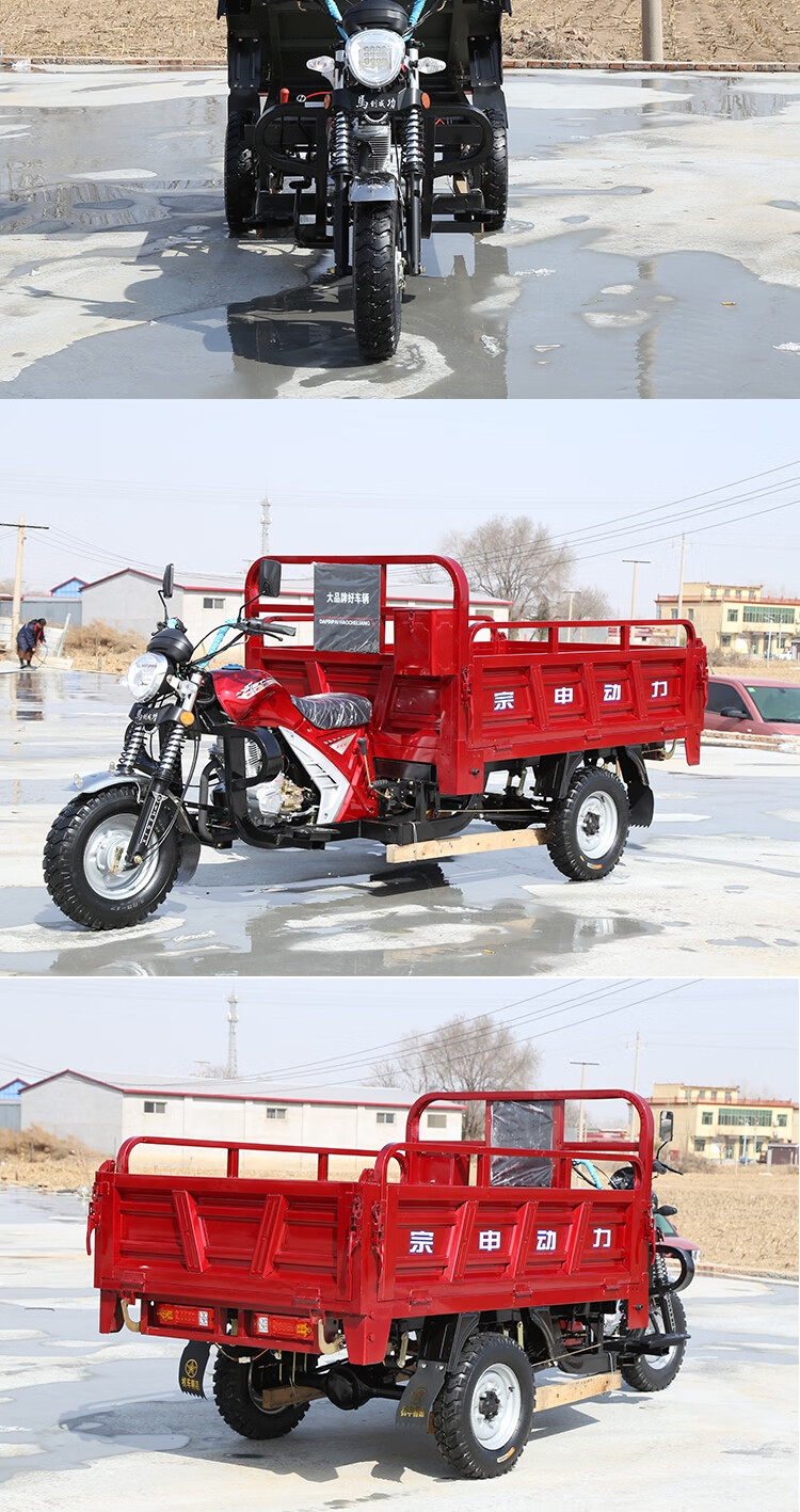 Zongshen Power's new gasoline-fueled three-wheeled motorcycle can add a dump dump, agricultural freight three-wheeled motorcycle, Zongshen 250 water-cooled 1.3X2 meter carriage