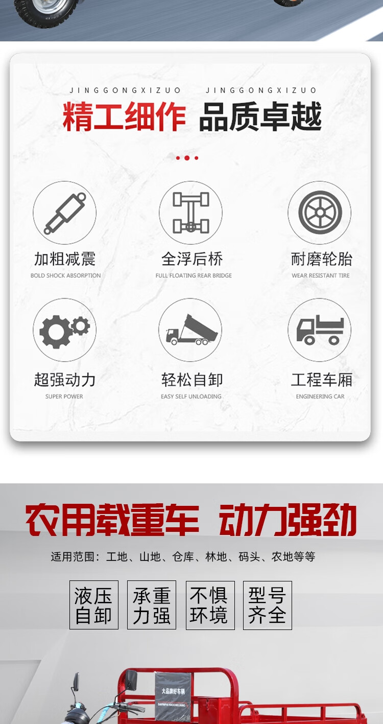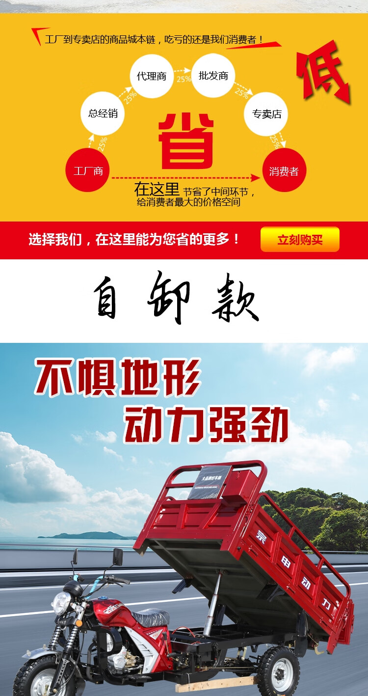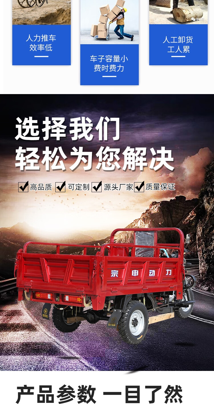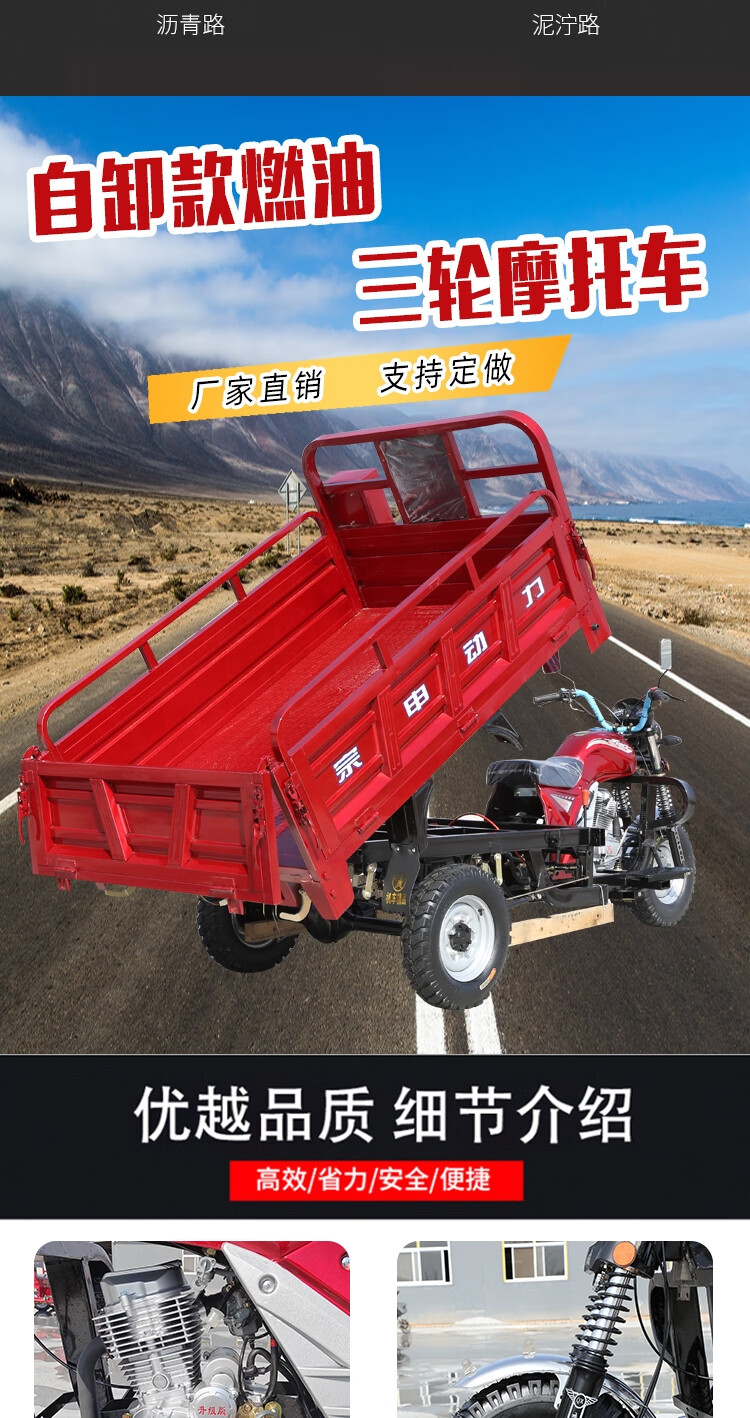 Zongshen Power's new gasoline-fueled three-wheeled motorcycle can add a dump dump, agricultural freight three-wheeled motorcycle, Zongshen 250 water-cooled 1.3X2 meter carriage
