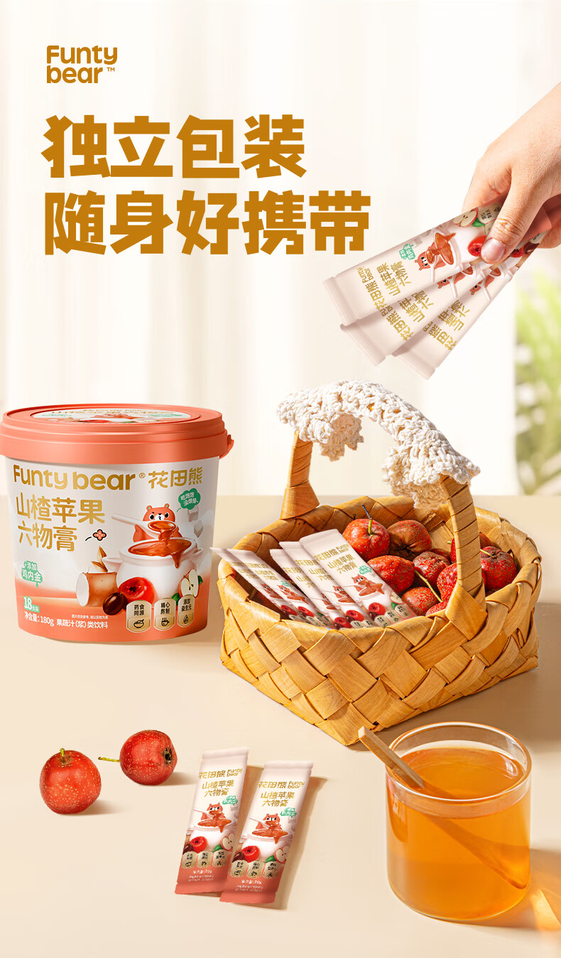 Huatian Xiong, Apple, Hawthorn Liuwu Paste, Chicken Ginseng, No Added Preservatives for Children, Soak in Water and Drink Autumn Pear Paste during the Season, Hawthorn, Apple, Liuwu Paste, 180g*1 Box