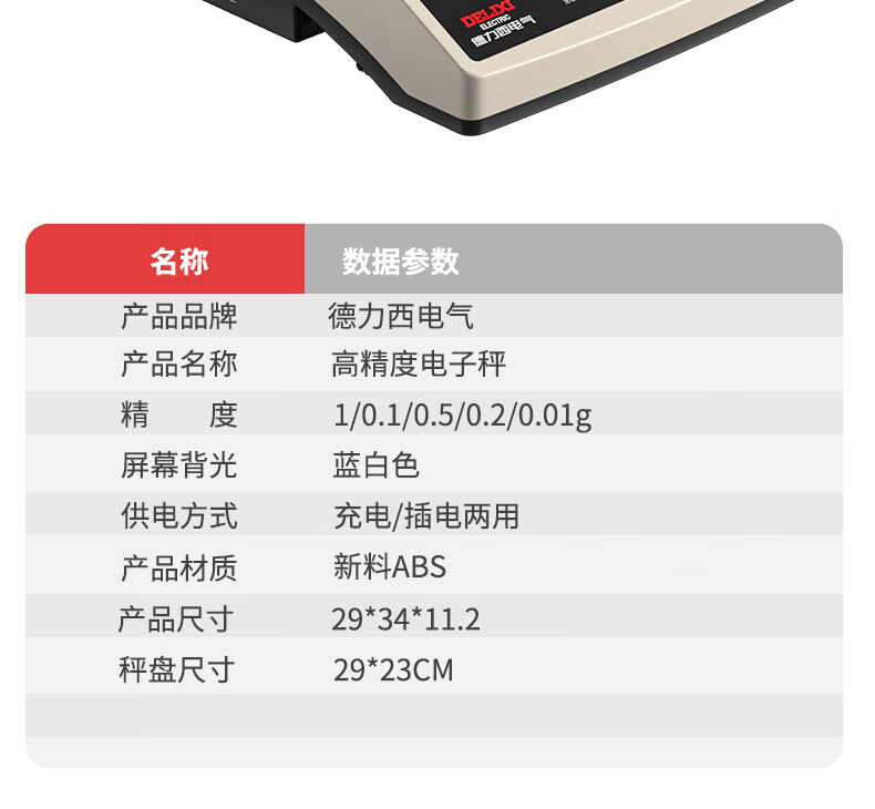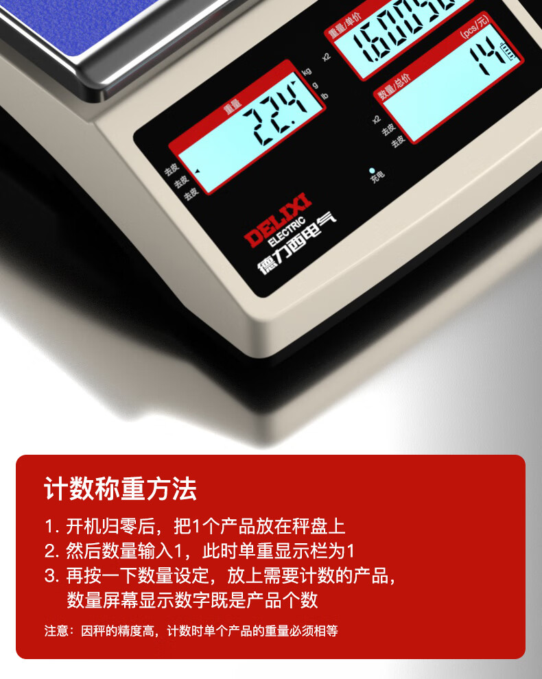 Delixi Electric high-precision electronic scale counting scale commercial precision gram scale price scale precision multi-function weighing food industry platform scale counting scale rechargeable 6kg accuracy 0.2g