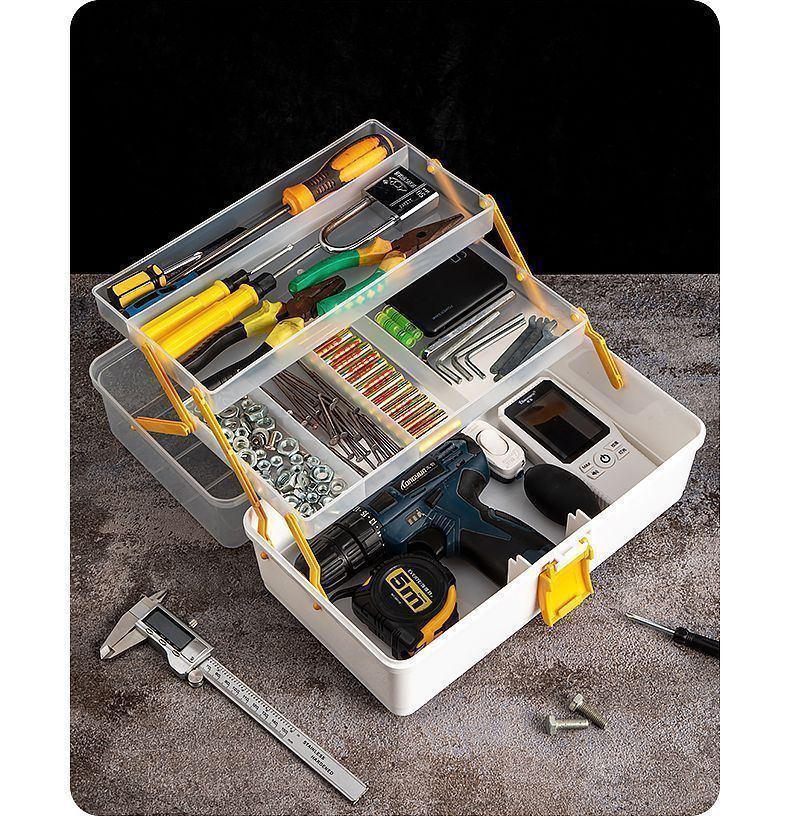 Vinoa multifunctional hardware car electrician multi-layer folding storage box three-layer tool box industrial grade home art box thick main picture large size * super capacity - open large space sky blue
