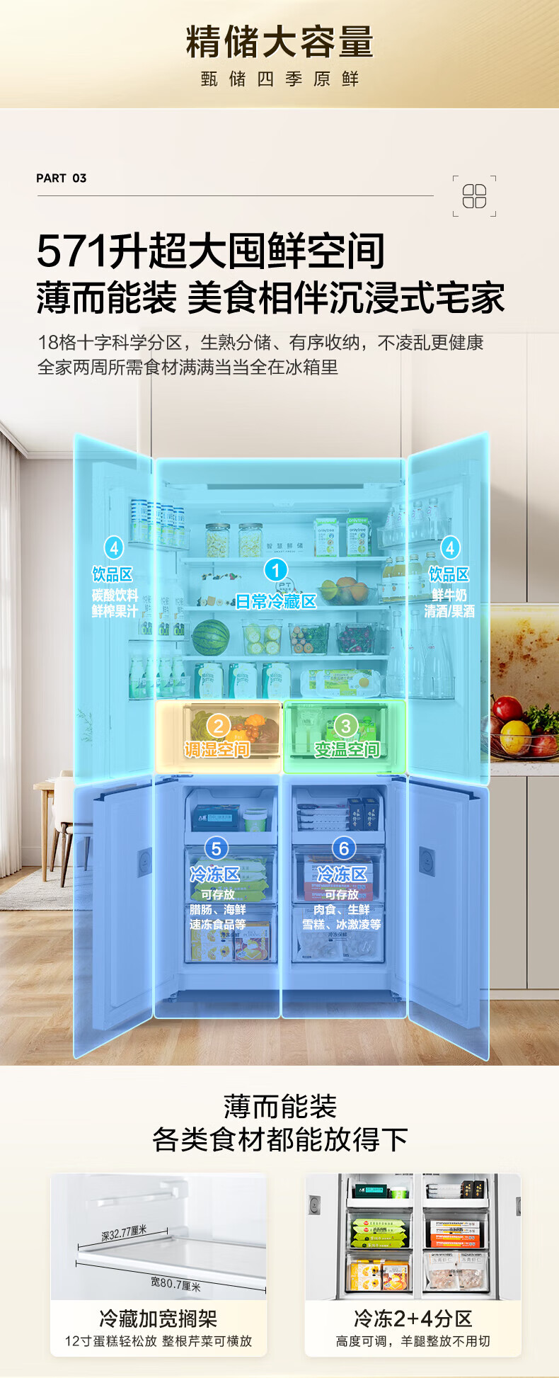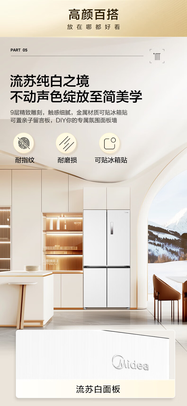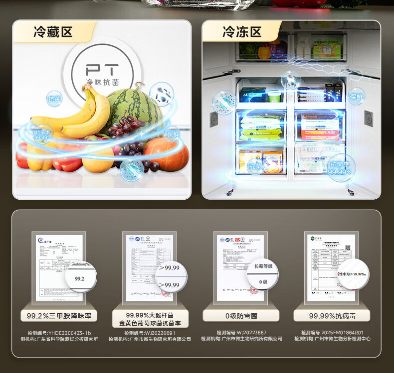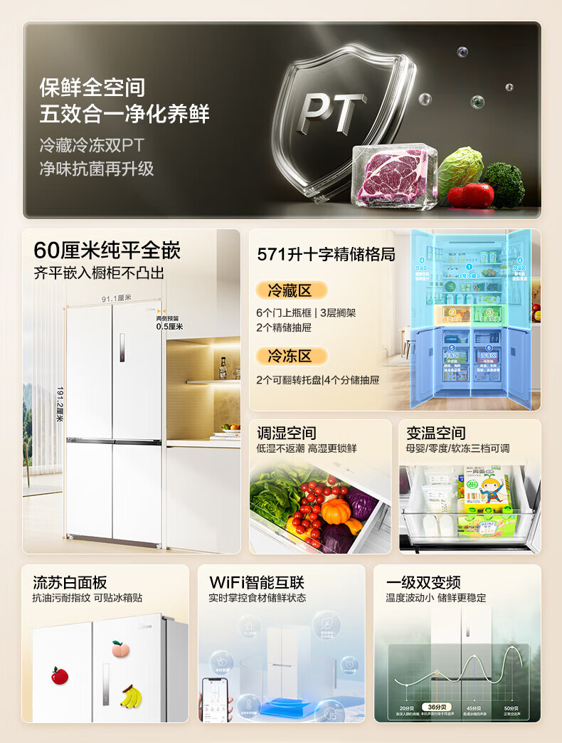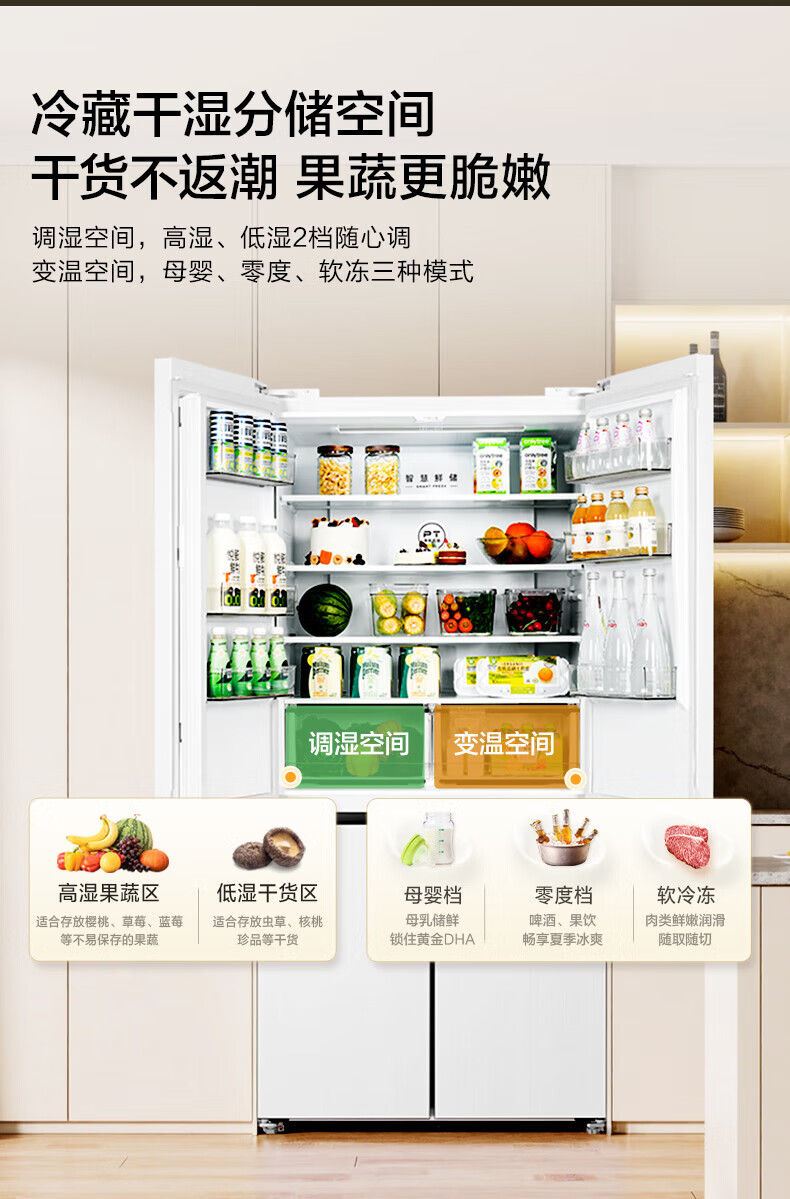 Midea 60 cm ultra-thin zero-distance embedded cross-door four-door air-cooled frost-free first-level energy efficiency dual-frequency bottom cooling energy-saving smart home refrigerator 508 liter dual system BCD-508WUSPZM (E) gray