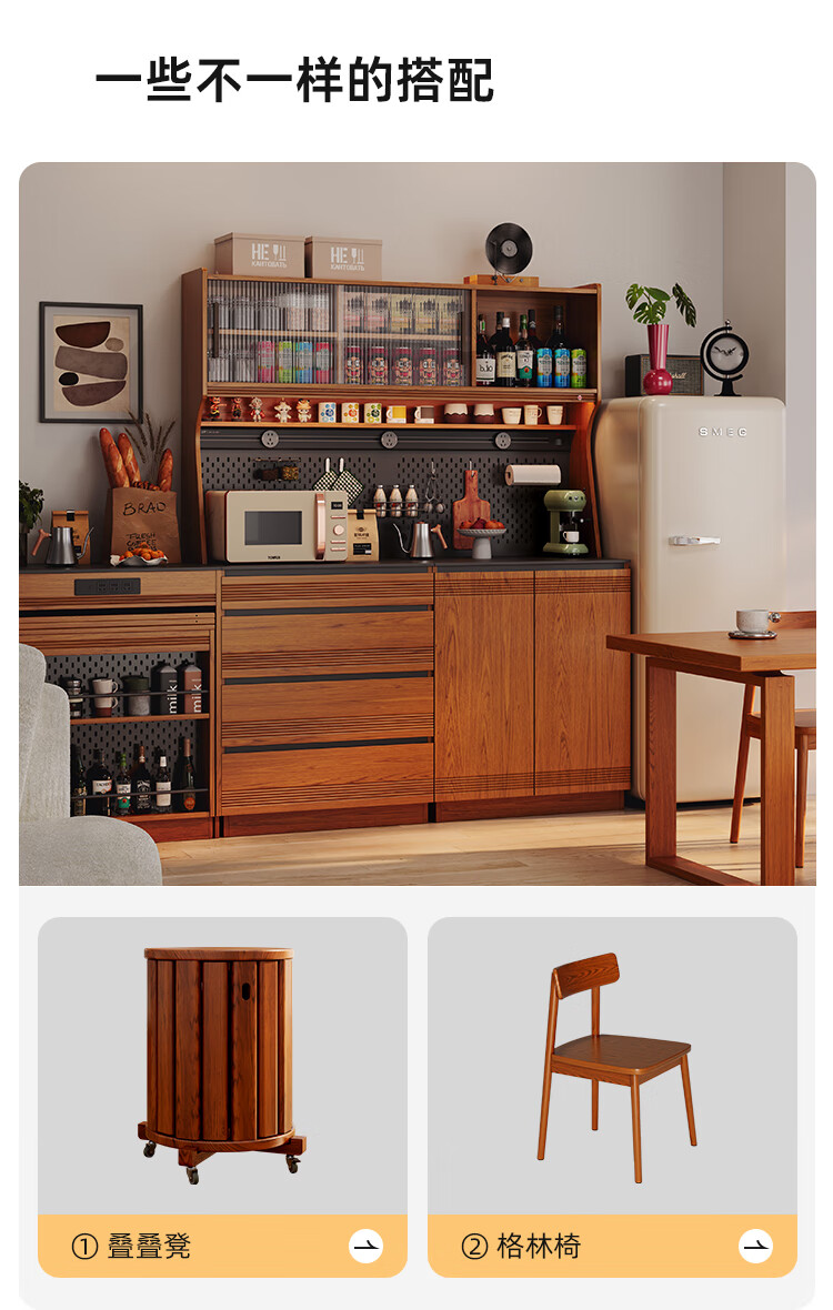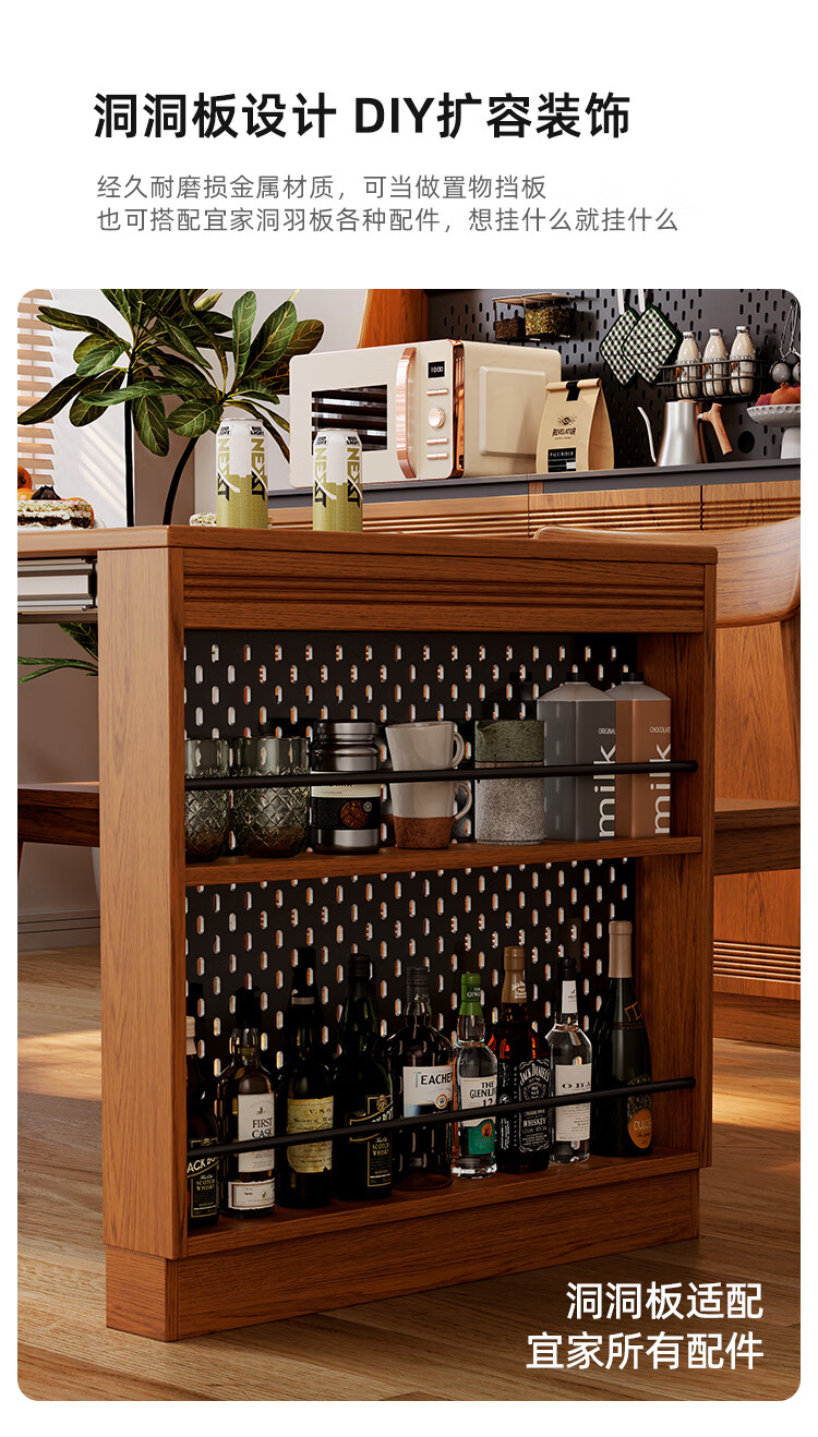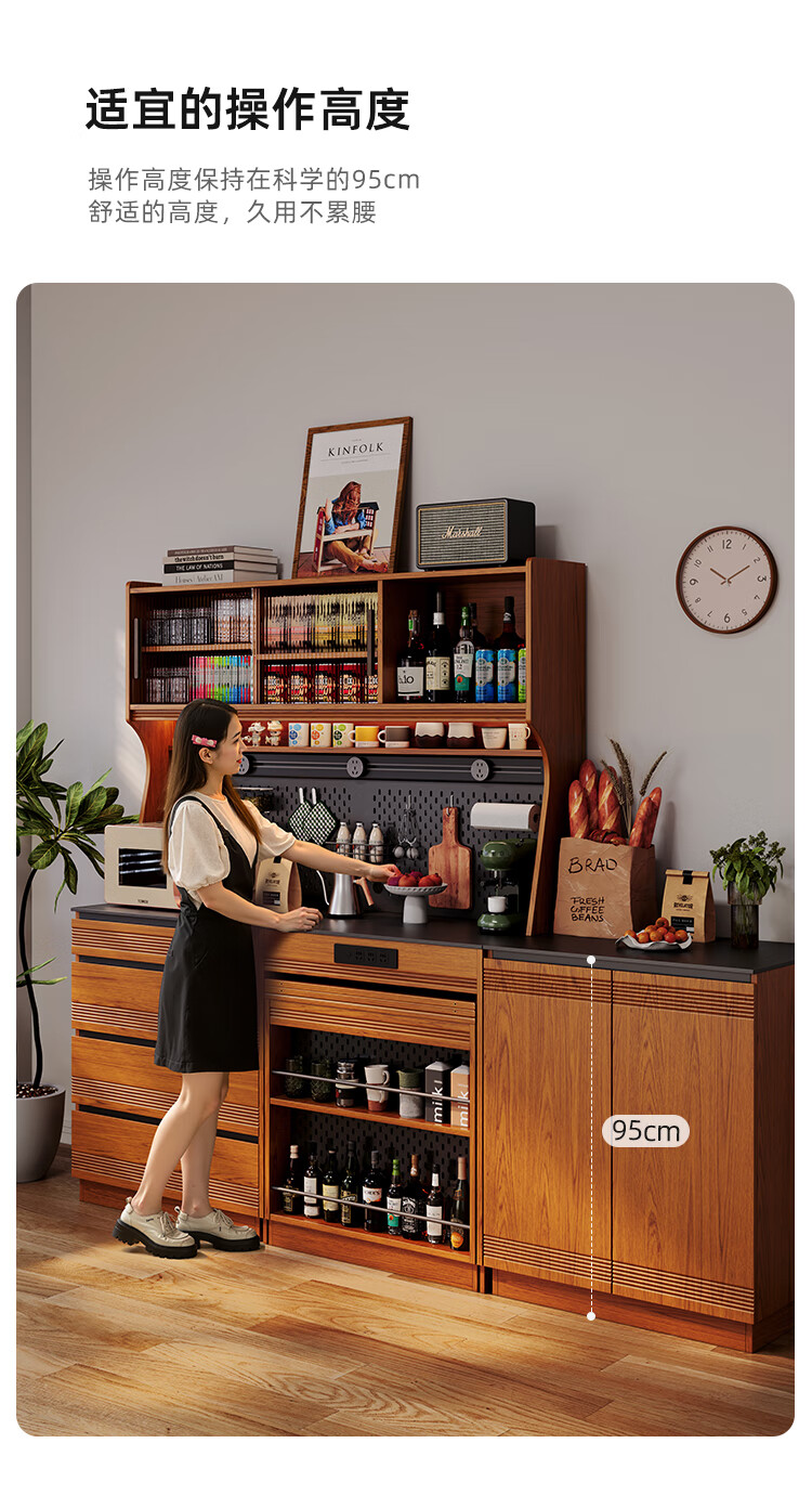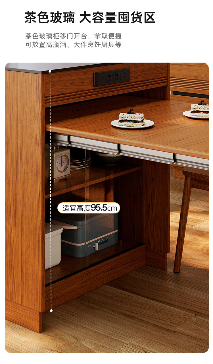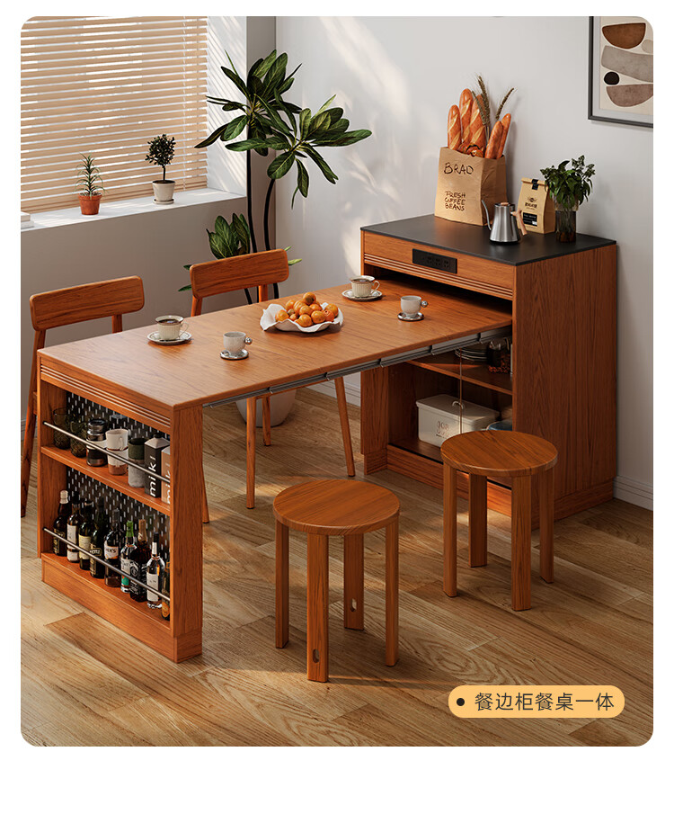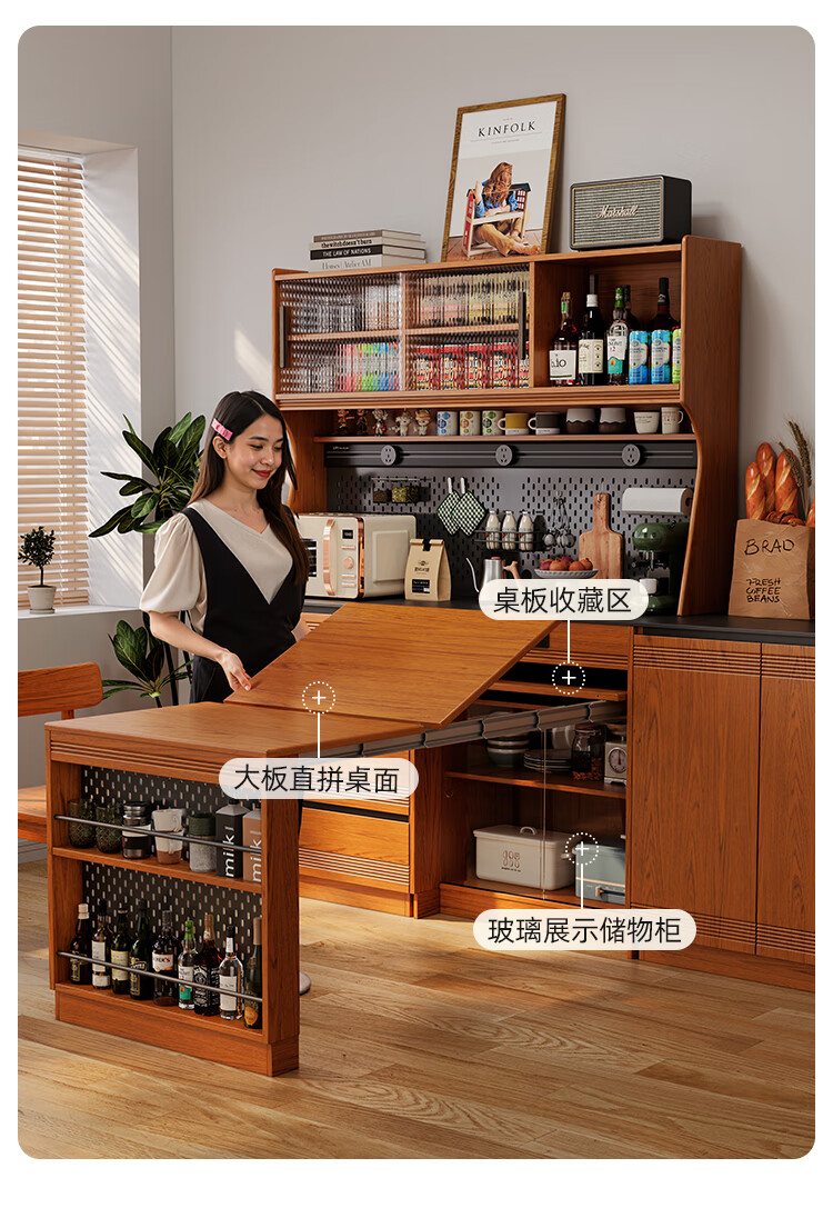 GOZEAL solid wood sideboard dining table integrated home kitchen storage cabinet living room multi-functional wine cabinet tea cabinet wall-mounted high cabinet A-retractable island dining table