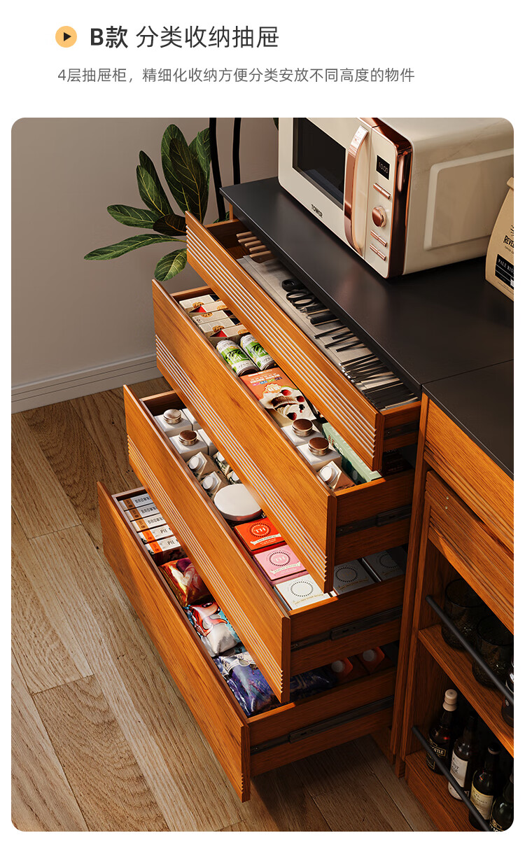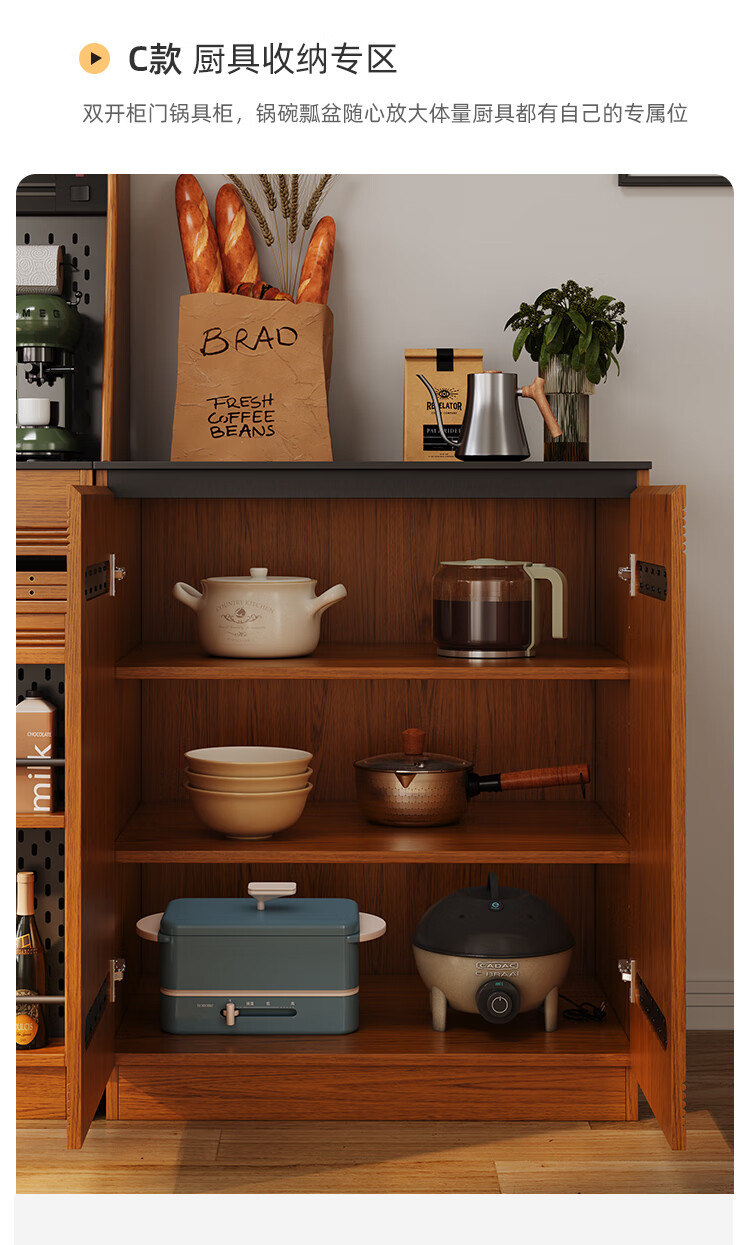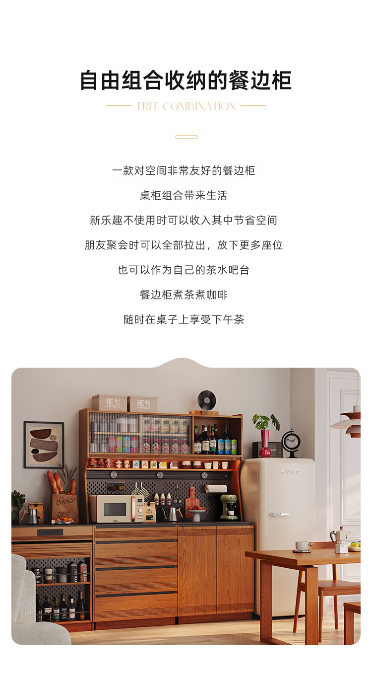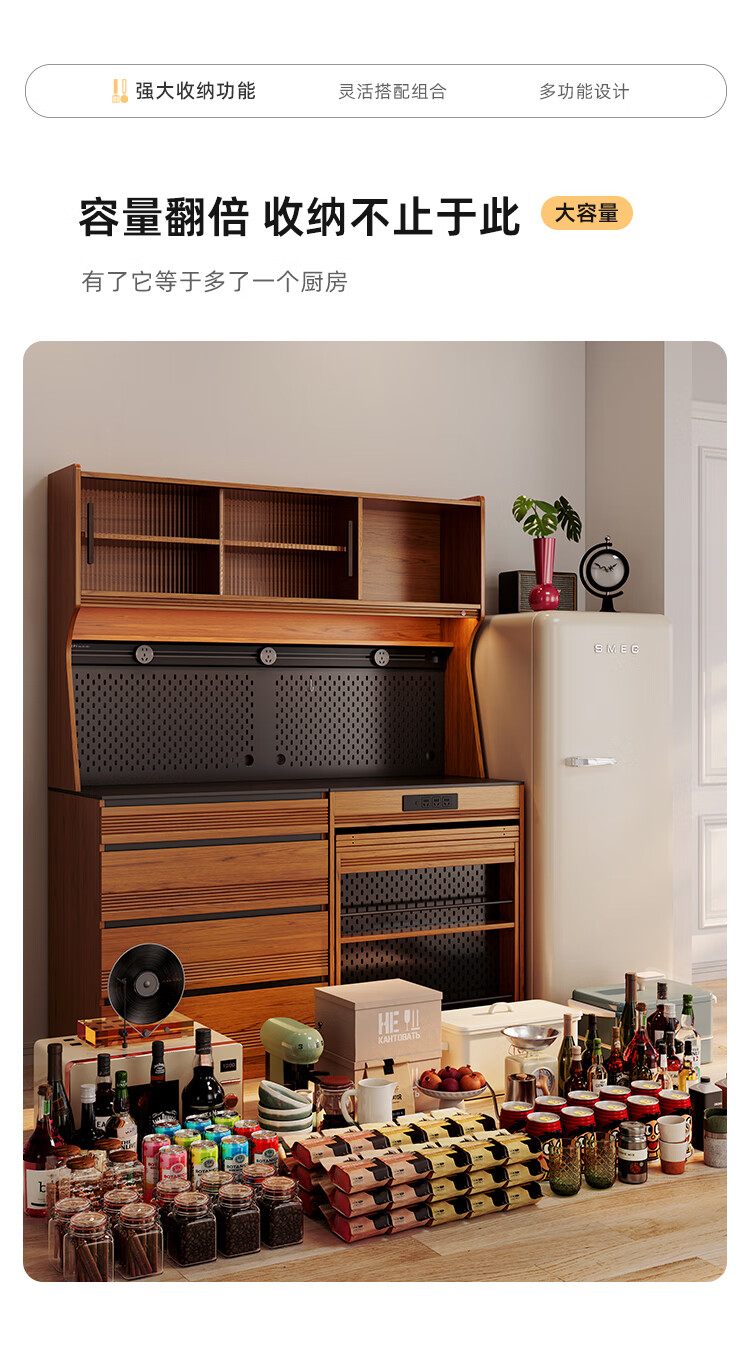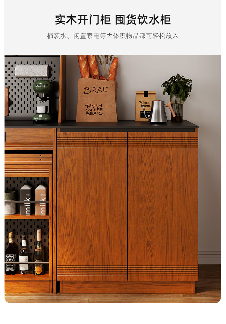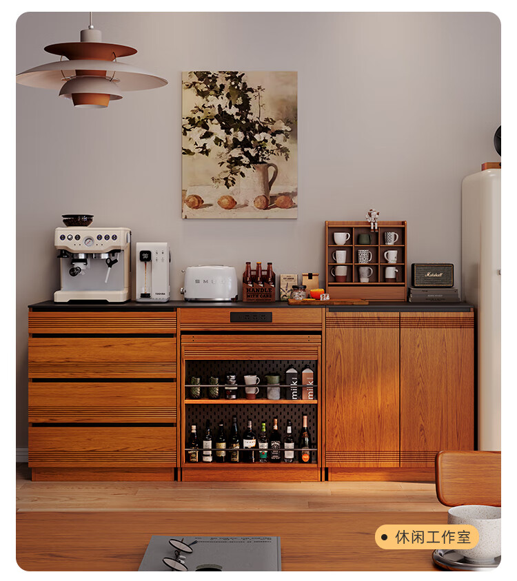 GOZEAL solid wood sideboard dining table integrated home kitchen storage cabinet living room multi-functional wine cabinet tea cabinet wall-mounted high cabinet A-retractable island dining table