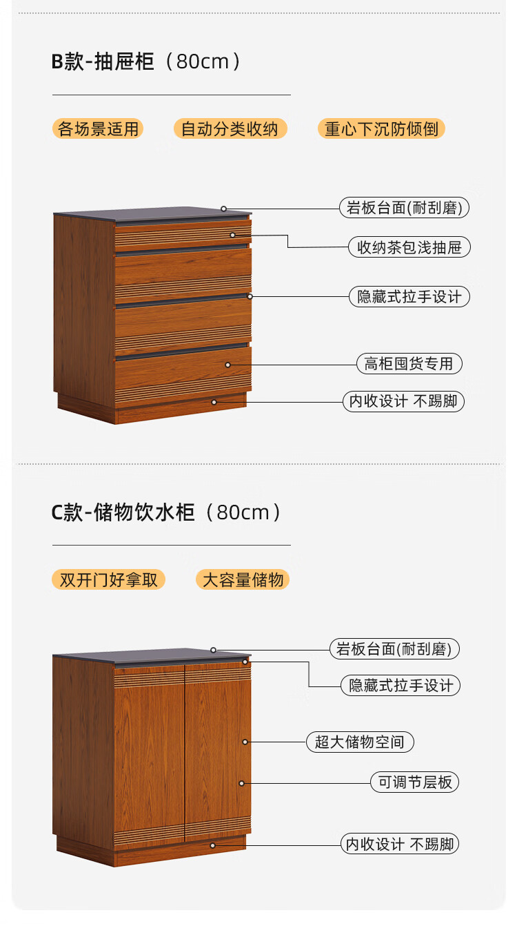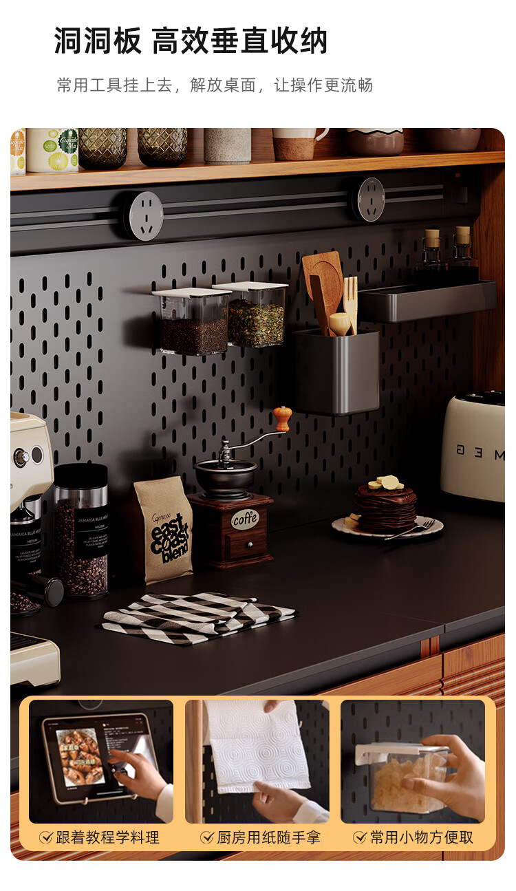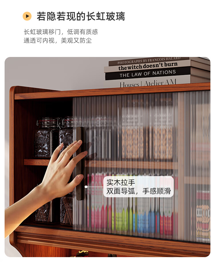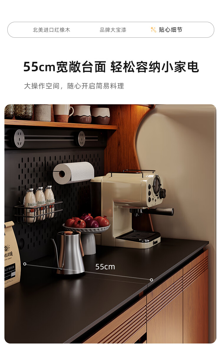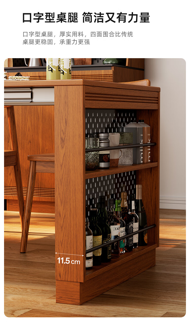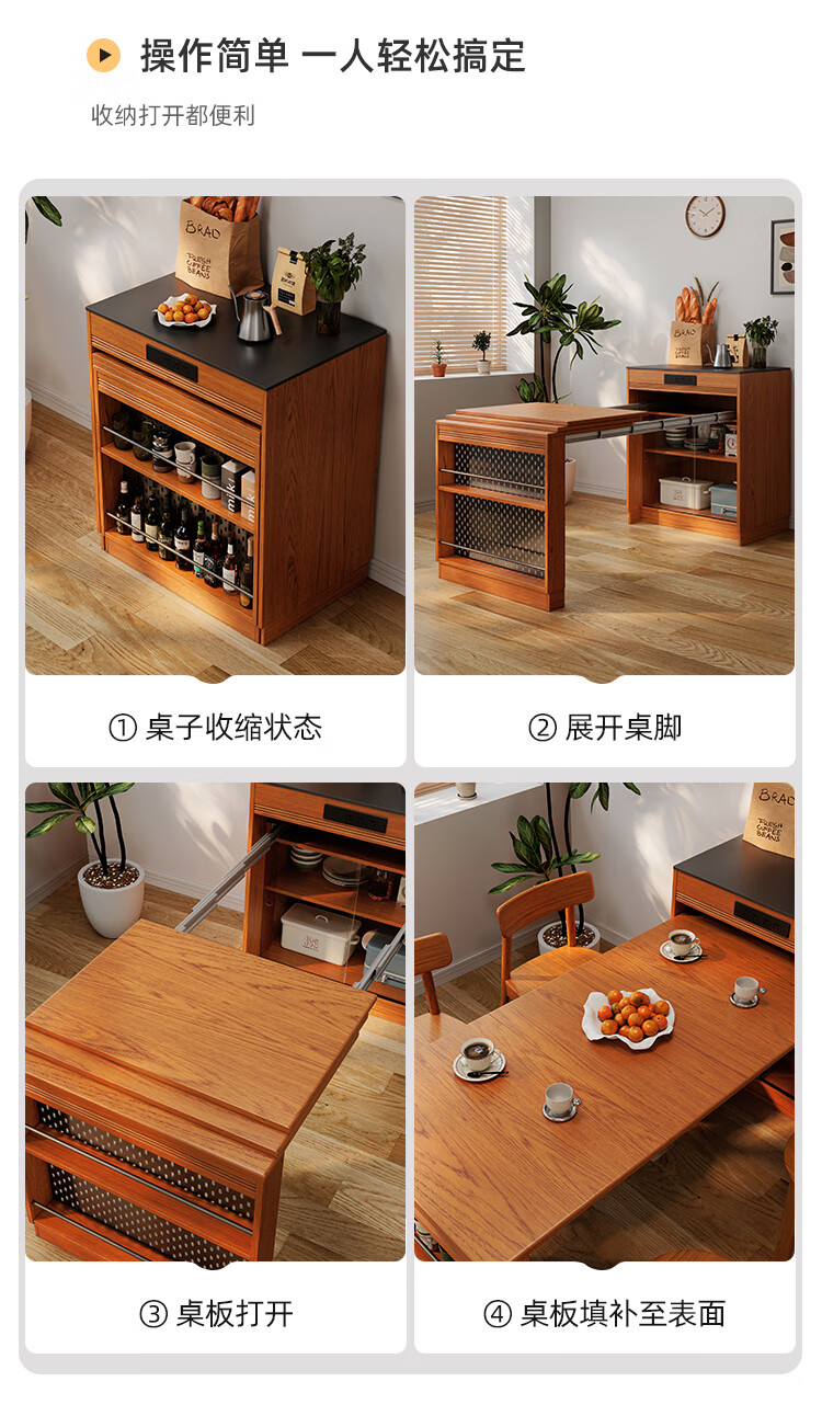 GOZEAL solid wood sideboard dining table integrated home kitchen storage cabinet living room multi-functional wine cabinet tea cabinet wall-mounted high cabinet A-retractable island dining table