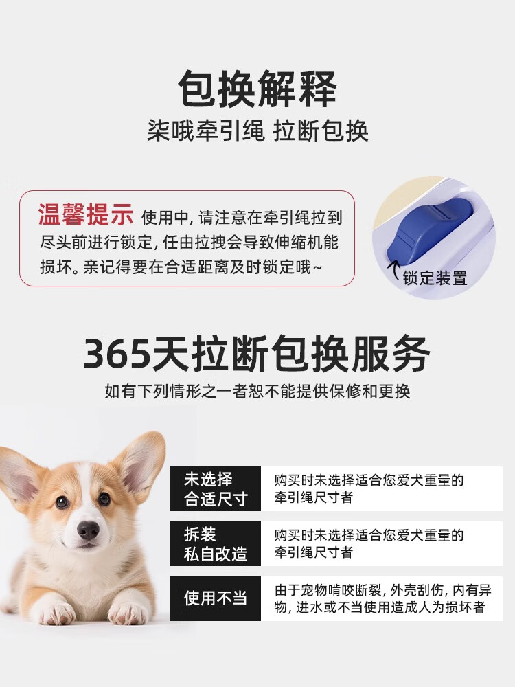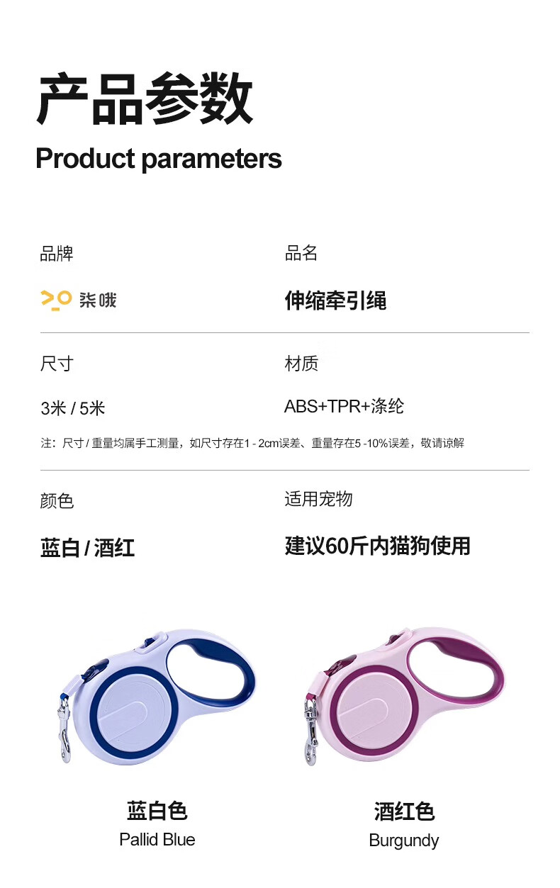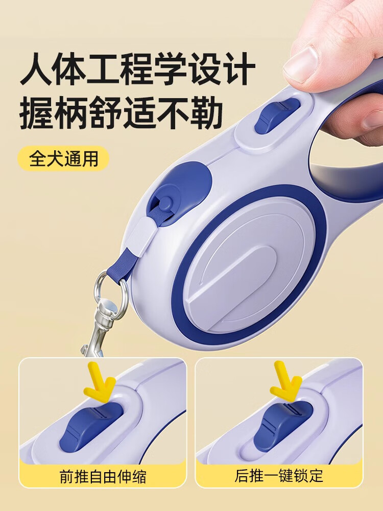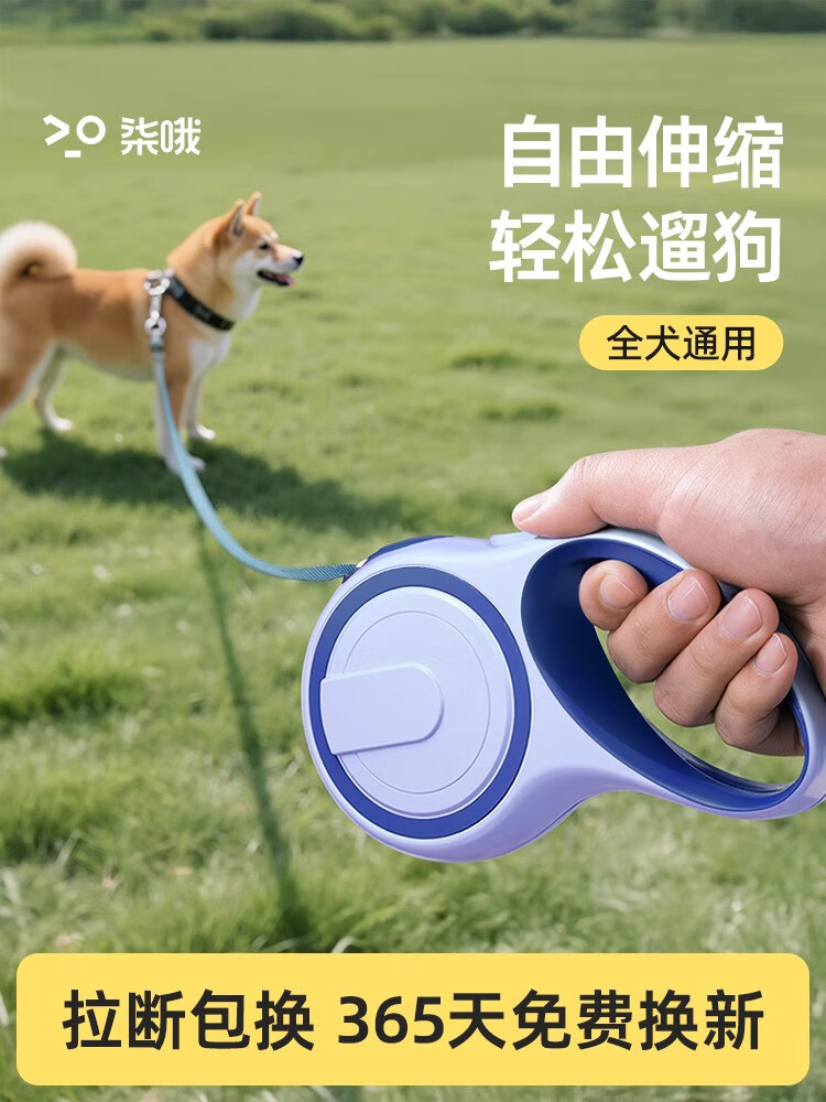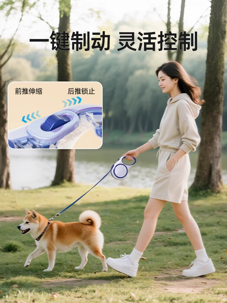 QiOh Dog Leash Automatic Retractable Anti-breakaway Dog Leash Small and Medium-sized Dog Leash Shiba Inu Corgi Pet Supplies Ordinary Style - White 3M Single Leash (Auto-retractable, One-button Braking)