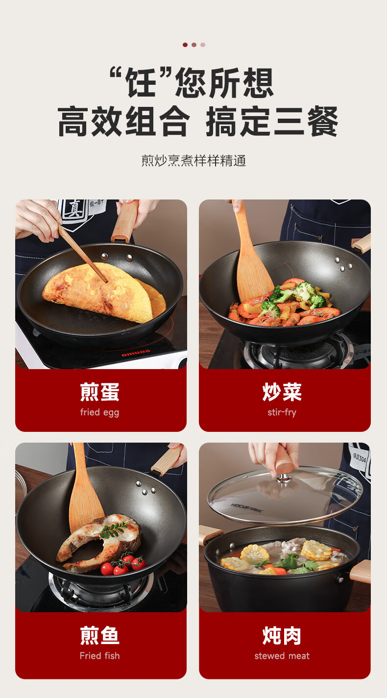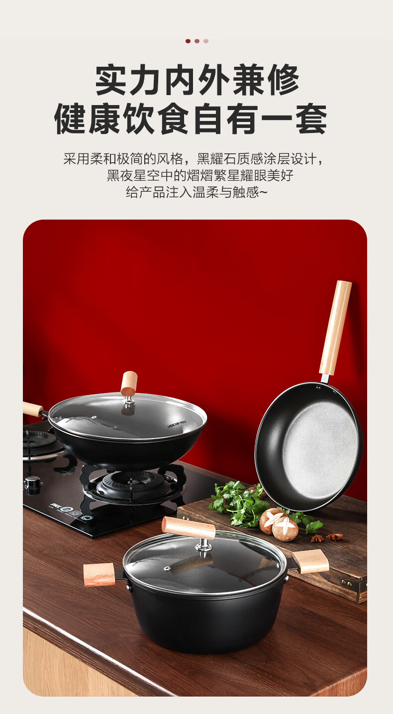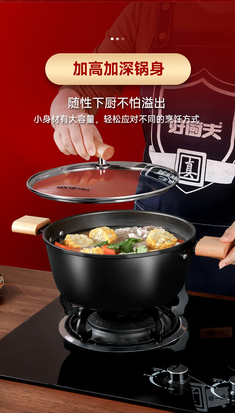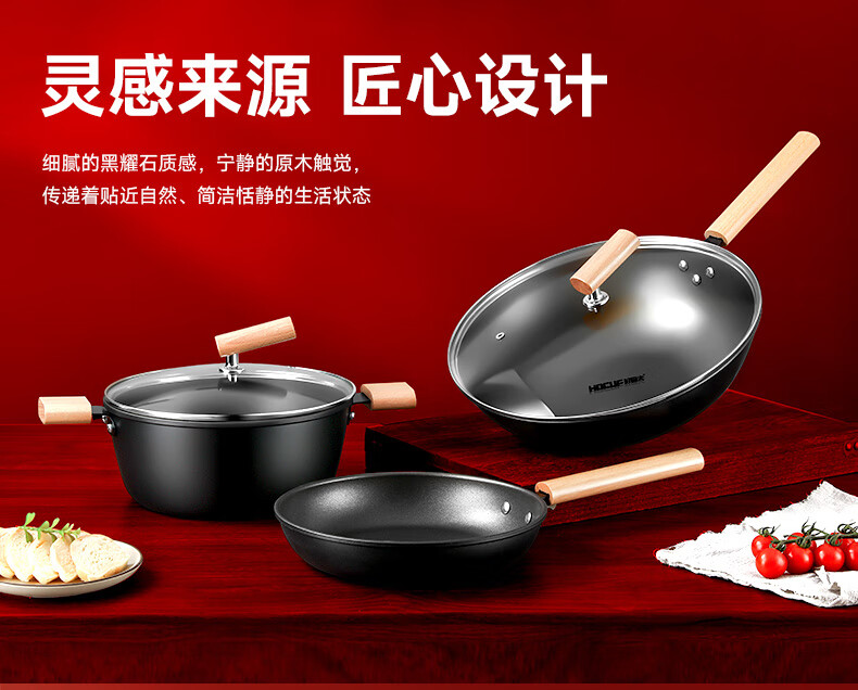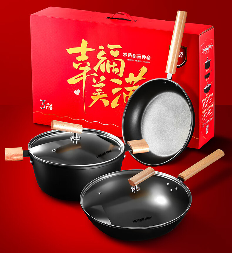 HOCUF three-piece pot set non-stick gift set household wok soup pot cooking cookware pan 0753 Happy Pot Set 3-piece set