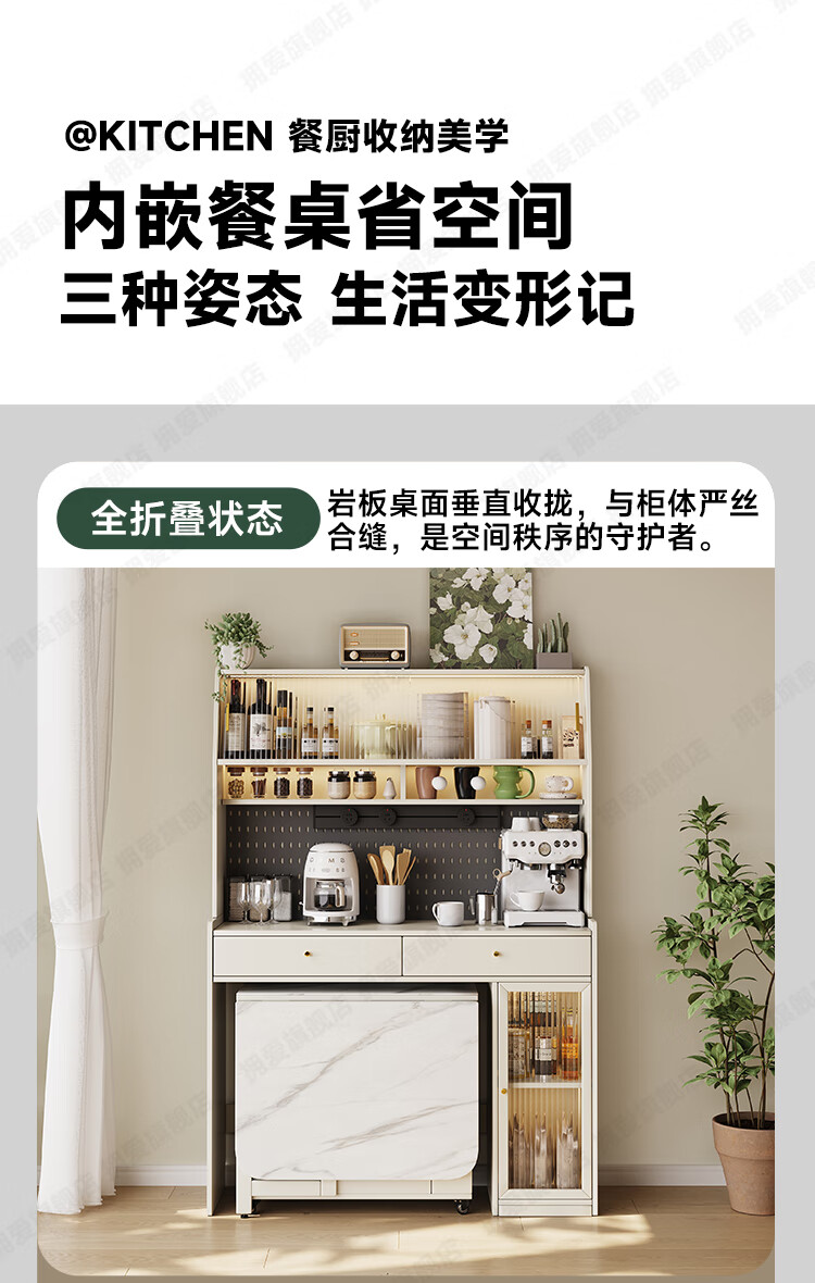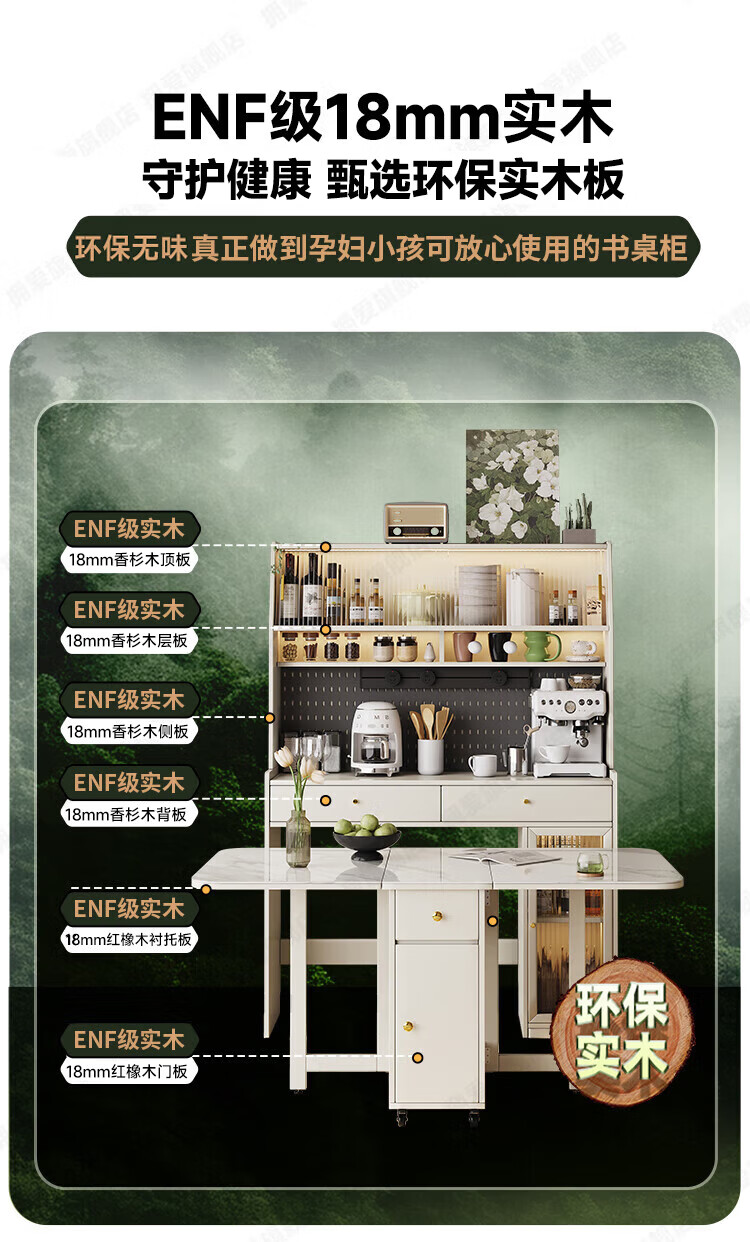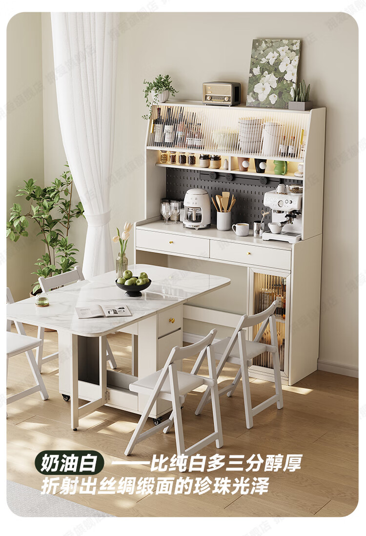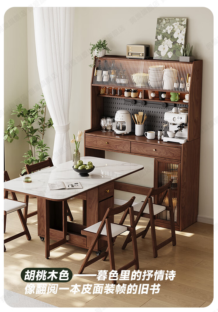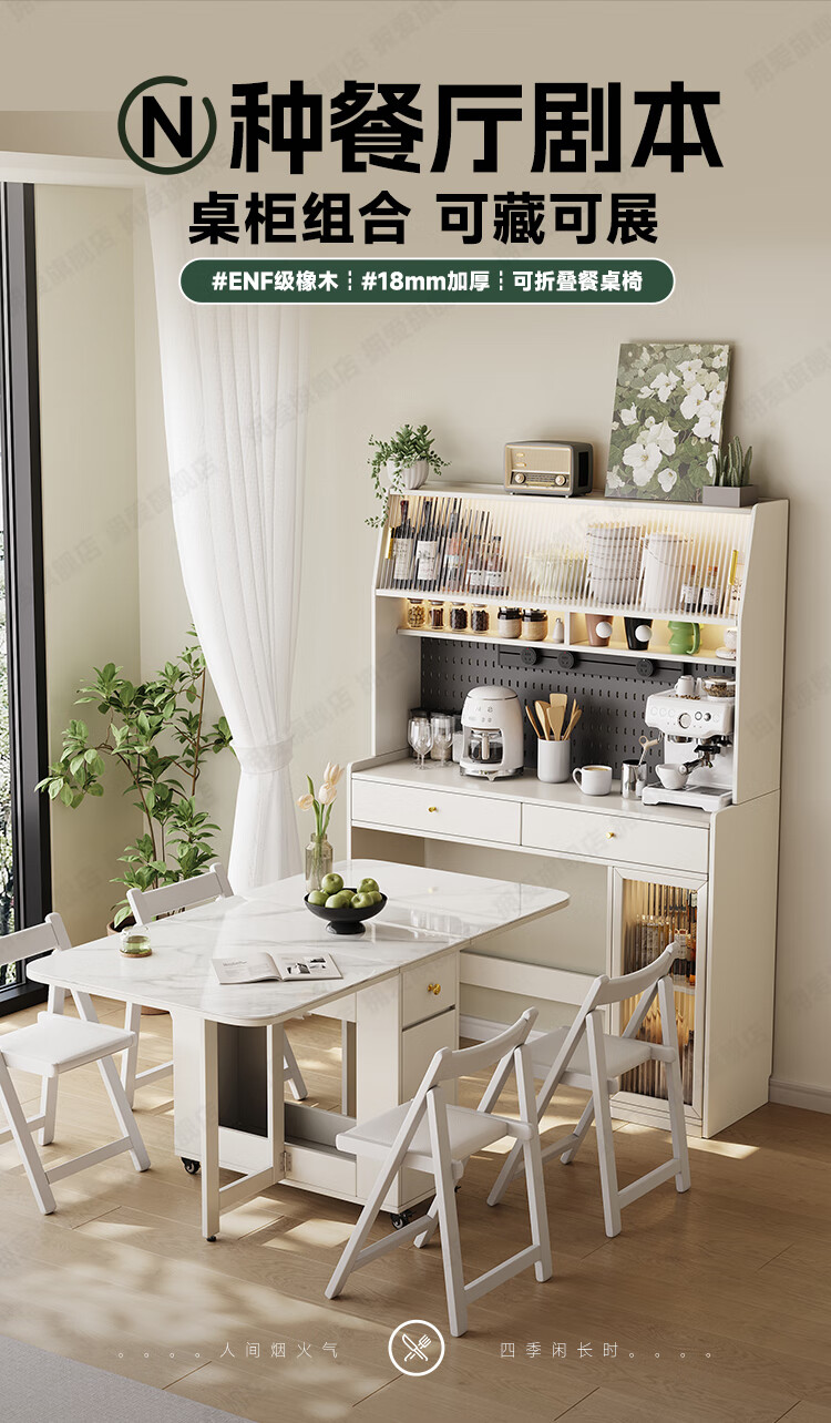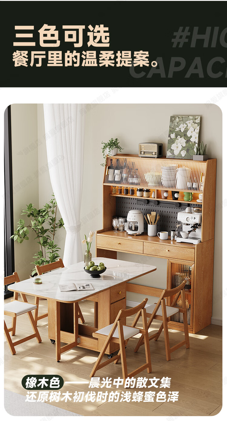 Yongai customized solid wood oak built-in sideboard dining table integrated small apartment home cream style retractable folding dining table 1.2*1.84 sideboard bull socket + hole board
