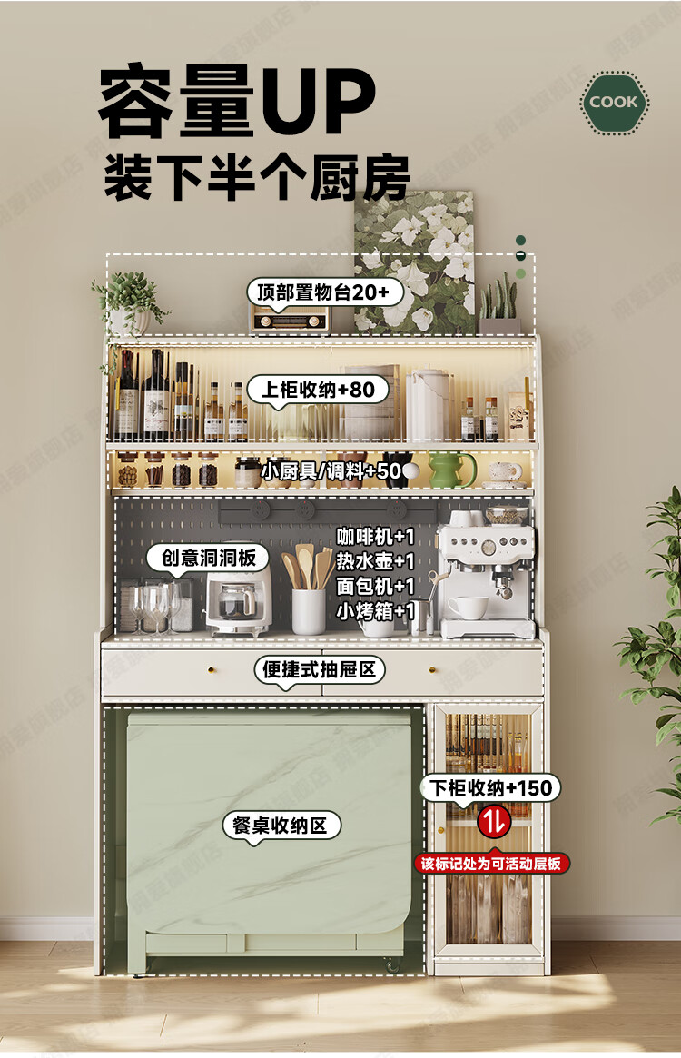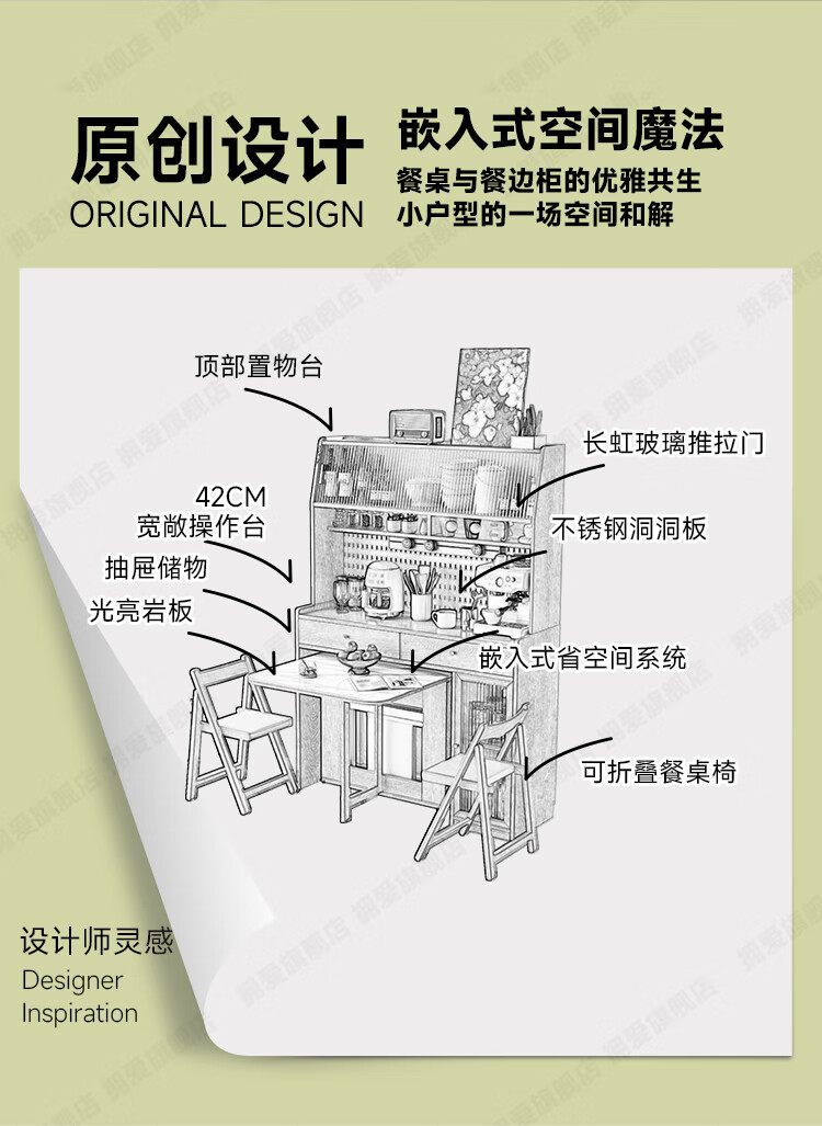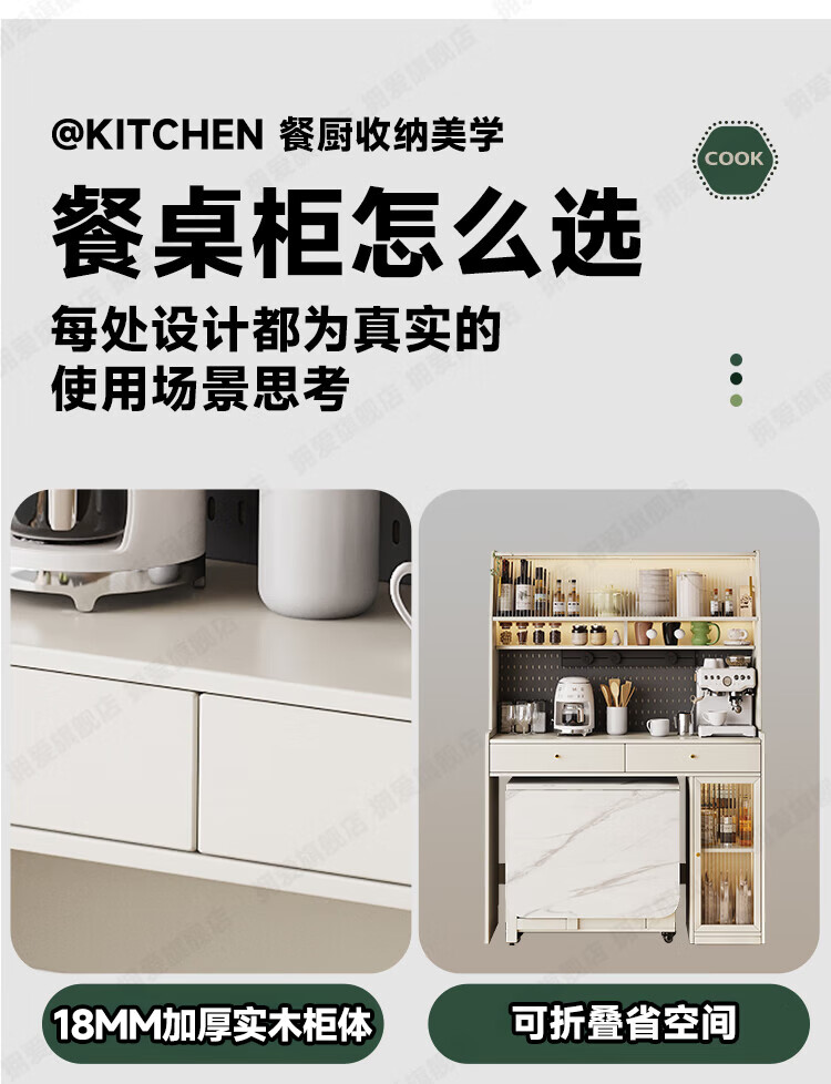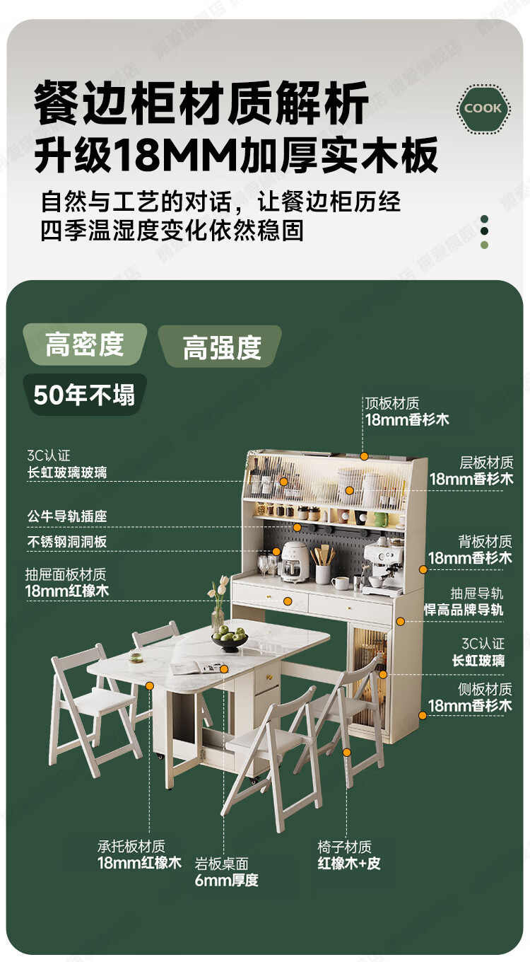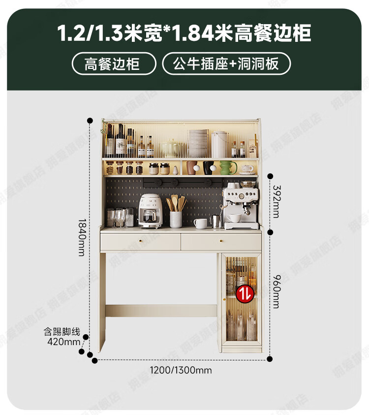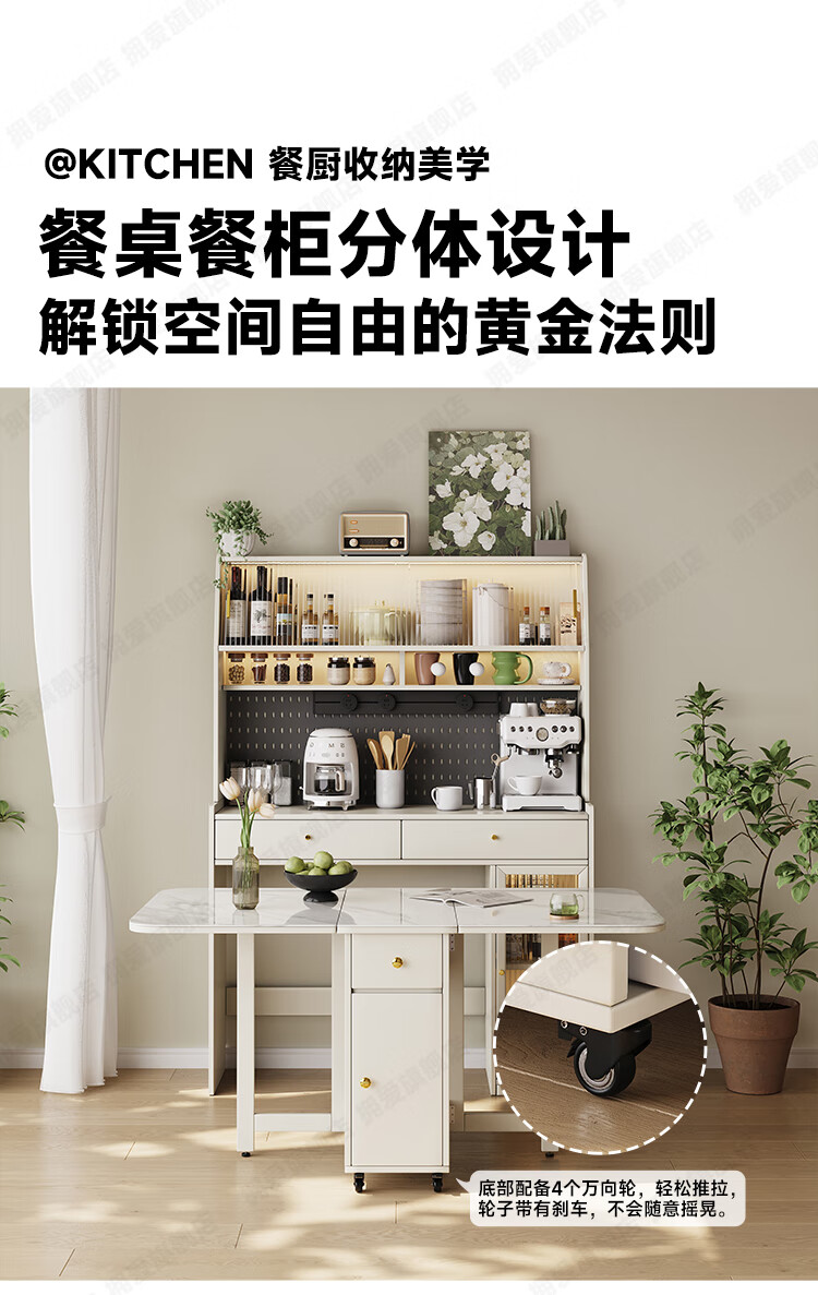 Yongai customized solid wood oak built-in sideboard dining table integrated small apartment home cream style retractable folding dining table 1.2*1.84 sideboard bull socket + hole board