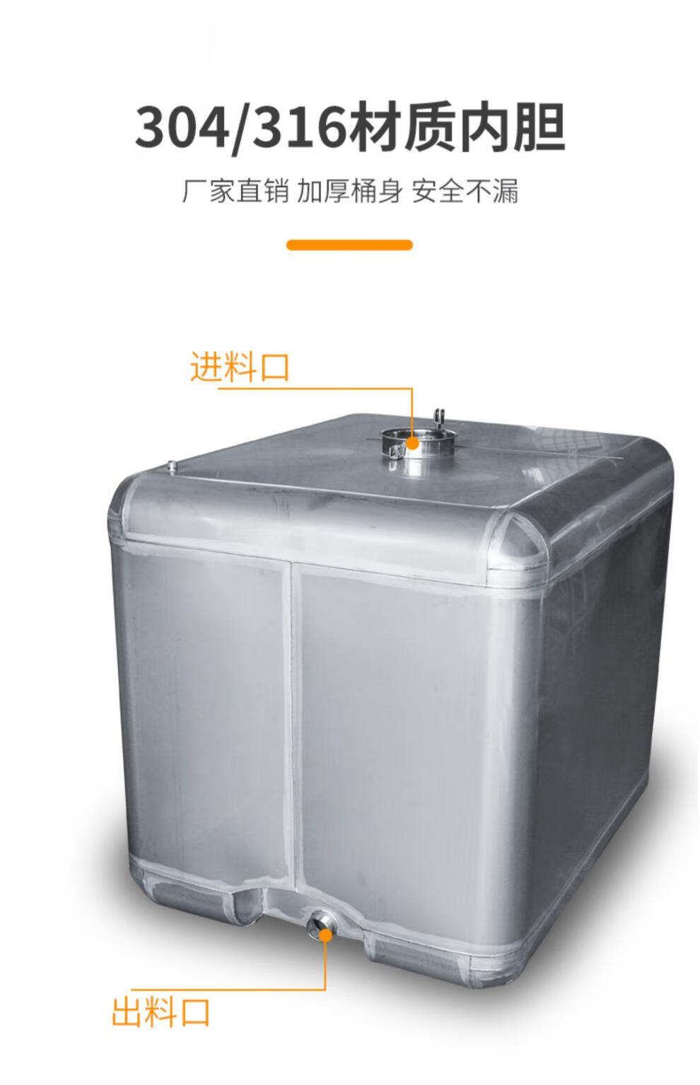 No free shipping 304 stainless steel ton barrel 1000 liter explosion-proof ton barrel square one ton 316 stainless steel food grade oil barrel new 1000L ton barrel standard model (white)