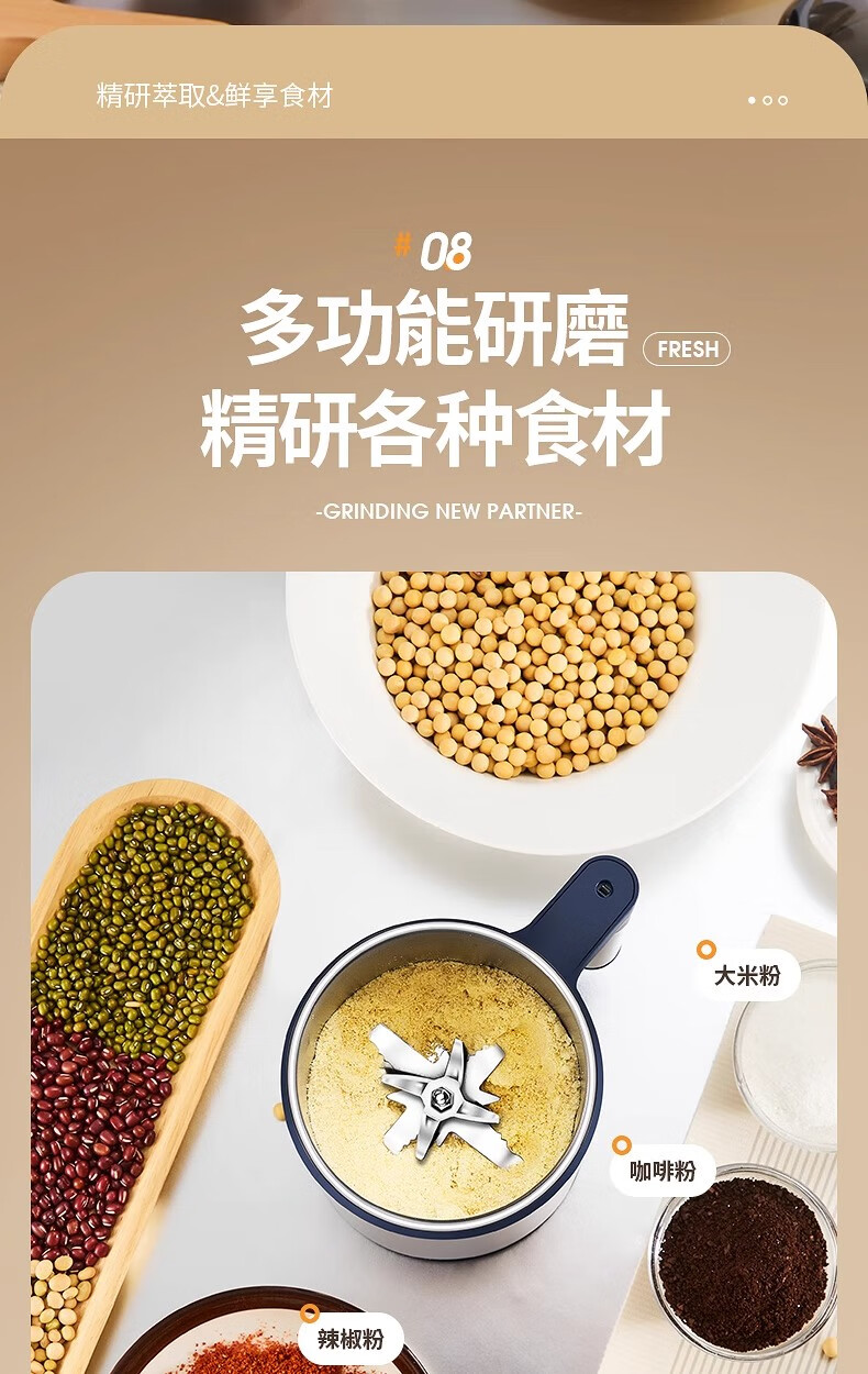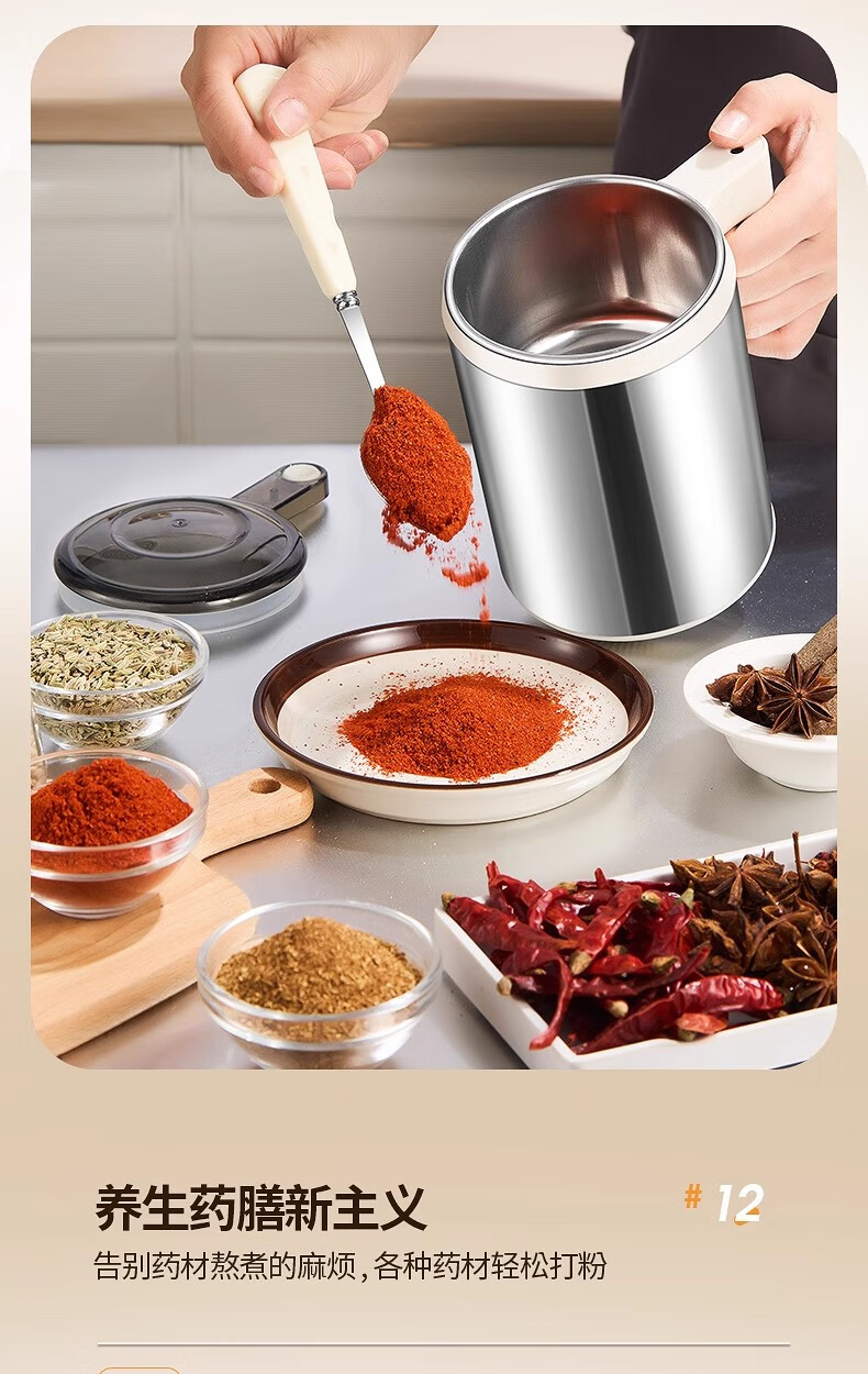 Jingyan German quality grinder ultra-fine grinder household traditional Chinese medicine grinder small grain grinder luxury model 600ml large capacity + 316 stainless steel grinder 2025 new | 12-leaf stainless steel blade