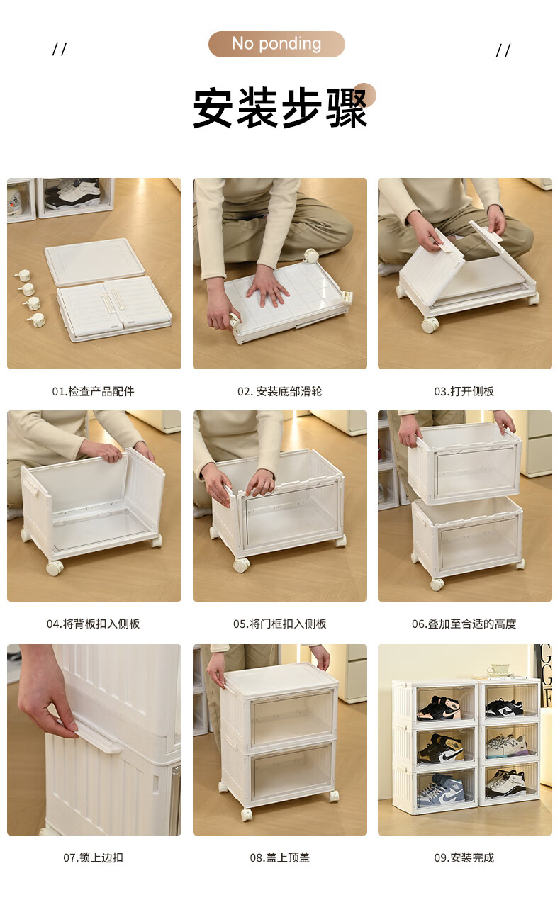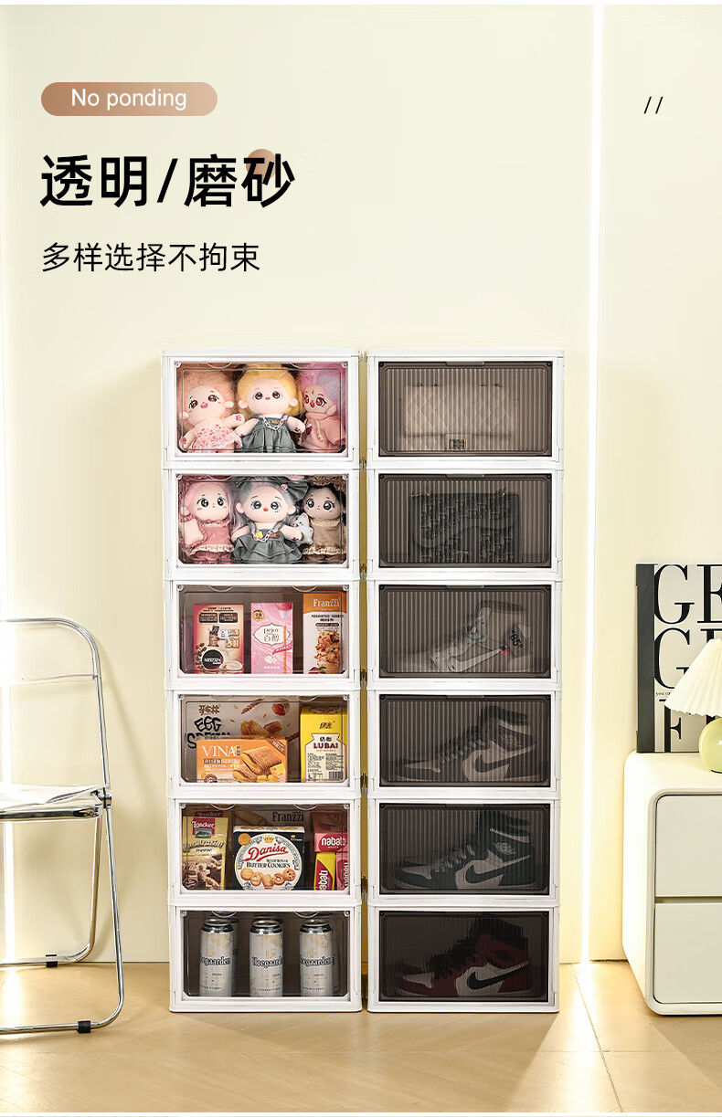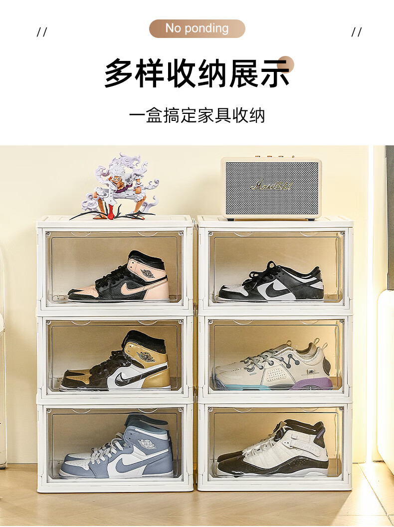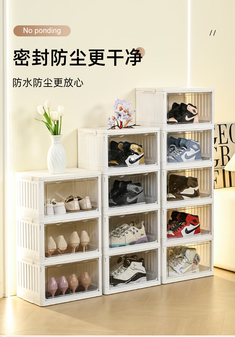 GOTO shoe box storage box installation-free all-in-one storage artifact transparent multi-layer plastic dust-proof simple acrylic storage box multi-functional folding storage shoe box 1 layer no wheels high transparent door panel