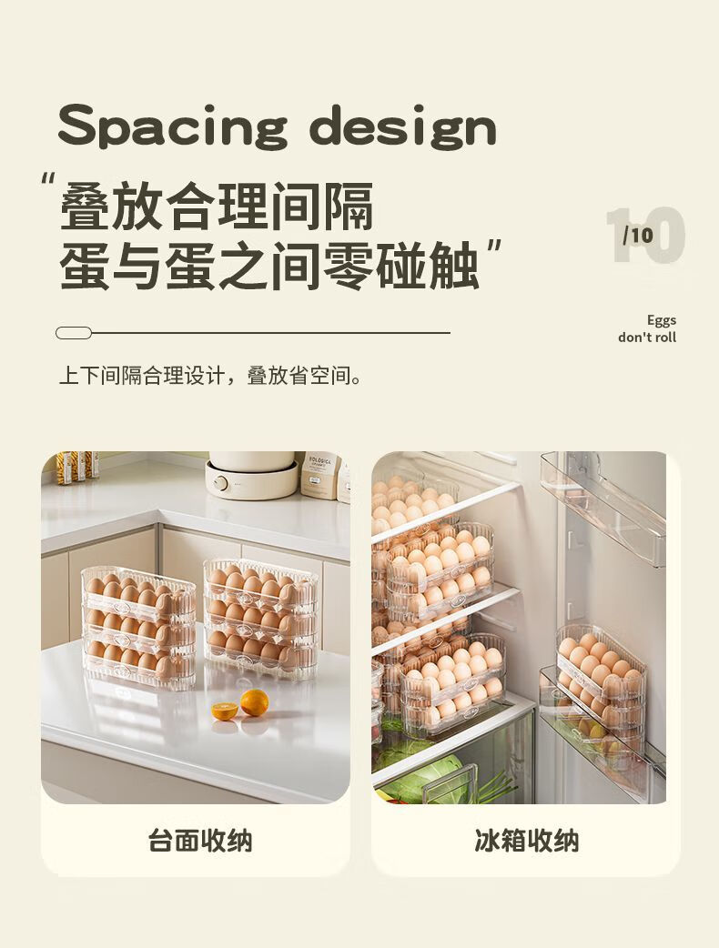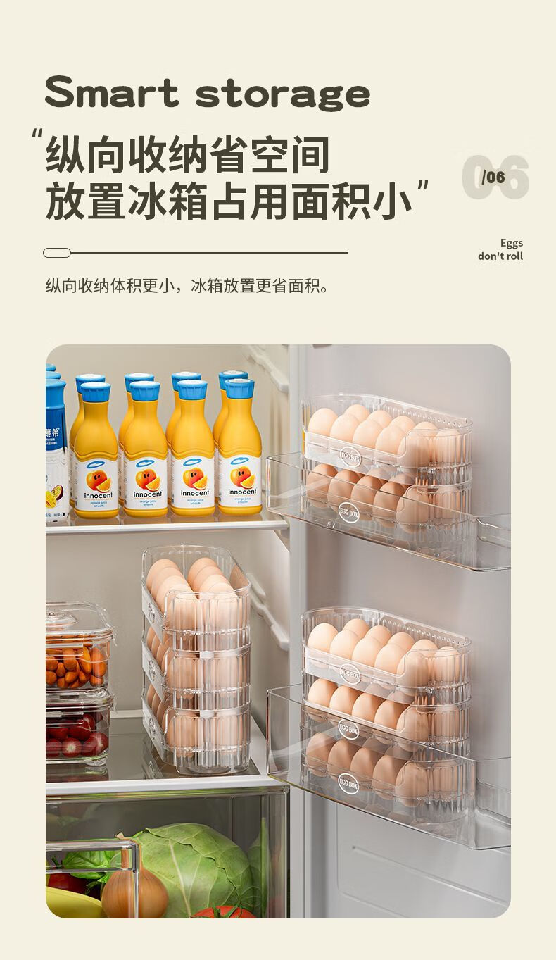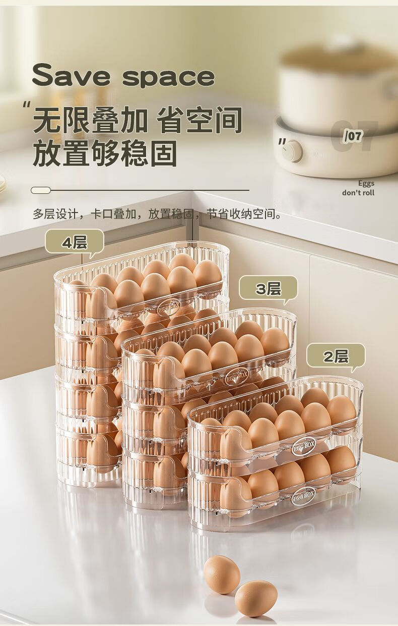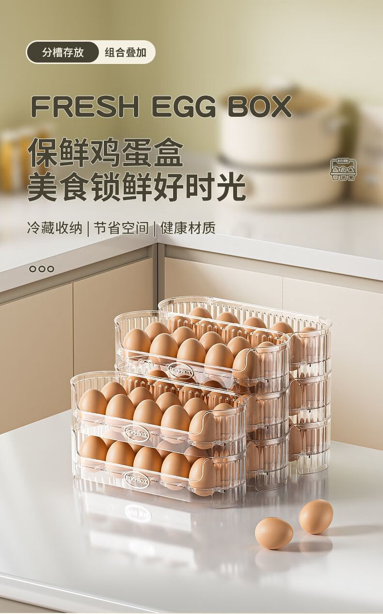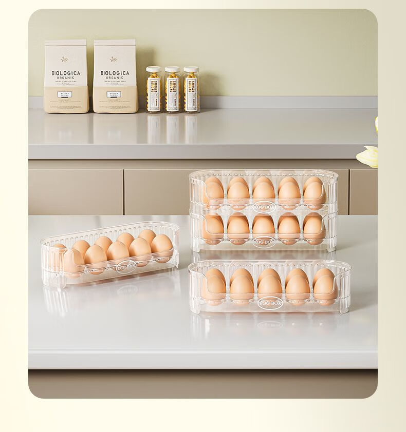 Qinkai stackable transparent egg storage box, crisper box, special organization and storage, flipping egg box, egg tray, stacked egg box, 1 layer