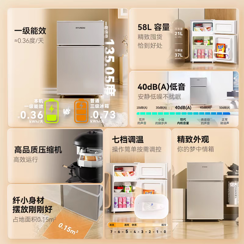 Midea's same modern refrigerator, 20% subsidy for home appliances, small refrigerator, first-class energy efficiency, power-saving, home car, silver 58 liters, popular model, first-class performance, 58 liters, door-to-door delivery, first-class performance, one-year warranty