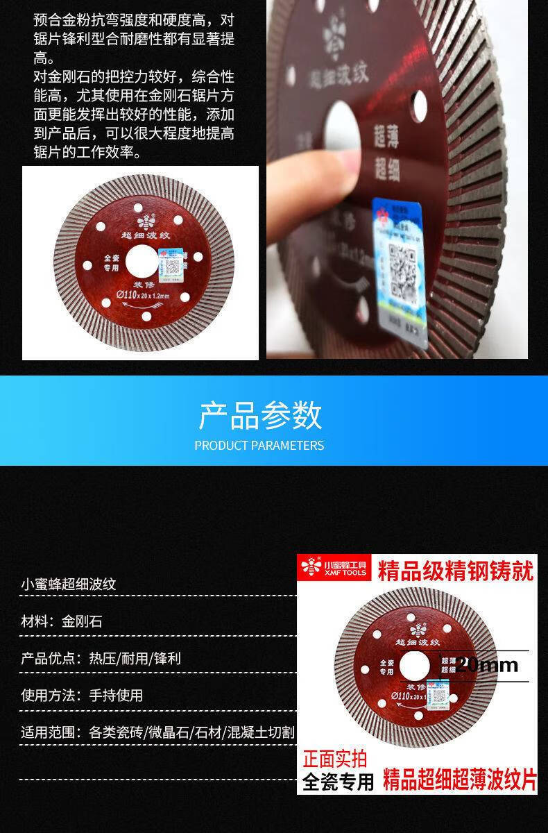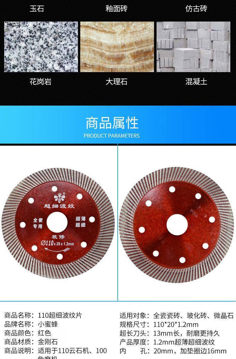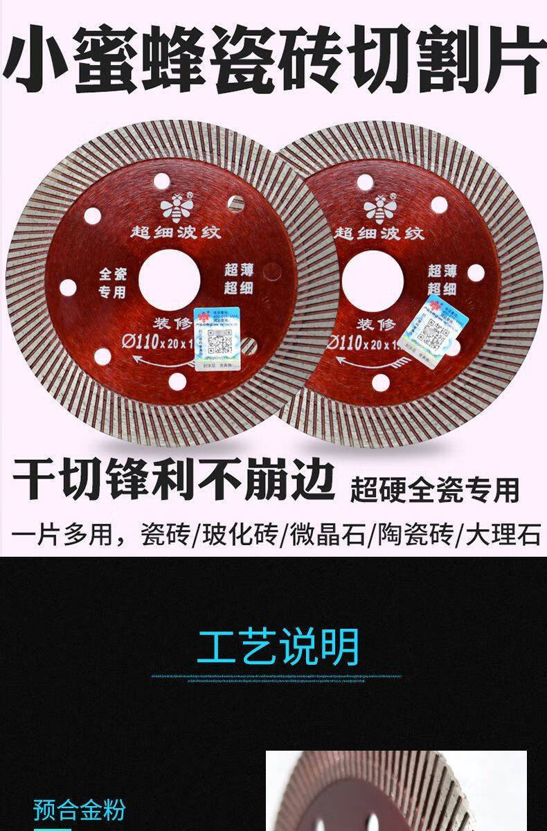 Ni Zhier Little Bee tile cutting blade diamond saw blade stone marble sheet marble vitrified tile dry cutting special Bee 110 ultra-fine corrugated 3 pieces