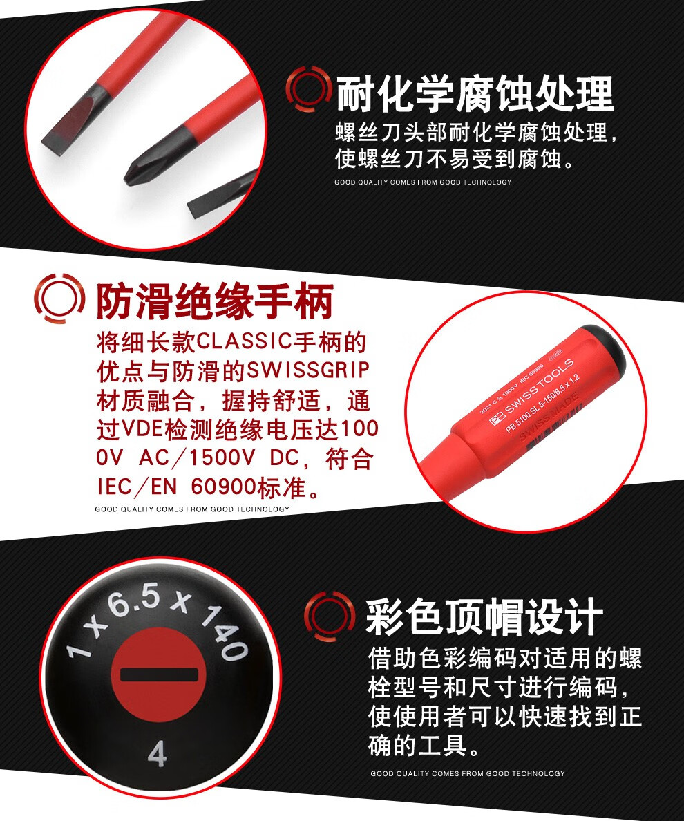 PB SWISSTOOLS Swiss imported screwdriver insulated thin rod cross-shaped high voltage resistant 1000V electrician professional flat mouth screwdriver set PB 5542 SL