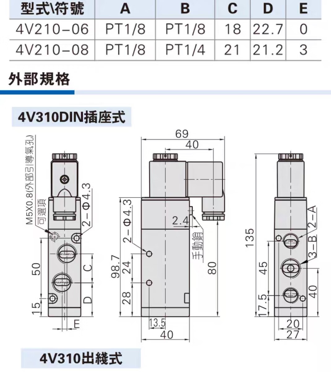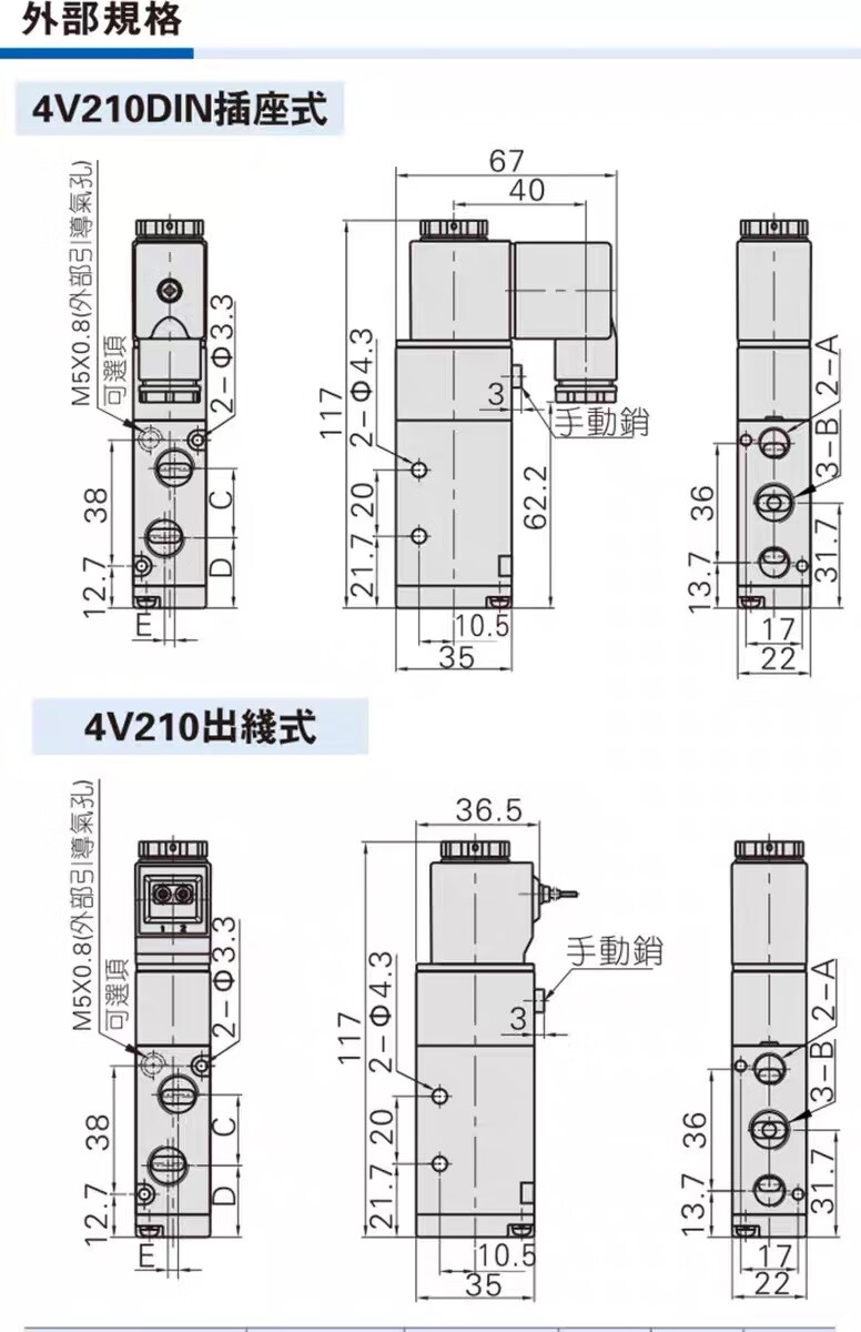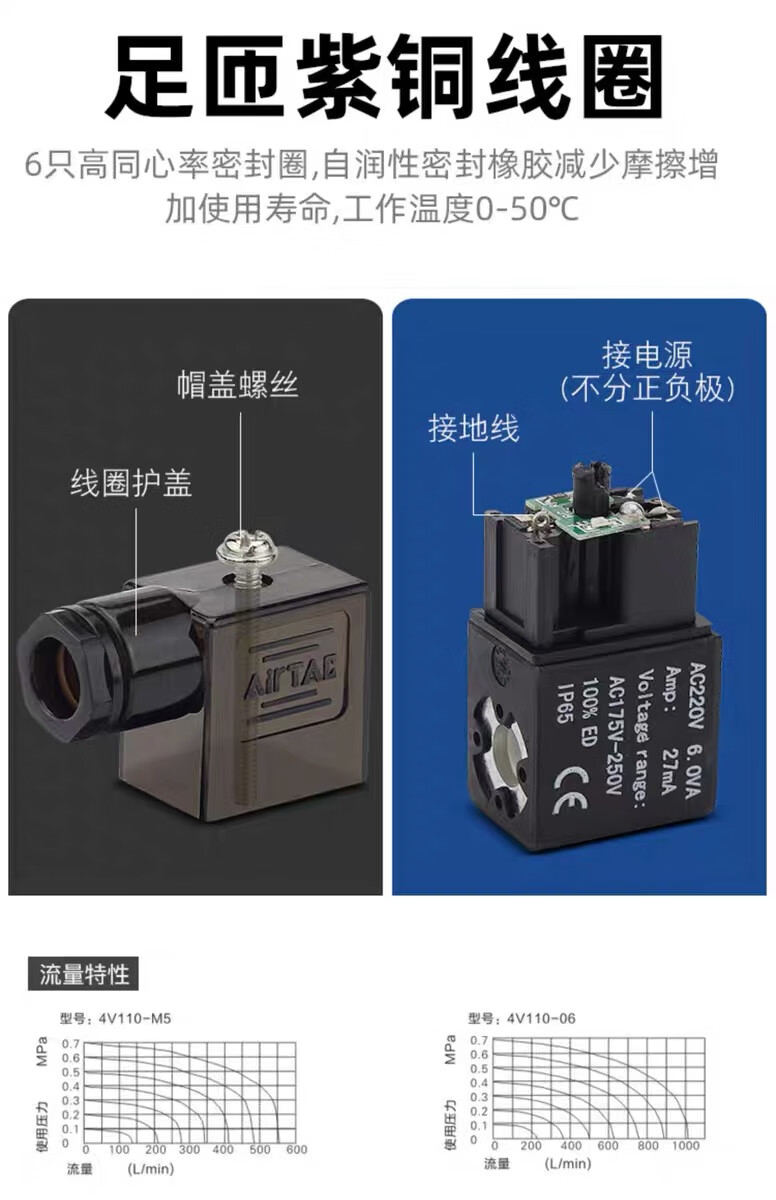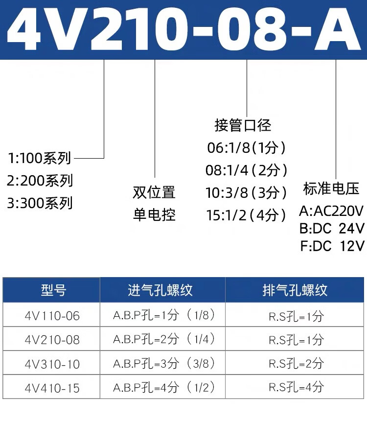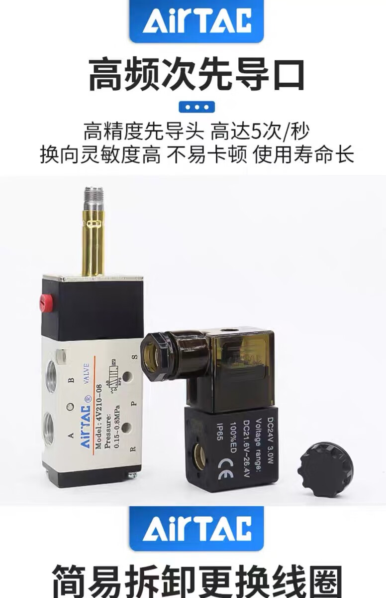 Solenoid valve 4v210-08/4v110-06/4v310-10/4v410-15 two-position five-way pneumatic imported type 4V210-08DC24V