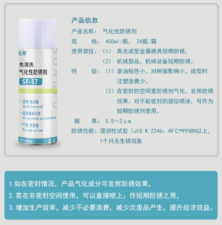 Songfu vaporized rust inhibitor, transparent drying, quick-drying, injection molding high-gloss mold no-clean spray, self-spraying anti-rust oil, wax-based rust inhibitor (translucent)
