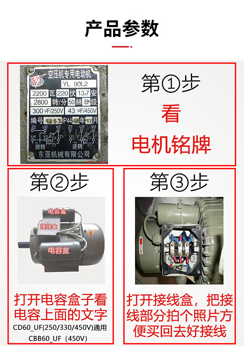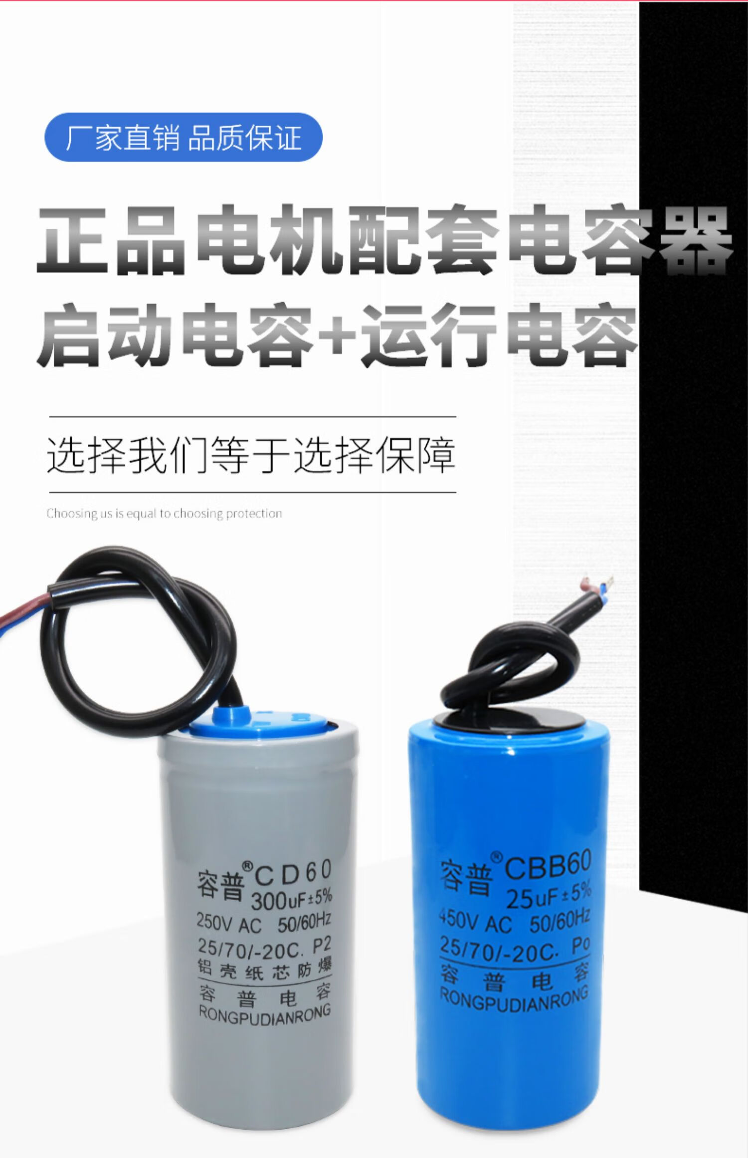 Motor capacitor 450V single-phase motor 220V starting and running capacitor 250UF40UF300UF50UF aluminum shell starting 250V150UF + running 30UF