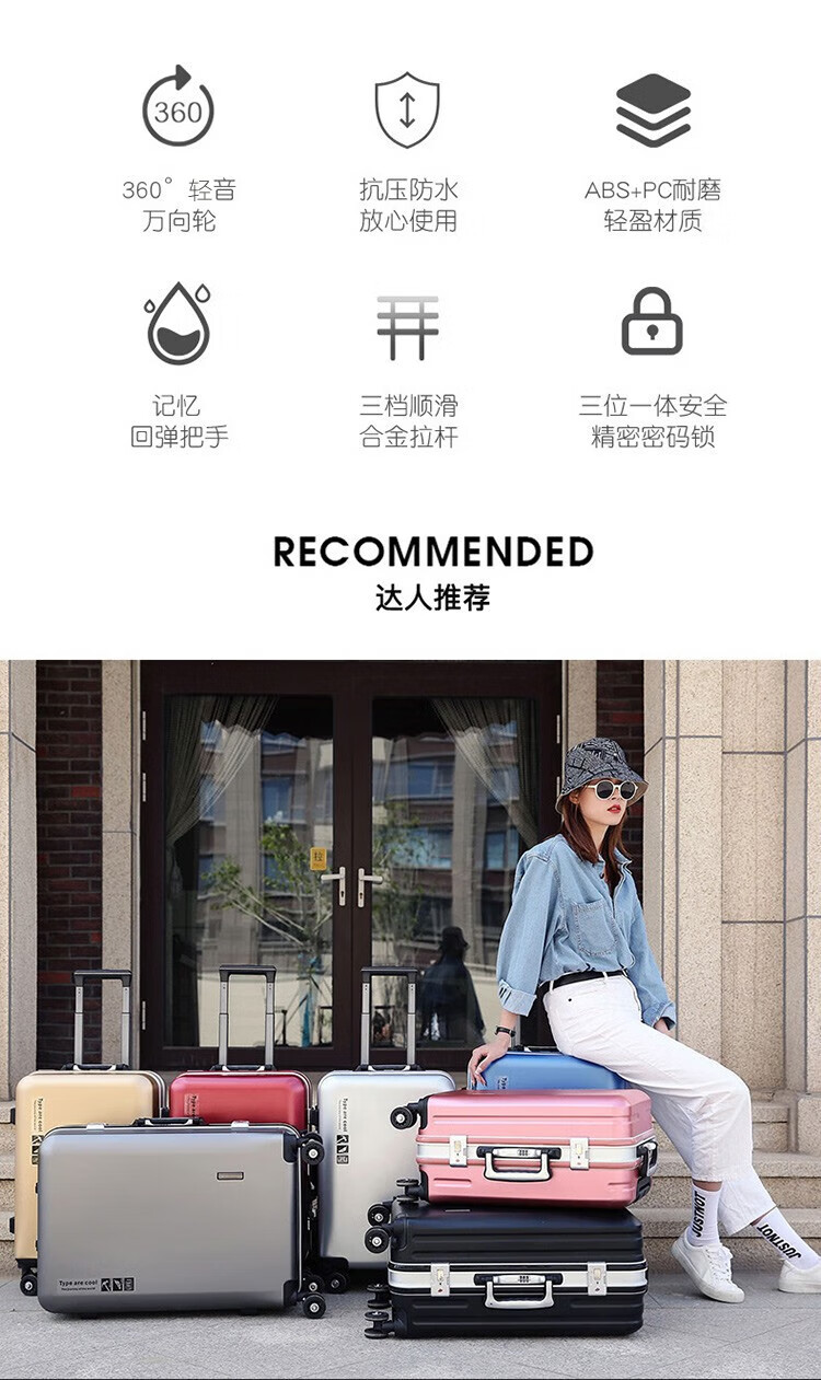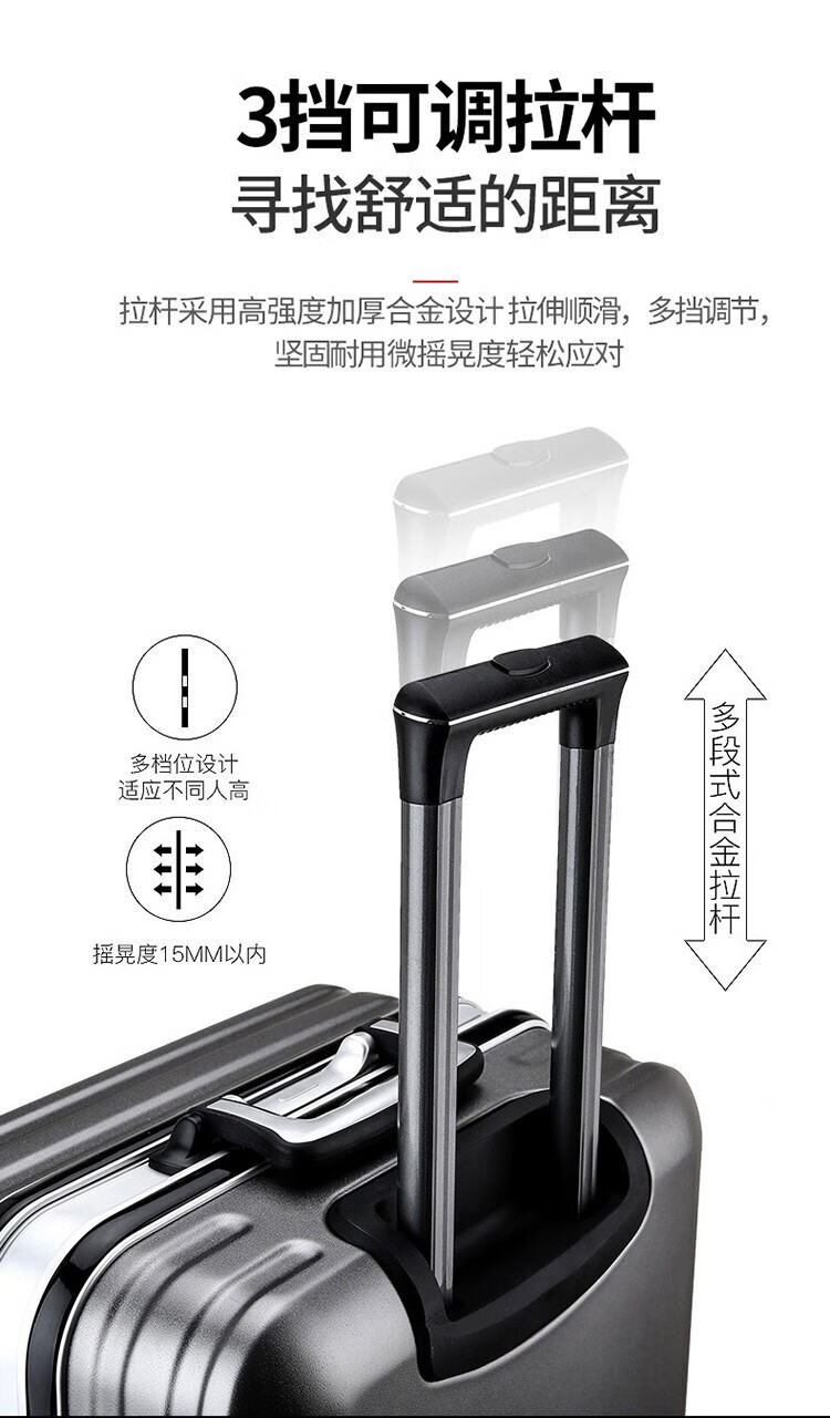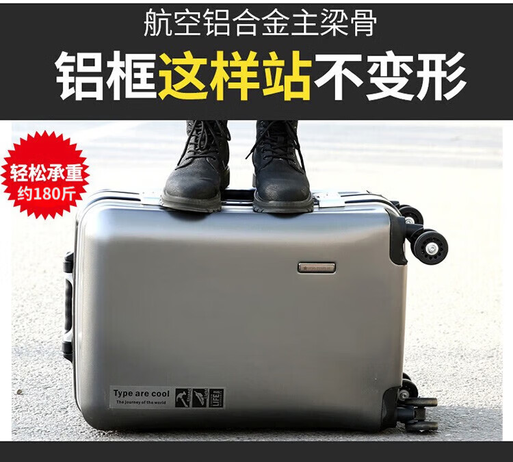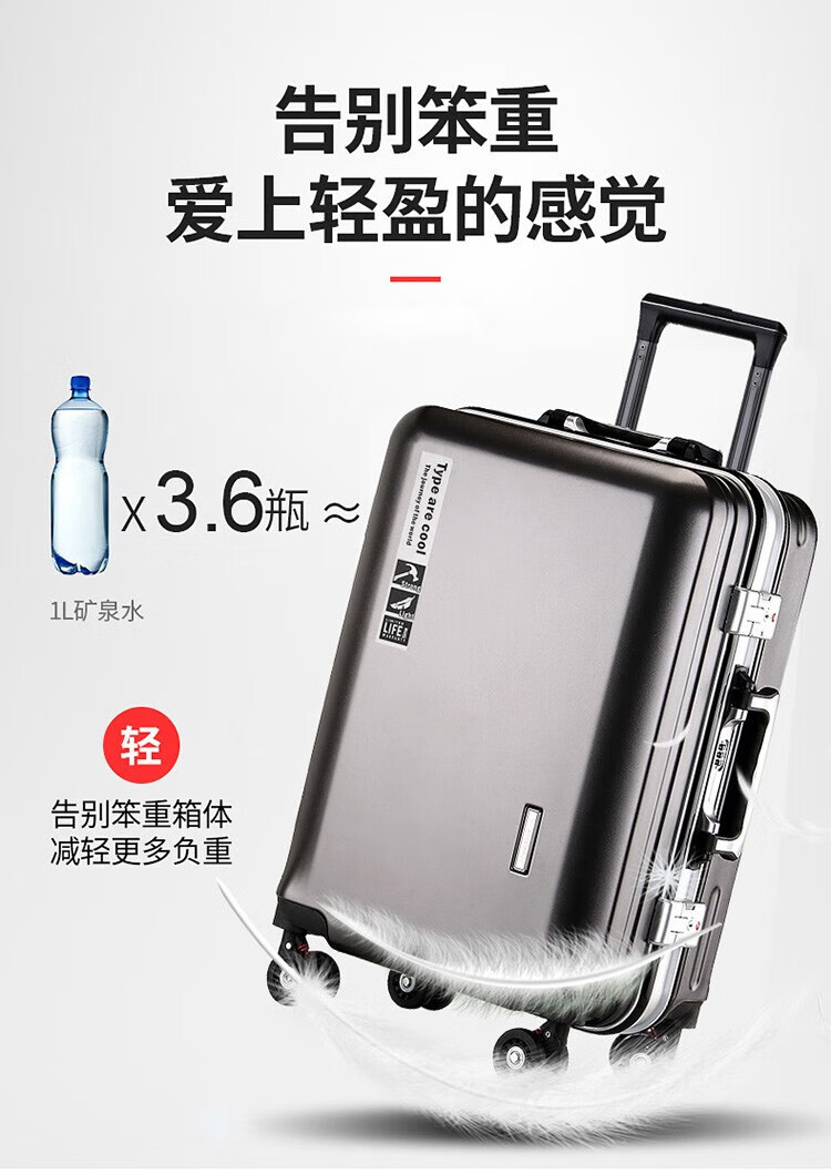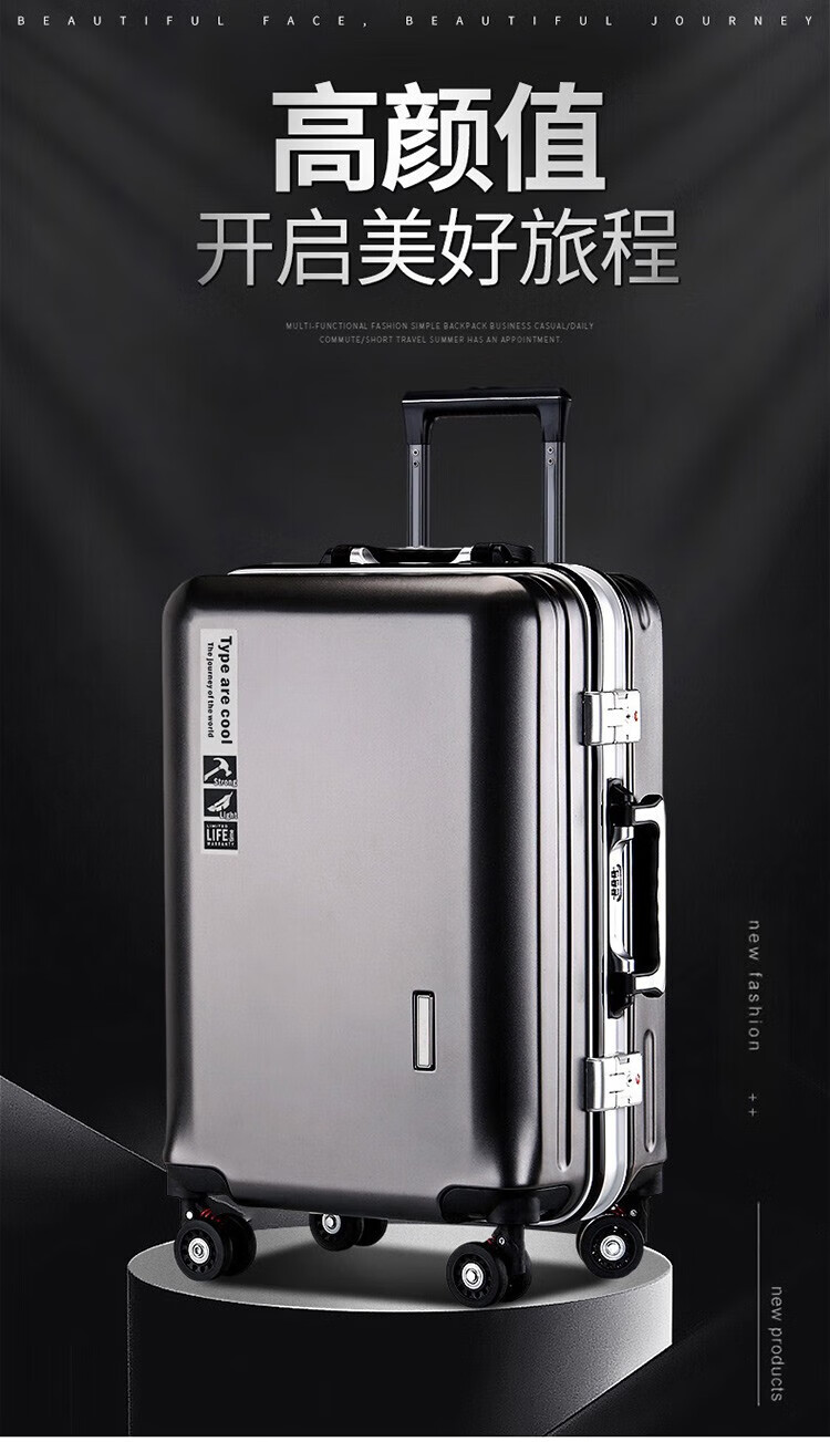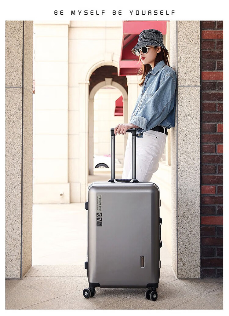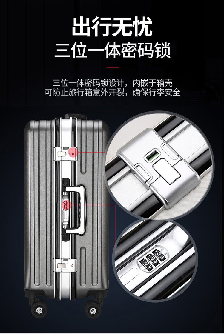 Bifu Paul aluminum frame suitcase men's trolley case thickened large capacity suitcase female student password box boarding case dark gray 20 inches can be boarded