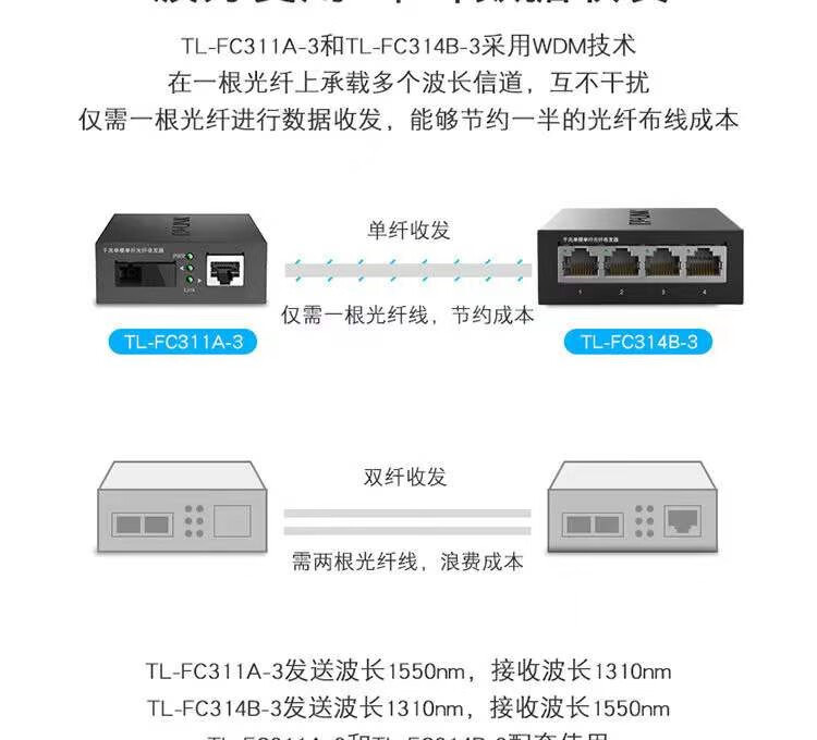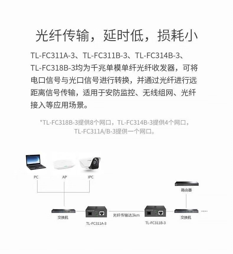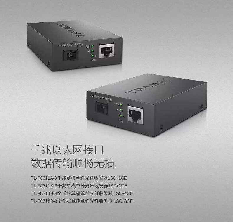 Pulian original TP-LINK Gigabit fiber optic transceiver 1 optical 1 electric 4 electric 8 electric single mode single fiber network monitoring long distance 1 optical 1 electric Gigabit A+B end 3 kilometers/pair