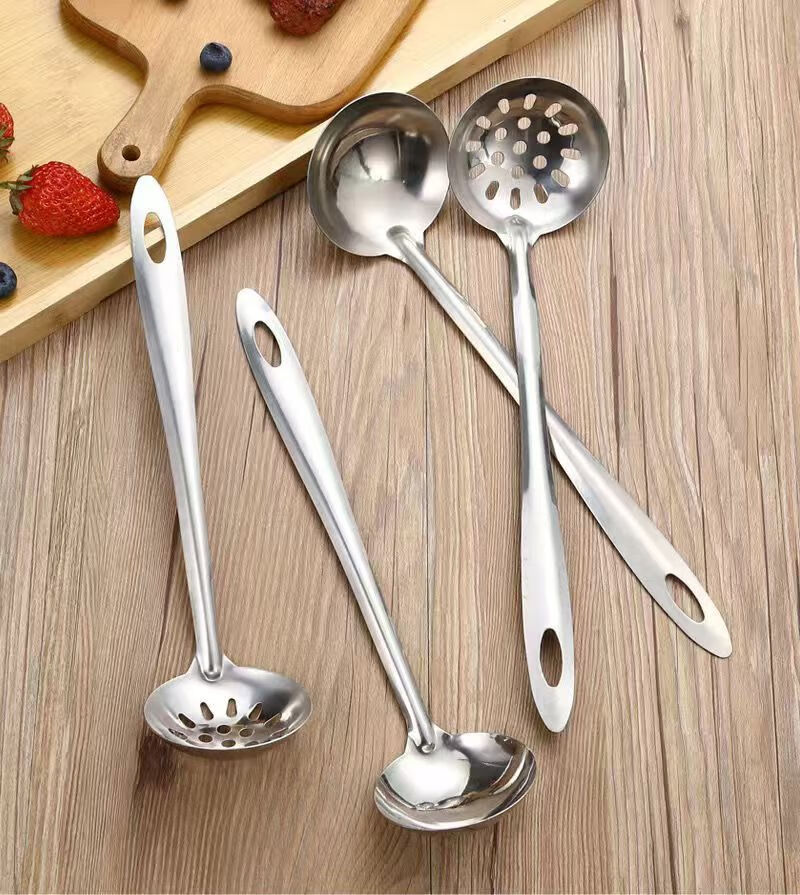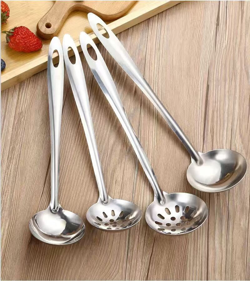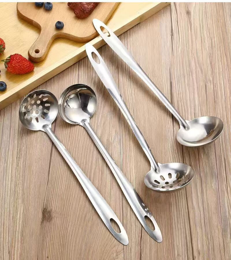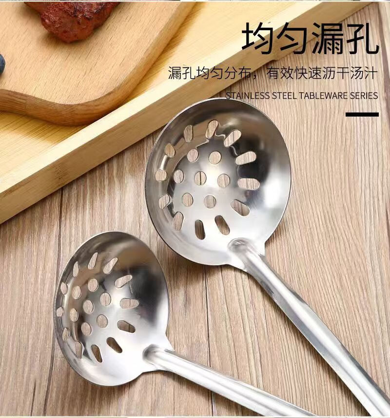 Feiyiya 304 thickened stainless steel colander for soup, hot pot soup spoon, long handle spoon for soup collection, household kitchen filter, long handle, mouth 6.5cm, total length 26.5CM 304 food grade colander - 1