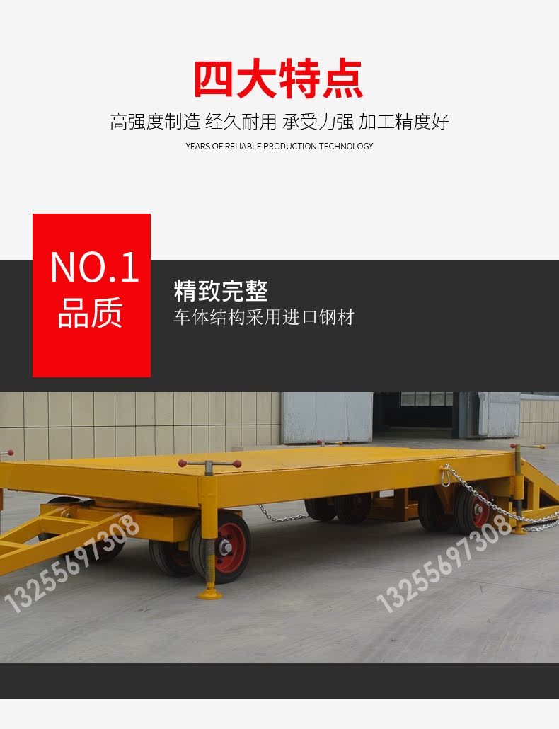 Kezitu forklift towing flatbed trailer tractor chassis rear bucket factory warehouse workshop turnover heavy-duty handling trailer flatbed trailer 2 tons