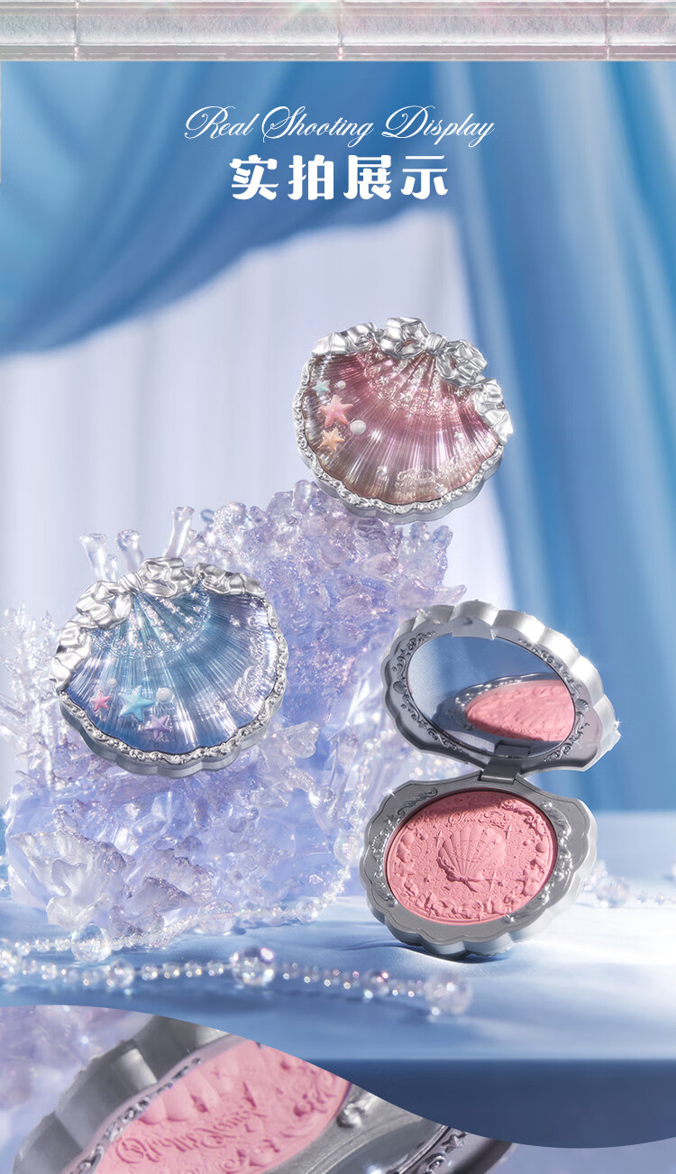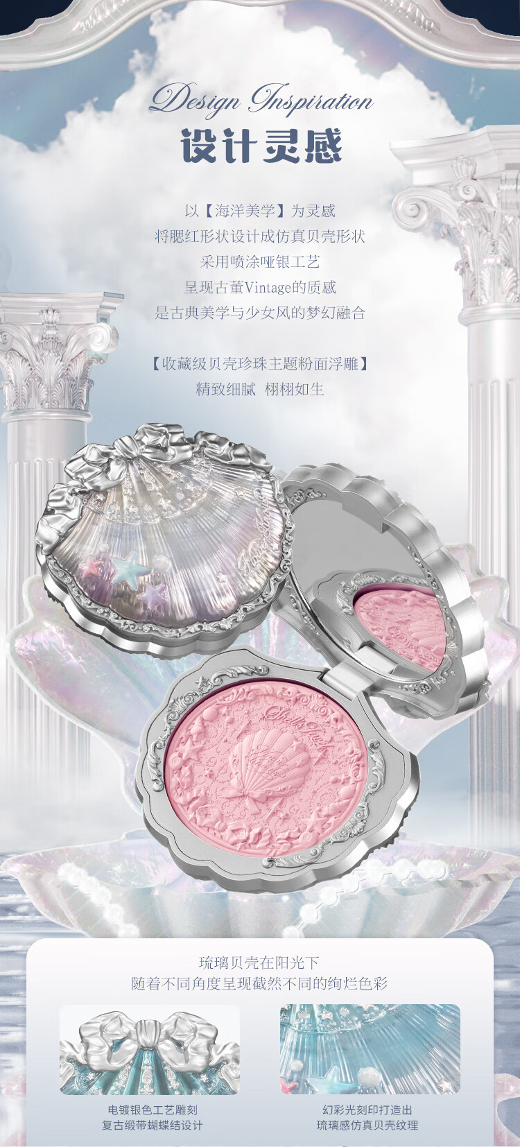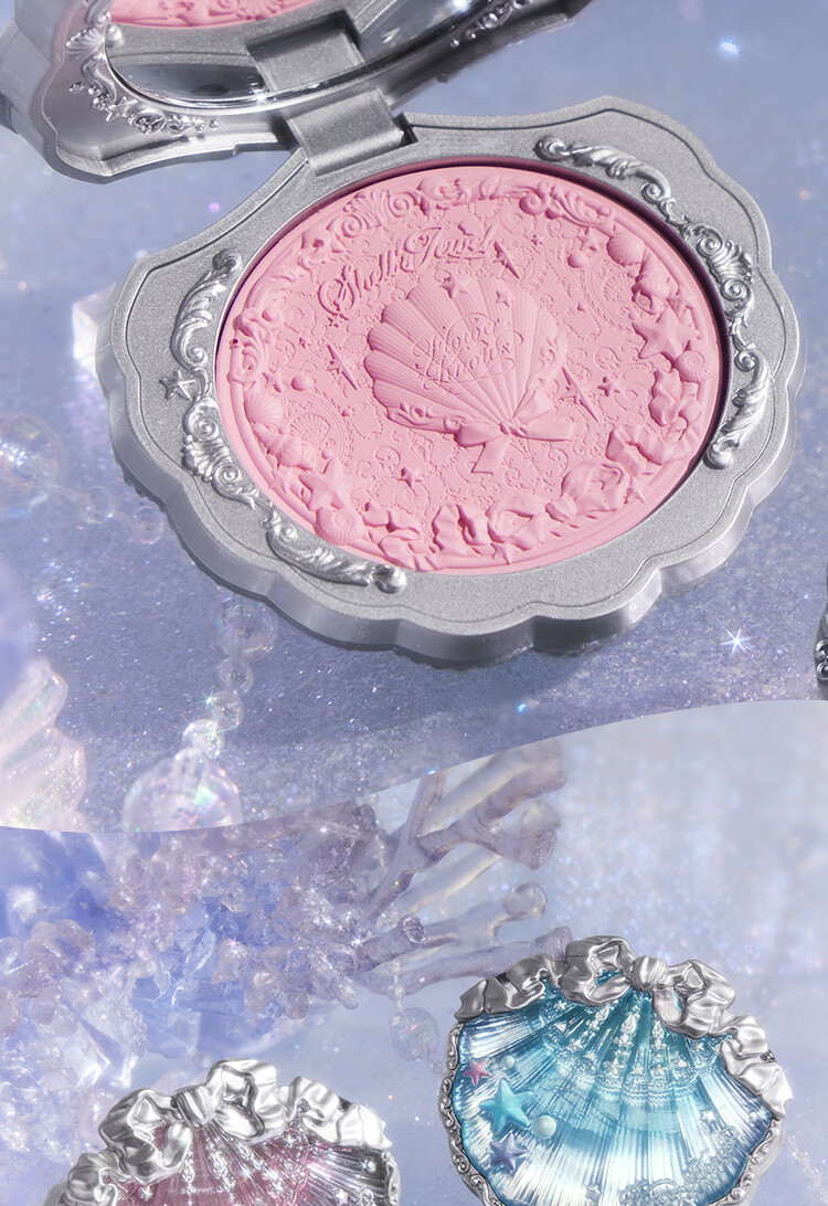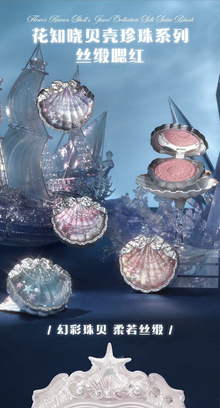 Flower Knows Valentine's Day Shell Pearl Series Silk Satin Blush Rouge Clear Expansive Color Cheek Color Gift for Girlfriend 03 Coral Shell Hot Selling
