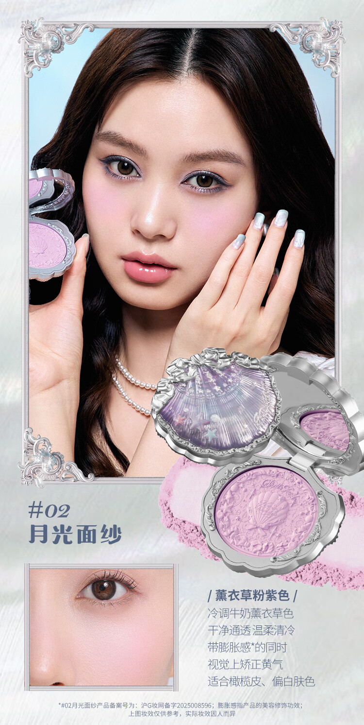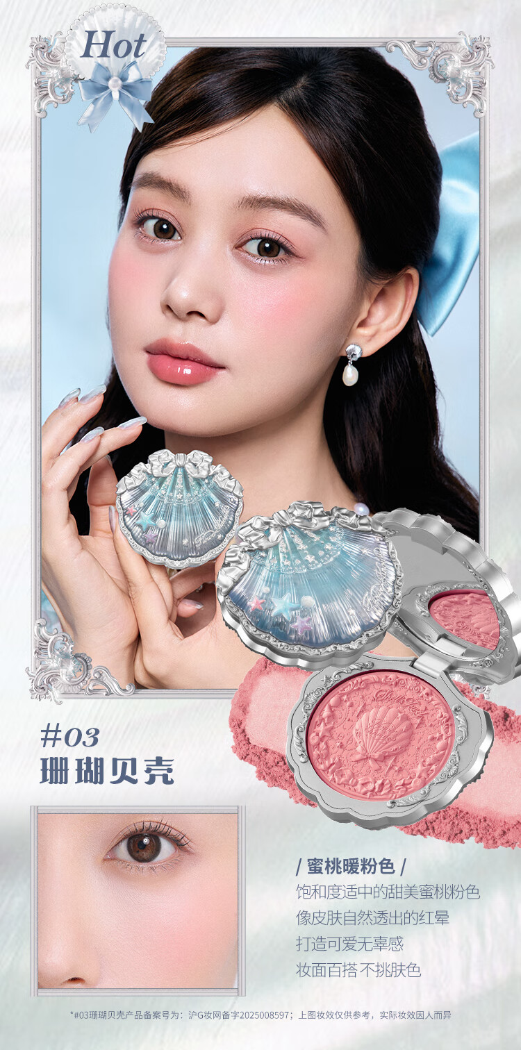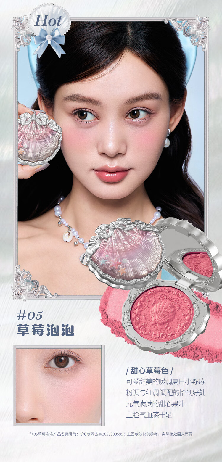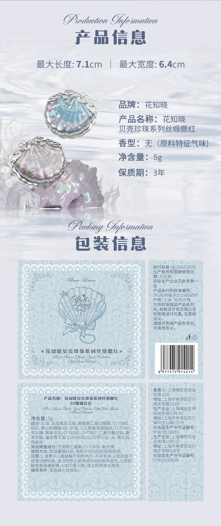 Flower Knows Valentine's Day Shell Pearl Series Silk Satin Blush Rouge Clear Expansive Color Cheek Color Gift for Girlfriend 03 Coral Shell Hot Selling