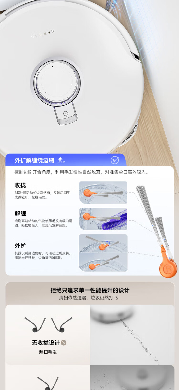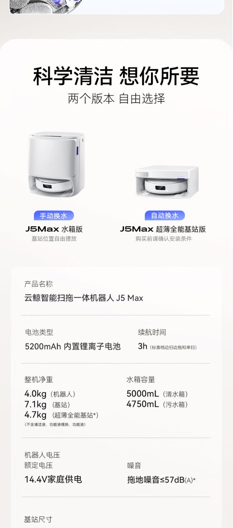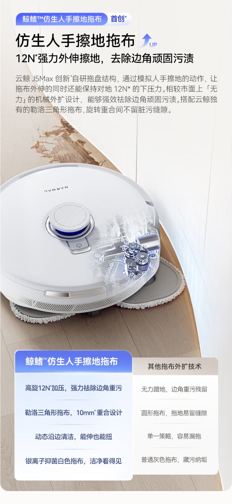 NARWAL sweeping robot J5Max Intelligent sweeping and mopping all-in-one robot Sweeping and mopping in one, automatic cleaning, bionic hand extension to wipe the floor, 0 winding, fully automatic floor mopping machine, all-round base station J5Max-ultra-thin upper and lower water version