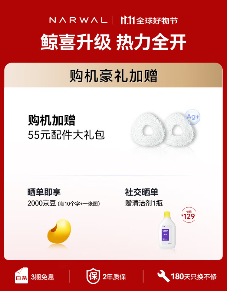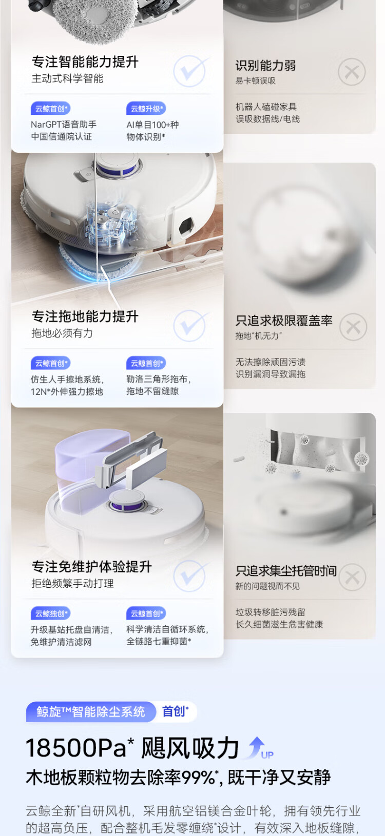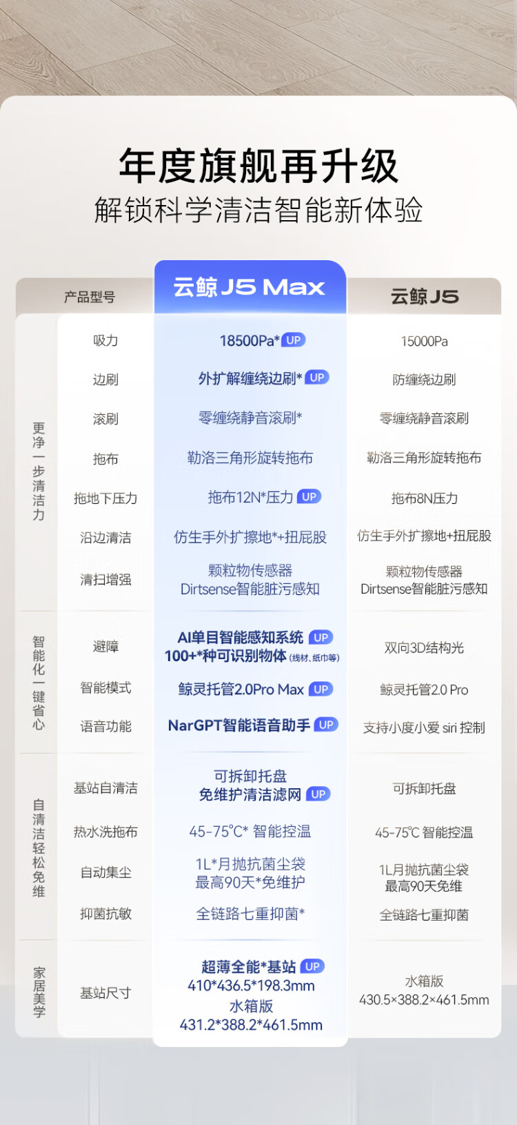 NARWAL sweeping robot J5Max Intelligent sweeping and mopping all-in-one robot Sweeping and mopping in one, automatic cleaning, bionic hand extension to wipe the floor, 0 winding, fully automatic floor mopping machine, all-round base station J5Max-ultra-thin upper and lower water version