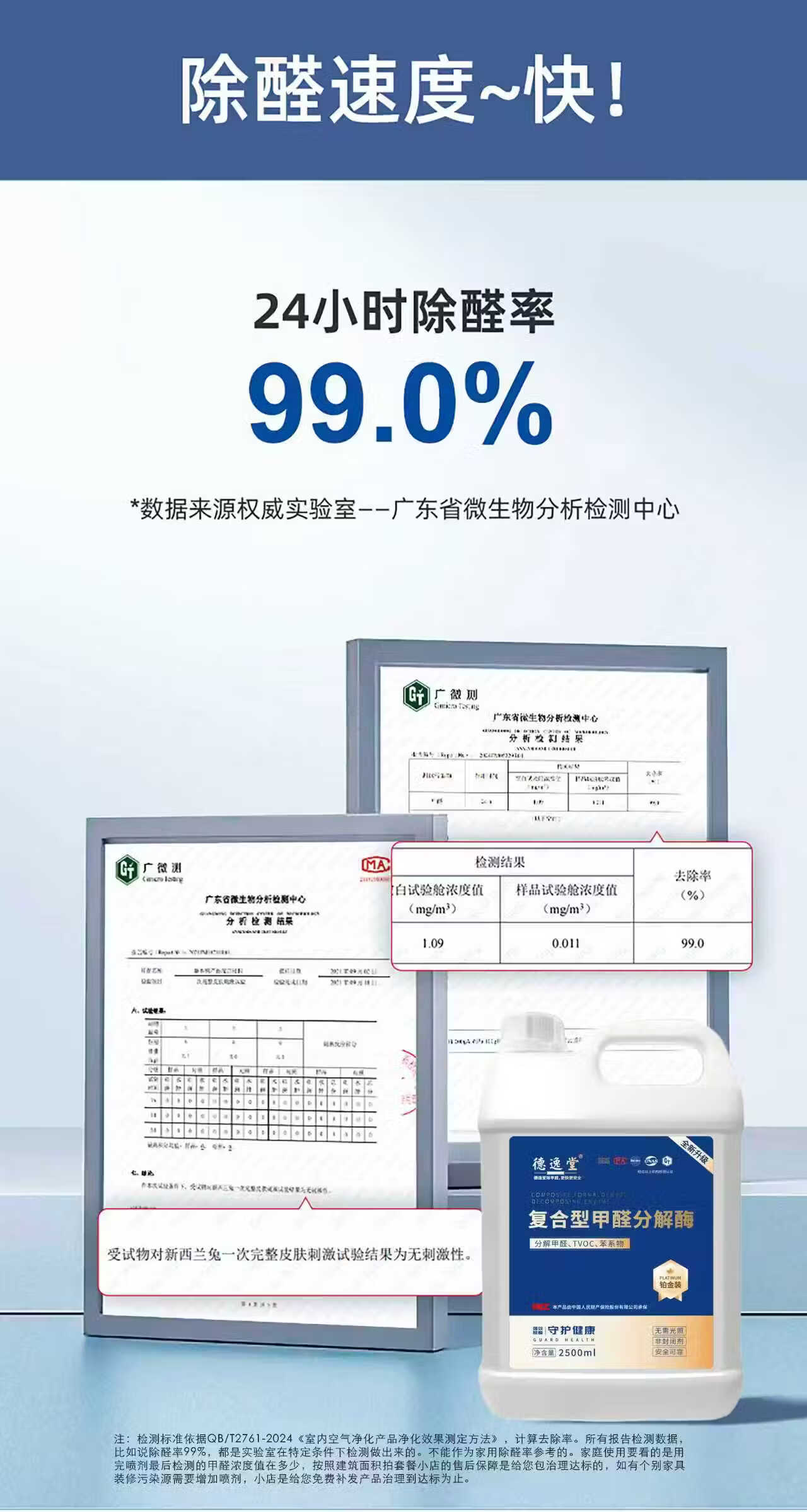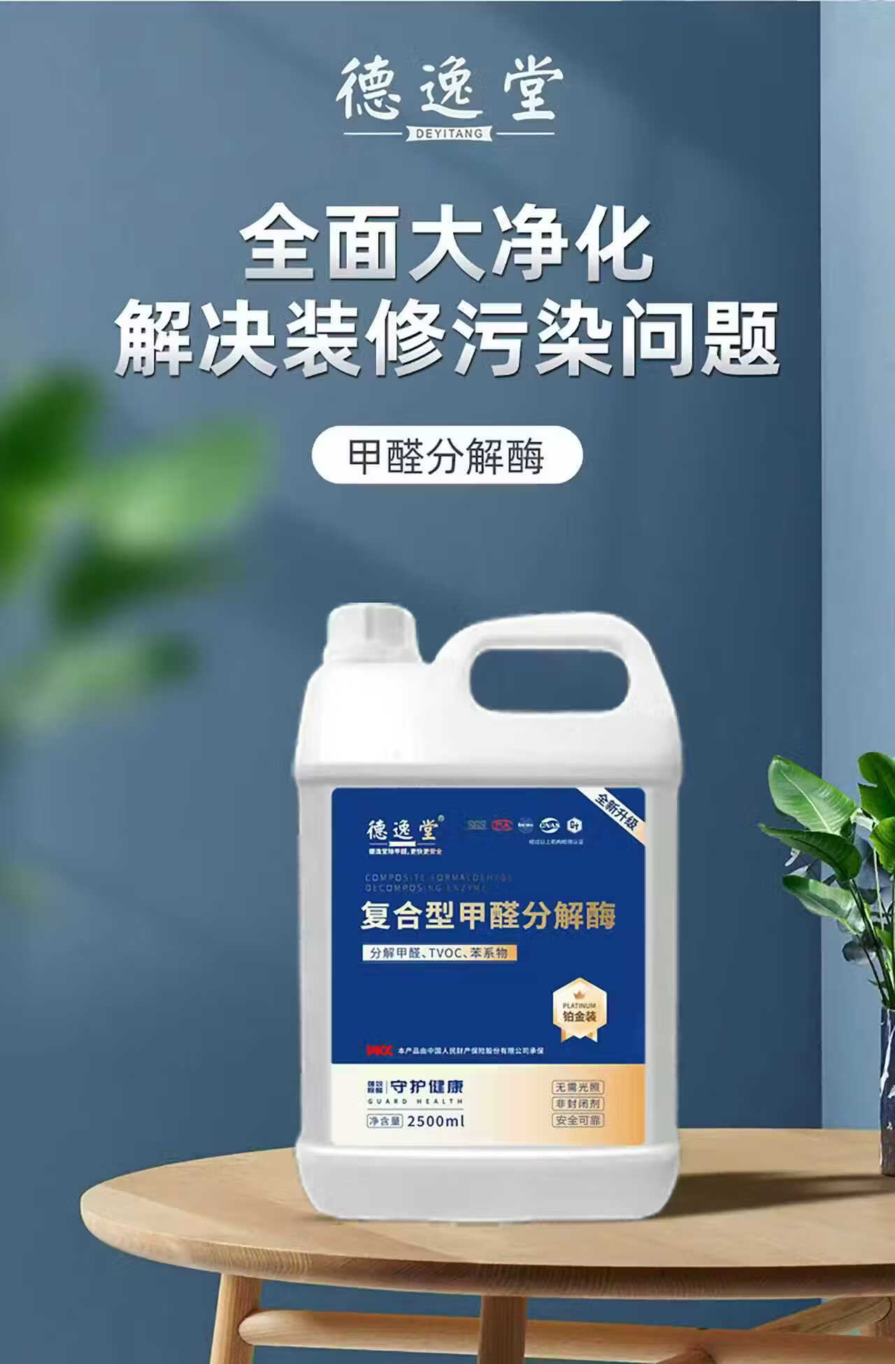 Deyitang spray and move in quickly formaldehyde removal spray benzene tvoc new house household barrel formaldehyde removal agent package 1 2.5L*1 barrel (free 1 watering can + 10 test boxes) Deyitang platinum model check in on the same day after spraying
