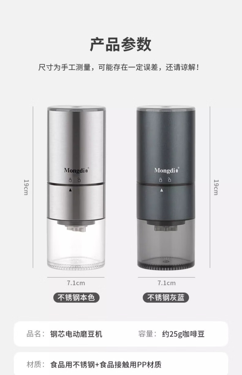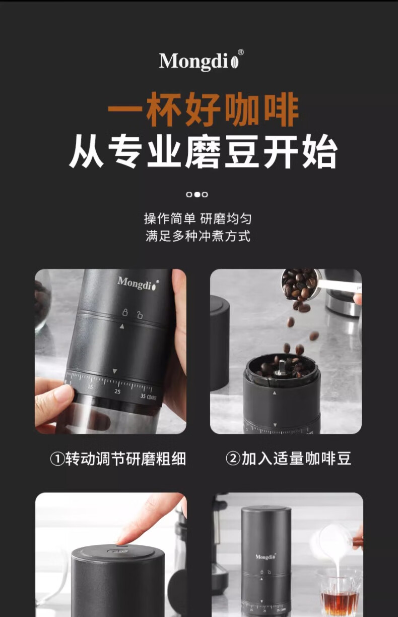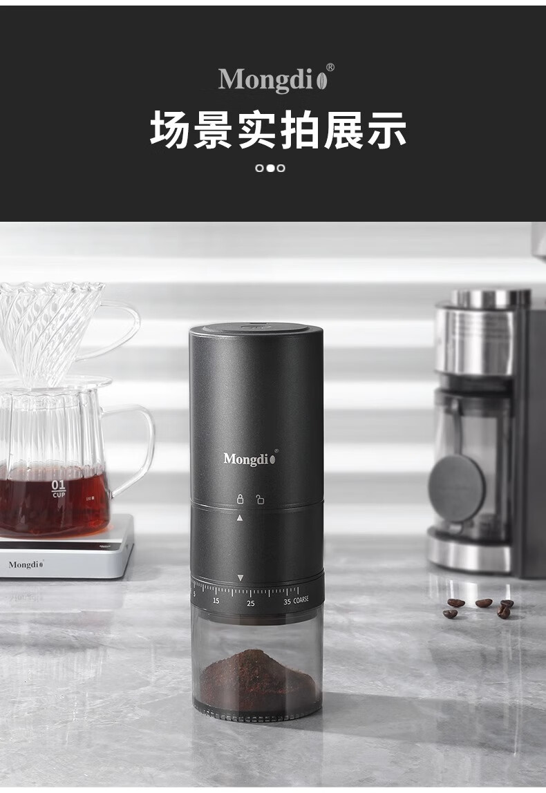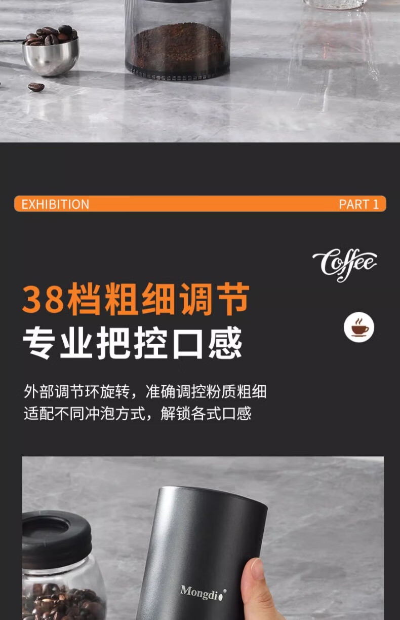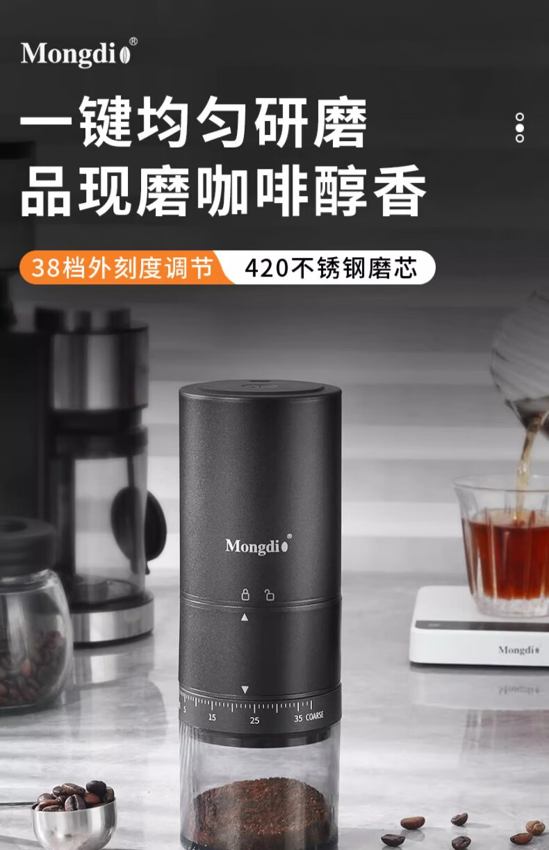 Mongdio bean grinder electric coffee bean grinder CNC steel core coffee grinder space silver 420 steel core 38-speed external adjustment