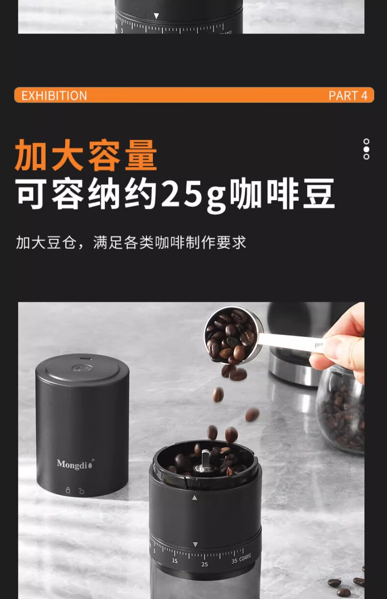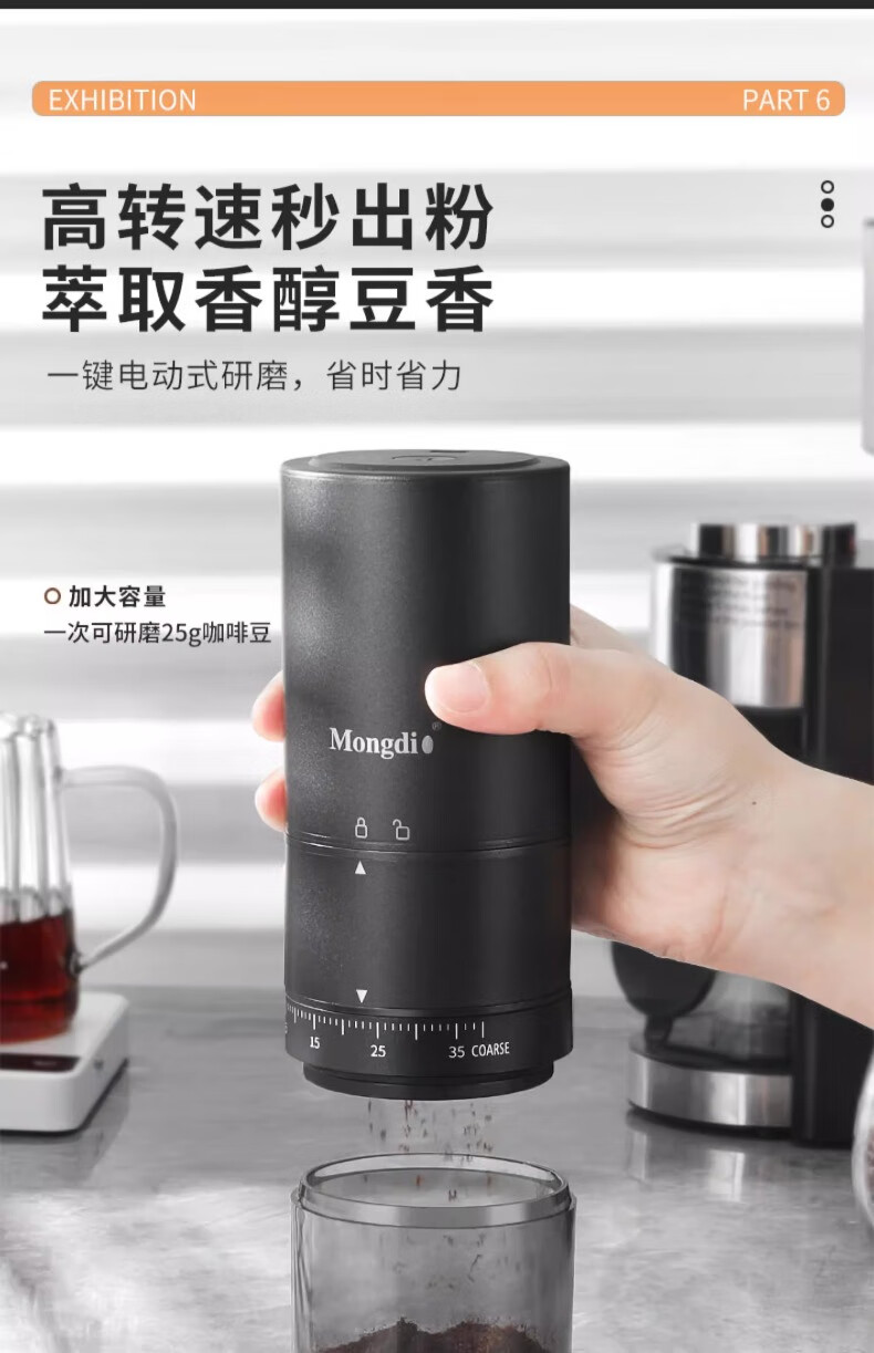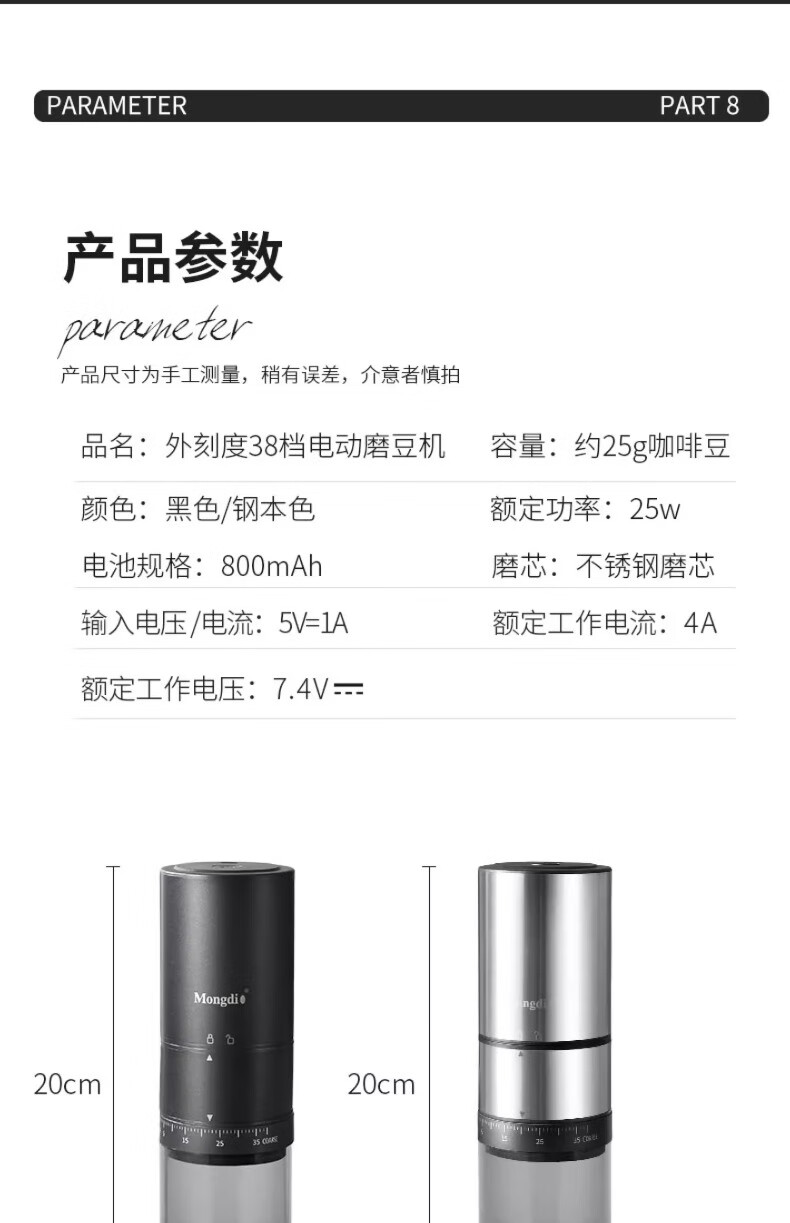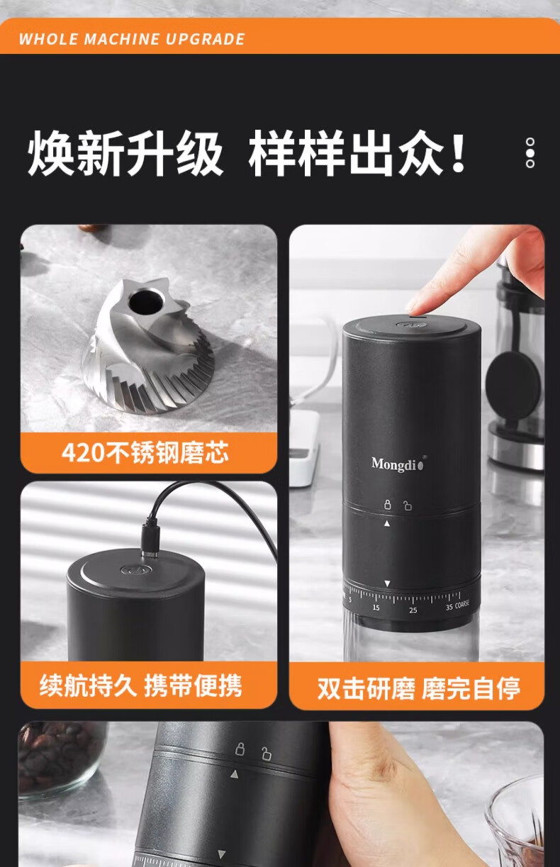 Mongdio bean grinder electric coffee bean grinder CNC steel core coffee grinder space silver 420 steel core 38-speed external adjustment